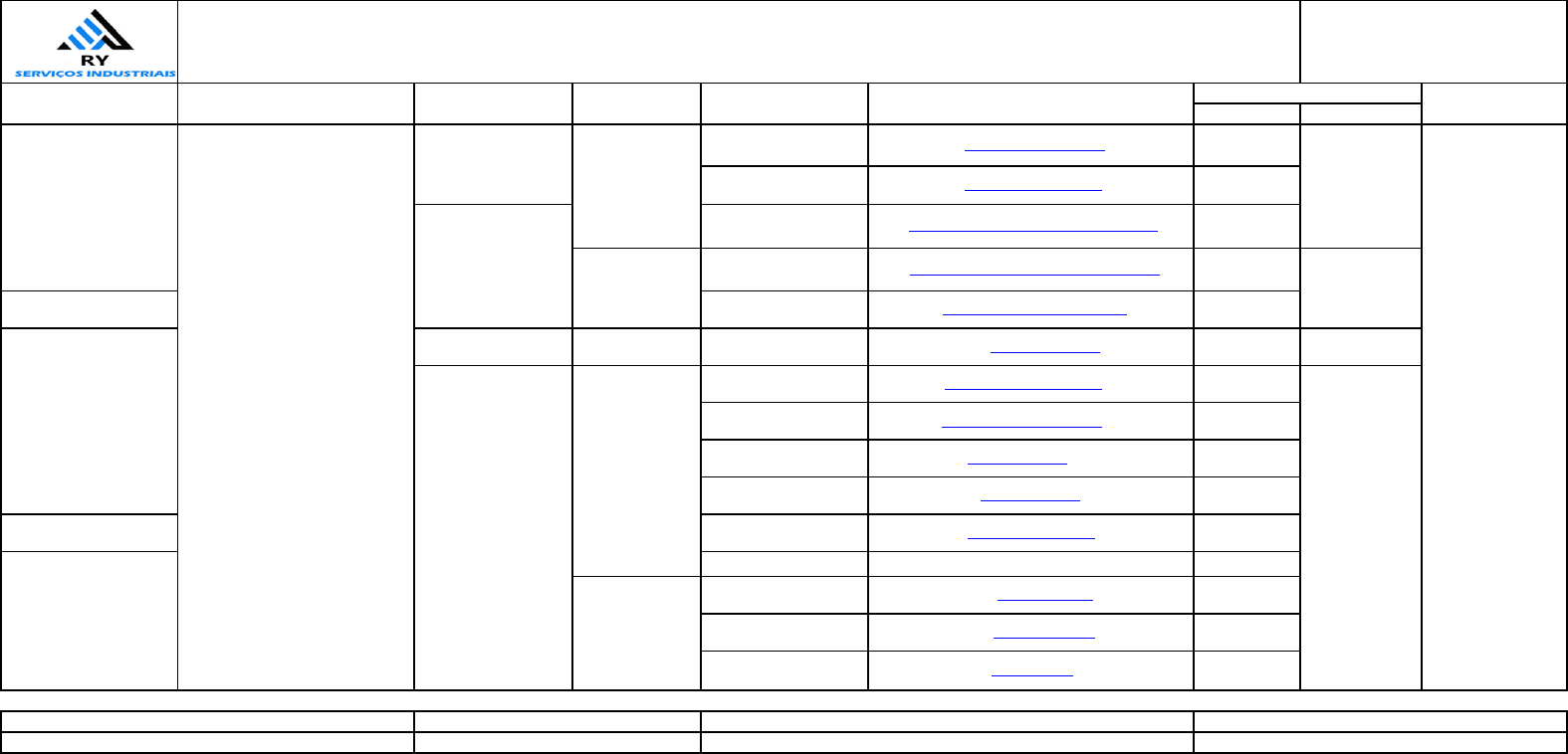 FREQÜÊNCIA RESPONSÁVEL Alcançar ITP ≥ 80 % até Dez/2024. ITP (%) = Índice de Treinamento de Pessoal. ITP = N° de Treinamentos Realizados* 100 N° de Treinamentos Previstos Quadrimestral/ Anual Alcançar ICO ≥ 75% até Dez/2024 ICO = Índice de Clima Organizacional ICO = Número de Pontos Alcançados * 100 Número de Pontos Previstos Anual Alcançar ICLP ≥ 98%/Mês até Dez/2024. ICLP = Índice de Conformidade de Logística de Pessoal ICLP = N° de Embarques de Pessoal Realizados-N° Retrabalho * 100 N° de Embaques de Pessoal Realizado Mensal/Anual Alcançar ICLM ≥ 98%/Mês até Dez/2024. ICLM = Índice de Conformidade de Logística de Material ICLM = N° de Embarques de Material Realizados-N° Retrabalho * 100 N° de Embaques de Material Realizado Mensal/Anual. MISSÃO Alcançar ICM ≥ 98%/Mês até Dez/2024. ICMA = Índice de Conformidade de Montagem de Andaime ICMA = N° de H/H Trabalhado-N° H/H Retrabalho * 100 N° H/H Trabalhado Mensal/Anual Satisfazer Continuamente os Clientes. Gestão da Qualidade Alcançar ISC ≥ 80% até Dez/2024. ISC (%) = Índice de Satisfação de Cliente. ISC = Pontuação Obtida * 100 Pontuação Possível Anual Comercial Alcançar TFSA = 0 até Dez/2024. TFSA = Taxa de Freqüência de Acidentes sem Afastamento. TFSA = No. de Acidentes sem Afastamento * 1.000.000 Horas / Homens Trabalhadas. Mensal Alcançar TFCA = 0 até Dez/2024. TFCA = Taxa de Freqüência de Acidentes Com Afastamento. TFCA = No. de Acidentes com Afastamento * 1.000.000 Horas / Homens Trabalhadas. Mensal Alcançar TG = 0 até Dez/2024. TG = Taxa de Gravidade TG = No. de Dias Perdidos * 1.000.000 Horas / Homens Trabalhadas Mensal Realizar IAA = 100% no Período Programado. IAA = Índice de ASO Atualizado IAA = N° de ASO Realizado *100 N° de ASO Previsto Mensal/Anual VALORES Alcançar IAR = 100% até Dez/2024. IAR = Índice de Auditoria Realizada. IAR = N° de Auditorias Realizadas * 100 N° de Auditorias Programadas Anual Alcançar IDO = 0 até Dez/2024. IDO = Índice de Doença Ocupacional IDO = N° de Doença Ocupacional/Mês Anual Alcançar ICE ≤ 85% até Dez/2024 ICE = Índice de Consumo de Energia ICE = Consumo efetivo*100 Consumo meta Mensal Alcançar ICA ≤ 85% até Dez/2024. ICA = Índice de Consumo de Água ICA = Consumo efetivo*100 Consumo meta Anual Alcançar ICS = 100% até Dez/2024. ICS = Índice de Coleta Seletiva ICS = Resíduo Coletado *100 Resíduo Gerado Mensal Alcançar a Realização Satisfatória de Serviços. VISÃO ELABORADO Giselle Batista Ocupar posição destacada no mercado e otimizar a lucratividade através de novas conquistas no segmento de montagem de andaimes e serviços industriais e navais com técnicas convencionais e com acesso por corda, fundamentados na melhoria da gestão e da capacitação do nosso pessoal. Conduta Íntegra Honra aos Contratos Respeito ao Ser Humano Cumprimento da Legislação Responsabilidade Socioambiental Ética e Lealdade nos Relacionamentos Compromisso com Segurança, Saúde e Meio Ambiente Atuar com integridade, responsabilidade e confiabilidade na montagem de andaimes e serviços industriais e navais com técnicas convencionais e com acesso por corda, atendendo as necessidades dos nossos clientes, aplicando boas práticas de segurança, saúde e meio ambiente e mantendo um relacionamento adequado com as demais partes interessadas. A RY SERVIÇOS atua com integridade, confiabilidade e soluções otimizadas no fornecimento de serviços de caldeiraria, soldagem, mecânica e pintura on shore e off shore convencional e com acesso por corda, locação e montagem de andaime, atendendo aos Setores de Óleo e Gás, Manutenção Industrial e Construção Civil. A RY assume como Política de Gestão Integrada: • Considerar a Gestão Integrada de Qualidade, Segurança, Saúde e Meio Ambiente, como ferramenta essencial para o desenvolvimento das atividades e crescimento em todos os segmentos onde atua. • Cumprir requisitos legais, contratuais e outros requisitos aplicáveis as suas atividades. • Preservar o meio ambiente como um todo, prevenindo a poluição em todas as suas formas, garantindo um manejo responsável dos resíduos gerados por nossas atividades. • Prevenir a ineficiência e o desperdício mediante o uso racional e responsável dos recursos naturais e da energia. • Assegurar o trabalho seguro e saudável, gerindo e prevenindo os riscos de incidentes e acidentes e evitando a ocorrência de doenças ocupacionais. • Promover investimentos necessários em novos equipamentos e treinamento, para melhorar a capacitação, conscientização da força de trabalho e condições de trabalho • Criar um clima organizacional consciente e cooperativo, para que as questões da qualidade, segurança, saúde e meio ambiente sejam de responsabilidade de todas as pessoas que compoem a RY • Conviver de forma adequada com a comunidade, parceiros, fornecedores e demais partes interessadas. • Buscar a melhoria contínua da qualidade e do desermpenho dos processos do Sistema de Gestão Integrado RY. Fl.: 1/1 PROGRAMAPOLÍTICA OBJETIVO PROCESSO META INDICADOR COLETA DE DADOS PLANILHA DE OBJETIVOS, METAS E PROGRAMAS RH Gestão Operacional Operacional APROVADO MAYCON CORREA DATA 08/04/2024 Gestão de Recursos Humanos Continuidade do Sistema de Gestão e Programa de Gestão Integrado. SGI Gestão de Segurança e Saúde Gestão de Meio Ambiente DATA 08/04/2024 Melhorar o Desempenho em Segurança, Saúde e Meio Ambiente. Melhorar a Capacitação e Satisfação de Colaboradores. RY-007 REV.0 # PÚBLICA
