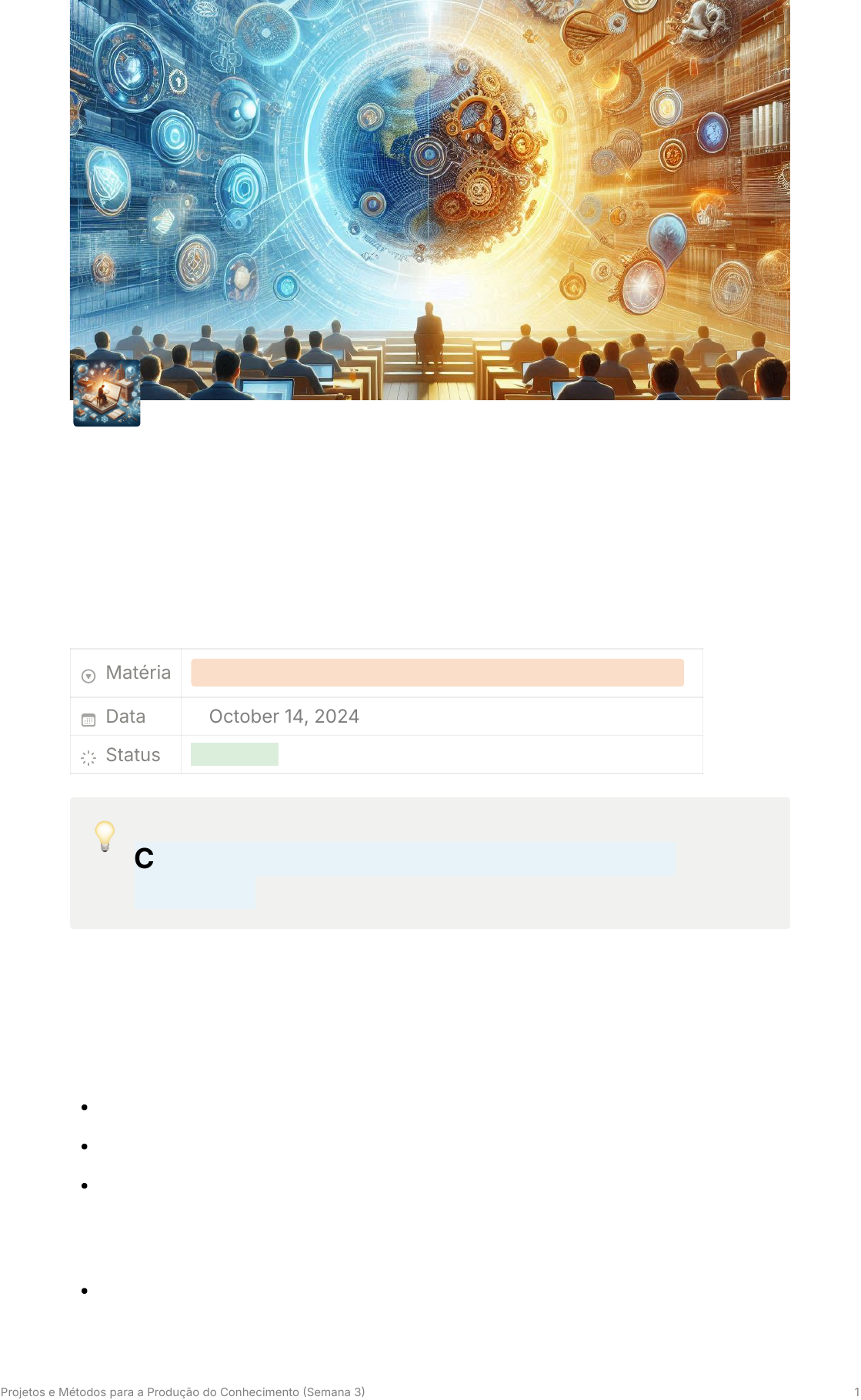 Projetos e Métodos para a Produção do Conhecimento Semana 3 1 Projetos e Métodos para a Produção do Conhecimento (Semana 3) Matéria Projetos e métodos para a produção do conhecimento Data Status Concluído 💡 Comunicação científica: rigor e ética em pesquisa O Fator de Impacto e o Qualis Capes são indicadores essenciais para avaliar publicações científicas. Fator de Impacto: Mede o número médio de citações de artigos em periódicos. Calculado anualmente pelo Journal Citation Reports JCR. Revistas com maior fator de impacto são vistas como mais influentes na comunidade científica. Qualis Capes: Sistema brasileiro que avalia periódicos científicos. October 14, 2024 Projetos e Métodos para a Produção do Conhecimento Semana 3 2 Criado pela CAPES. Classifica revistas de A1 (mais alto) a C (mais baixo). Avalia a produção científica de programas de pós-graduação no Brasil. Importante para pesquisadores e instituições identificarem publicações relevantes. O índice h avalia a produtividade e impacto de um pesquisador, combinando o número de publicações e citações. Um pesquisador possui um índice h se publicou h artigos citados pelo menos h vezes. Essa métrica é usada junto com outros indicadores, como fator de impacto e Qualis Capes, para avaliar a produção científica. 💡 A comunicação científica: rigor e ética em pesquisa A informação científica é dinâmica e valiosa para a sociedade. Surge de atividades científicas e técnicas da pesquisa. Resultados de pesquisas são registrados e divulgados como informações científicas. Reconhecimento de um resultado de pesquisa ocorre apenas com sua divulgação. A informação é essencial para o avanço da ciência. A comunicação científica é crucial para o avanço do conhecimento e envolve: Circulação e intermediação de ideias na comunidade científica. Intercâmbio de conhecimentos entre pesquisadores. Aceitação de resultados que contribuem para o estoque universal de conhecimentos. Produção, disseminação e uso da informação científica. É vital para o reconhecimento dos resultados de pesquisa e para o progresso da ciência, formando um ciclo contínuo que conecta pesquisadores e dissemina informações valiosas à sociedade. Estrutura da comunicação científica: � Produção científica: Produto: resultado da pesquisa Produtores: pesquisadores � Tipos de comunicação: Informal: reuniões científicas, comunicação pessoal Projetos e Métodos para a Produção do Conhecimento Semana 3 3 Formal: comunicação escrita, incluindo livros, periódicos e relatórios técnicos � Objetivos: Visibilidade: tornar o trabalho conhecido Credibilidade: obter reconhecimento pelos pares Essa estrutura destaca que a comunicação científica abrange a produção e disseminação de conhecimento por meios formais e informais, promovendo a circulação de ideias na comunidade científica. A comunicação científica eletrônica é uma evolução importante na difusão do conhecimento, destacando-se por: Criar um novo canal de comunicação virtual. Utilizar meios eletrônicos para aumentar o alcance e a velocidade da disseminação. Impulsionar mudanças estruturais na comunicação científica através da tecnologia. Facilitar colaborações e trocas de ideias entre cientistas. Ela está ligada a novas tecnologias e diversas indústrias, como eletrônica, telefonia, satélites e entretenimento, que fornecem a infraestrutura necessária para expandir suas possibilidades. 💡 ÉTICA E RIGOR NA PESQUISA A ética e o rigor na pesquisa são essenciais para manter a integridade científica. Os principais pontos incluem: O RESPEITO deve ser aplicado a: Normas e procedimentos de pesquisa Pessoas pesquisadas Instituições envolvidas Códigos e comitês de ética Pesquisadores/autor como fonte Esses princípios éticos fortalecem a comunicação científica adequada e promovem visibilidade e credibilidade na comunidade científica. A ética na pesquisa é crucial para a integridade científica e a confiabilidade do conhecimento produzido. Atitudes éticas incluem: Não causar prejuízo ao participante Beneficiar a sociedade Projetos e Métodos para a Produção do Conhecimento Semana 3 4 Respeitar valores e decisões dos participantes Tratar todos de forma igual Princípios éticos fundamentais: Consentimento: concordância voluntária dos participantes Confiabilidade: integridade dos dados e do processo Anonimato: proteção da identidade dos participantes Proteção dos dados: segurança das informações Esses princípios reforçam a importância do respeito e da consideração ética em pesquisas científicas. 💡 Ler e analisar textos A leitura e análise de textos são fundamentais na pesquisa científica. Principais pontos sobre como abordar textos acadêmicos: Importância da leitura: Seguir o pensamento do autor. Análise do autor: Entender raciocínio, objetivos e estilo. Como ler um texto: Definir um objetivo claro e examinar a estrutura (sumário, prefácio, títulos). Essa abordagem é vital para a compreensão crítica e disseminação do conhecimento científico. A metodologia de leitura rigorosa permite que pesquisadores avaliem criticamente suas fontes, preservando a integridade científica. O fichamento é essencial para organizar informações de textos acadêmicos e deve conter: Referência completa da obra Trechos literais como citações Citações diretas e indiretas normalizadas Texto coerente Informações necessárias sobre o tema Palavras próprias entre as citações Síntese geral no início ou final Essa estrutura complementa técnicas de leitura e análise, ajudando na organização das informações e na recuperação rápida de dados importantes durante a pesquisa. Ao seguir as diretrizes para fichamento, pesquisadores aprofundam a compreensão de textos acadêmicos, promovendo rigor na pesquisa e Projetos e Métodos para a Produção do Conhecimento Sem