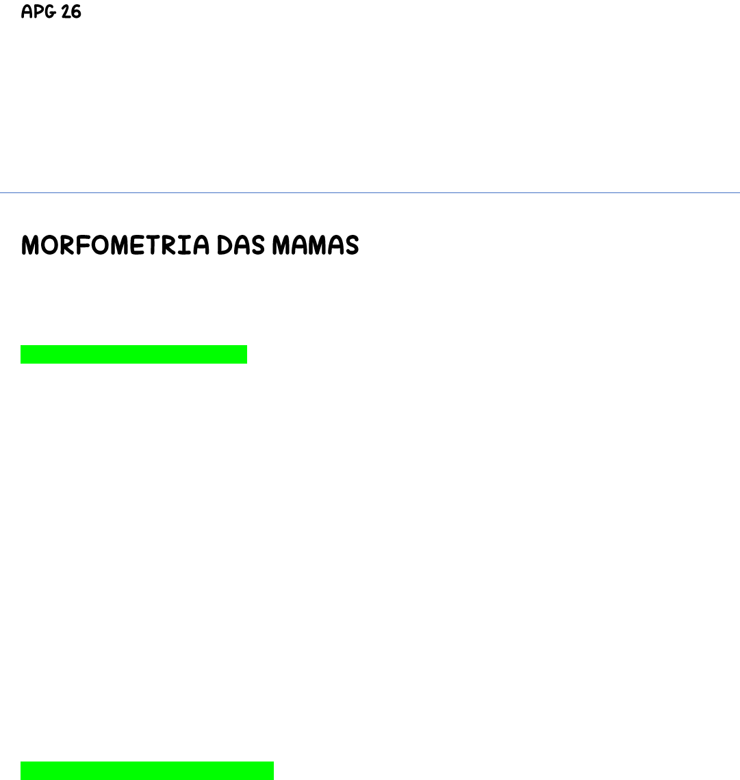APG 26 | Feliphe Mascarenhas 1 – Revisar a morfometria das mamas. 2 – Compreender a epidemiologia, fatores de risco, fisiopatologia, manifestações clínicas do CA de mama. 3 – Estudar a avaliação da mama (Exame físico). 4 – Entender o diagnóstico e tratamento do CA de mama. ➢ Alterações benignas e malignas A morfometria das mamas refere-se à avaliação das dimensões, forma e simetria das mamas, levando em consideração aspectos anatômicos e funcionais. Essa avaliação é útil tanto em contextos clínicos, como no diagnóstico de doenças mamárias, quanto em situações estéticas, como na cirurgia plástica reconstrutiva e estética. Componentes Anatômicos da Mama As mamas são estruturas localizadas sobre o músculo peitoral maior, compostas por tecido glandular, tecido adiposo e ligamentos suspensores (ligamentos de Cooper), que dão sustentação às mamas. A morfometria avalia essas estruturas para entender suas dimensões e características. Os principais parâmetros avaliados na morfometria das mamas incluem: • Tamanho: Refere-se ao volume mamário, influenciado pela proporção de tecido glandular e adiposo. • Forma: A forma da mama varia entre as mulheres e pode ser arredondada, em formato de gota, ou outras variações, que podem ser influenciadas pela idade, genética, amamentação e peso corporal. • Simetria: Muitas mulheres apresentam mamas ligeiramente assimétricas, o que é normal. No entanto, grandes assimetrias podem ser esteticamente indesejadas ou indicativas de condições patológicas. • Altura da Base: A altura da base da mama é medida desde o ponto mais alto da mama (polo superior) até o sulco inframamário (onde a mama encontra o tórax). • Diâmetro da Mama: O diâmetro é avaliado na base da mama e pode influenciar o tipo de sutiã ou cirurgia indicada. • Complexo Aréolo-Papilar (CAP): Avalia-se o tamanho, forma e posição do mamilo e da aréola, que podem influenciar a estética e a função (por exemplo, durante a amamentação). Importância da Morfometria das Mamas A avaliação morfométrica é importante em diversos contextos clínicos e estéticos: 2.1. Diagnóstico e Avaliação Clínica • Tumores e Nódulos: Alterações no tamanho, simetria ou forma das mamas podem ser indicativas de tumores ou condições benignas, como fibroadenomas. A avaliação da morfometria é fundamental para detectar mudanças estruturais que possam sugerir malignidade. • Assimetria Mamária: A assimetria entre as mamas pode ser congênita ou adquirida, e em casos acentuados, pode gerar desconforto estético ou emocional. O exame clínico das mamas utiliza a morfometria para avaliar essas alterações. APG 26 | Feliphe Mascarenhas • Pós-amamentação: Muitas mulheres apresentam alterações no tamanho e forma das mamas após a amamentação. A perda de volume e a ptose mamária (queda das mamas) são comuns e podem ser avaliadas para fins de planejamento de cirurgia reconstrutiva. 2.2. Cirurgia Plástica e Reconstrutiva • A morfometria das mamas é essencial no planejamento de cirurgias plásticas, como a mamoplastia de aumento, mamoplastia redutora e mastopexia (lifting das mamas). • Mamoplastia Redutora: Pacientes com hipertrofia mamária (mamas grandes) podem sofrer de dores nas costas, no pescoço e nos ombros. A avaliação morfométrica ajuda a determinar a quantidade de tecido que deve ser removida para atingir uma proporção equilibrada entre o tamanho das mamas e o corpo da paciente. • Mamoplastia de Aumento: Na escolha do tamanho e tipo de implante mamário, a morfometria é usada para avaliar o volume ideal que harmonize com o tórax e proporcione um resultado estético satisfatório. • Mastopexia: Em casos de ptose (queda das mamas), a morfometria é essencial para planejar a elevação da mama e reposicionar o complexo aréolo-papilar para uma aparência mais estética. 2.3. Reconstrução Mamária Pós-Mastectomia • Após uma mastectomia (remoção parcial ou total da mama devido ao câncer), a morfometria desempenha um papel crucial na reconstrução mamária. A avaliação precisa das dimensões da mama original e da simetria entre as mamas é importante para obter um resultado reconstrutivo equilibrado. • A reconstrução pode ser feita com tecidos autólogos (retalhos de tecido do próprio corpo) ou com implantes mamários, e o planejamento envolve uma avaliação morfométrica cuidadosa. Técnicas de Medição na Morfometria Mamária Existem várias técnicas para avaliar a morfometria das mamas, utilizadas principalmente em contextos cirúrgicos e estéticos: • Medidas Manuais: Utilizam fitas métricas e compasso para medir o diâmetro da mama, a distância do mamilo até o sulco inframamário, e a distância do mamilo até a clavícula ou até o esterno. • Avaliação 3D: Técnicas avançadas, como a tomografia tridimensional ou fotografia 3D, permitem criar imagens precisas das mamas, facilitando o planejamento cirúrgico. A reconstrução 3D oferece uma visão detalhada da forma, volume e simetria das mamas, permitindo simulações pré-operatórias. • Ultrassonografia Mamária: Além de ser uma ferramenta diagnóstica para avaliar lesões mamárias, a ultrassonografia pode ser usada para medir a espessura do tecido glandular e adiposo, ajudando na avaliação morfométrica das mamas. Alterações Morfométricas ao Longo do Tempo As mamas passam por diversas mudanças ao longo da vida devido a fatores hormonais, gestacionais e envelhecimento, o que influencia a morfometria: • Ciclo Menstrual: Durante o ciclo menstrual, pode haver flutuações no tamanho e sensibilidade das mamas, devido às mudanças hormonais. A retenção de líquidos e o aumento temporário da glândula mamária podem causar variações sutis. • Gravidez e Amamentação: A gravidez e a lactação resultam em aumento significativo do volume mamário devido à expansão das glândulas mamárias. Após a amamentaç