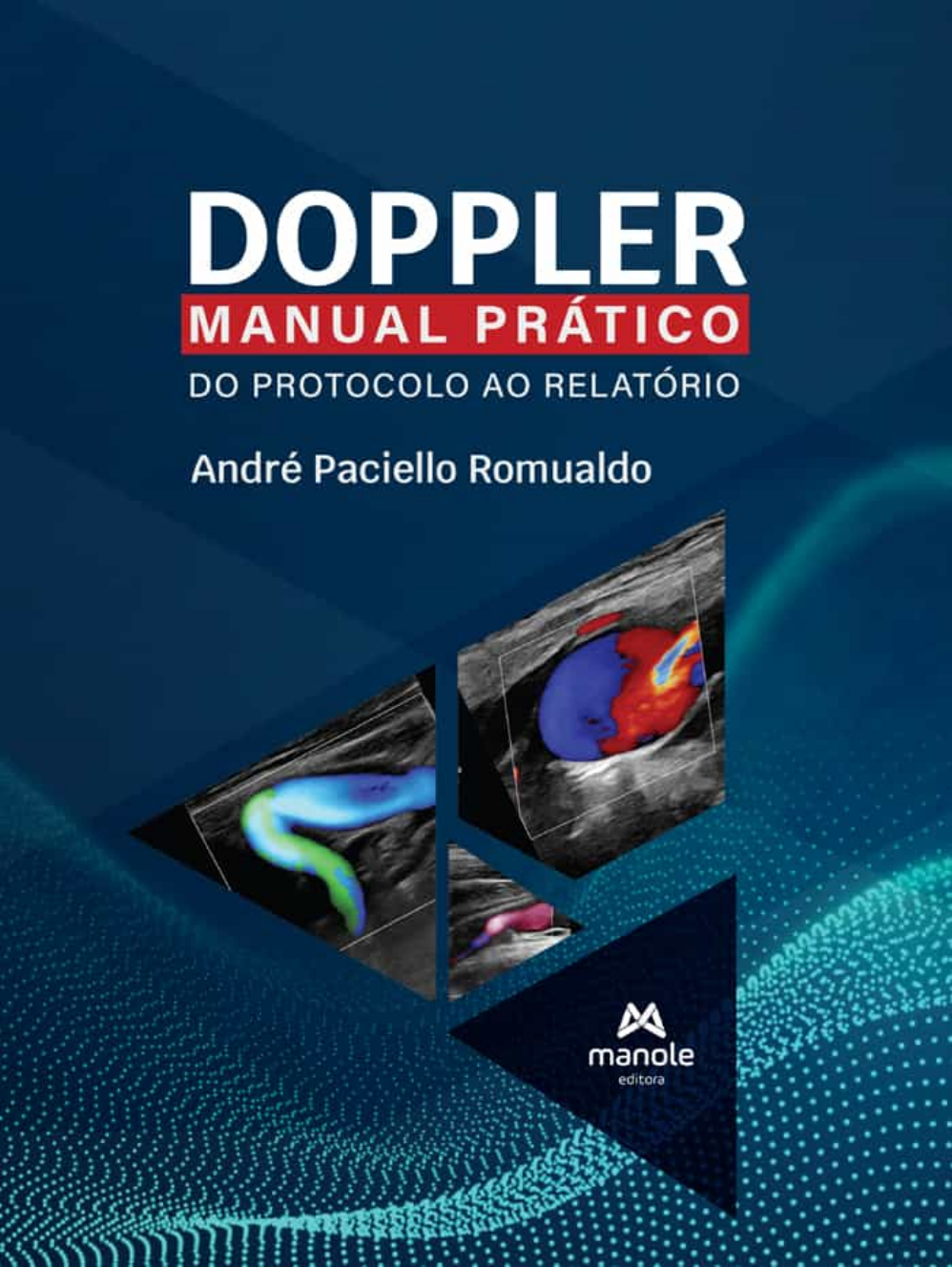 Doppler Manual prático – do protocolo ao relatório André Paciello Romualdo © 2023 Editora Manole, por meio de contrato com o autor. Projeto gráfico: Departamento de arte da Editora Manole Diagramação: Luargraf Serviços Gráficos Ilustração: Autoria e Luargraf Serviços Gráficos Capa: Departamento de arte da Editora Manole Fotografias: André Paciello Romualdo CIP-BRASIL. CATALOGAÇÃO NA PUBLICAÇÃO SINDICATO NACIONAL DOS EDITORES DE LIVROS, RJ R674d Romualdo, André Paciello Doppler : manual prático : do protocolo ao relatório / André Paciello Romualdo. - 1. ed. - Santana de Parnaíba [SP] : Manole, 2023. Inclui índice ISBN 9788520462010 1. Doppler, Ultrassonografia colorida. 2. Diagnóstico por ultrassom. 3. Doppler, Ultrassonografia dupla. I. Título. 23-83233 CDD: 616.07543 CDU: 616-073 Gabriela Faray Ferreira Lopes - Bibliotecária - CRB-7/6643 Edição – 2023 Editora Manole Ltda. Alameda América, 876 – Tamboré 06543-315 – Santana de Parnaíba – SP – Brasil Tel.: (11) 4196-6000 manole.com.br | atendimento.manole.com.br http://www.manole.com.br/ https://atendimento.manole.com.br/ Sobre o autor André Paciello Romualdo Graduação em Medicina e especialização em Radiologia e Diagnóstico por Imagem pela Faculdade de Medicina da Universidade de São Paulo (FMUSP). Radiologista sênior dos grupos de ultrassonografia e imagem cardiovascular do grupo Fleury. Coordenador de ultrassonografia da Sociedade Paulista de Radiologia. Autor dos livros Doppler sem segredos, 1ª e 2ª edições, e Novas Técnicas em Ultrassonografia. Organizador e autor do e- book Ultrassonografia com Doppler – Série Casos Comentados da SPR. Dedicatória Para minha esposa Valéria e minhas filhas Stella e Pietra, os melhores capítulos que escrevi na vida. Para meus pais Alberto e Aracy, in memoriam et in corde. Também para Gandalf, meu cachorro, por ter ficado ao meu lado todas as noites enquanto escrevia este livro. CAPÍTULO 1 CAPÍTULO 2 CAPÍTULO 3 CAPÍTULO 4 CAPÍTULO 5 CAPÍTULO 6 CAPÍTULO 7 CAPÍTULO 8 CAPÍTULO 9 CAPÍTULO 10 CAPÍTULO 11 CAPÍTULO 12 Sumário Prefácio Conceitos básicos Padrões de onda Cirurgia vascular Vasculopatias Anomalias vasculares Carótidas e vertebrais Aorta e ilíacas Artérias esplâncnicas Arterial periférico Cava inferior e ilíacas – Incluídas desordens venosas pélvicas Veias esplâncnicas Venoso periférico Prefácio Ultrassonografia com Doppler é um dos principais métodos diagnósticos de afecções vasculares e, sem dúvida, a primeira opção em muitos contextos clínicos. Como tento deixar claro ao longo dos diversos capítulos deste livro, o estudo Doppler é uma ferramenta primorosa não só para demonstrar essas afecções, como também para explicar suas causas e consequências. Para tirar melhor proveito do método, entretanto, é preciso saber ajustar adequadamente os parâmetros técnicos, compreender suas principais indicações e conhecer o comportamento hemodinâmico das principais alterações. Ao longo dos últimos anos, tenho tentado contribuir com o ensino desses temas em diversas plataformas e aprimorar a literatura médica em doenças cardiovasculares. Este livro é a continuação de uma série de publicações que se iniciaram em Doppler Sem Segredos, ainda contendo muito do seu DNA, mas que se encorpou ao encontrar na Editora Manole o parceiro ideal para dar um passo à frente na transmissão de conhecimento, dada sua reconhecida reputação em publicar textos didáticos. Doppler: Manual prático – do protocolo ao relatório é uma obra voltada para especialistas de qualquer área que tenham interesse em se aventurar nas ondas ultrassônicas do Doppler com embasamento teórico e rigor científico, mas que anseiam por um conteúdo prático e amplamente ilustrado, englobando desde os protocolos mais adequados para cada situação clínica até biblioteca de frases para entregar um melhor resultado. Espero que aproveitem! André Paciello Romualdo 1 Conceitos básicos INTRODUÇÃO O estudo Doppler é baseado na teoria apresentada por Christian Andreas Doppler em 1842 na Academia Real Boêmia de Praga, em que ondas eletromagnéticas foram utilizadas para detectar o movimento das estrelas. O mesmo princípio foi incorporado pela ultrassonografia, que utiliza ondas acústicas para detectar o movimento das hemácias por meio da diferença entre a frequência emitida e a recebida pelo transdutor, denominada desvio Doppler ou frequência Doppler, e definida pela fórmula em que v é a velocidade do fluxo, fD é a frequência Doppler, c a velocidade do som, fe a frequência emitida e cos θ o cosseno do ângulo Doppler. (Figura 1). MODO B Por serem exames sinérgicos, não é possível realizar um estudo Doppler ótimo sem uma boa base ao modo B, o que inclui o ajuste de todos os parâmetros de estudo, a começar pelo transdutor com geometria e frequência adequados para o vaso avaliado. Para um estudo da aorta é necessário um transdutor convexo de baixa frequência, enquanto para um estudo da safena magna um transdutor linear de alta frequência. O ganho, a profundidade e o foco também devem estar ajustados, de modo que as paredes sejam bem visualizadas, o vaso esteja centralizado na tela, local de maior resolução espacial, e adequadamente dimensionado. FIGURA 1 Esquema ilustrativo da variação de frequência emitida e refletida com correção do ângulo Doppler. Depois de todos os parâmetros bem ajustados, o estudo deve ser iniciado com uma varredura no eixo axial do vaso para adequado planejamento do restante do exame, observando eventuais alterações de trajeto, calibre e paredes, entre outras. Na sequência, o vaso deve ser reposicionado em seu eixo longitudinal apenas rodando o transdutor, já que a análise com Doppler sempre que possível deve ser feita no maior eixo do vaso (Figura 2). MODO COLORIDO O modo colorido sobrepõe-se ao modo B através de um boxe, em que o efeito Doppler é aplicado. No 