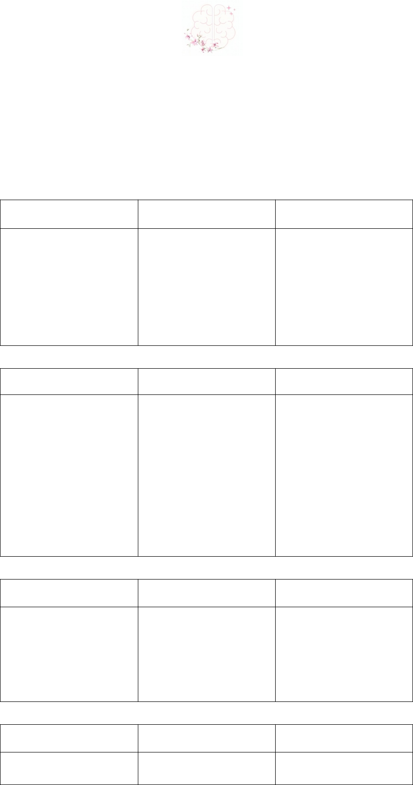 IDENTIFICANDO MINHAS DISTORÇÕES COGNITIVAS Nome:_______________________________________ Data:____/____/_________ Distorções cognitivas são erros de pensamentos, ou seja, uma interpretação distorcida que tendemos a fazer. DISTORÇÃO DEFINIÇÃO EXEMPLOS Catastrofização Superestimar ameaças e perigos. Pensar no pior que pode acontecer, sem levar em consideração outros desfechos. "Se eu perder o emprego, isso será o fim da minha carreira." "Nunca vou ser feliz." DISTORÇÃO DEFINIÇÃO EXEMPLOS Advinhação do futuro Tirar conclusões precipitadas sobre o que ainda não aconteceu. Antecipar o futuro, achando que um desfecho temido vai acontecer. "Não vou gostar da festa." "Vai dar tudo errado." "Vai me dar um branco na hora da prova e não vou conseguir passar." DISTORÇÃO DEFINIÇÃO EXEMPLOS Visão de túnel ou Filtro mental Focar somente nas informações ligadas à possível ameaça, ignorando as evidências de segurança. "Aquela pessoa que está vindo na minha direção vai me atacar." DISTORÇÃO DEFINIÇÃO EXEMPLOS Leitura mental Acreditar saber o que as outras pessoas estão pensando sobre você ou acreditar saber que os outros sabem o que você está pensando. "Ele não está gostando do meu projeto." "Ela vai achar que eu sou um fracasso." DISTORÇÃO DEFINIÇÃO EXEMPLOS Rotulação Atribuir traços negativos a si mesmo e aos outros, colocando um rótulo. "Eu sou um incompetente." "Sou um perdedor." "Ela é burra." DISTORÇÃO DEFINIÇÃO EXEMPLOS Desqualificação dos aspectos positivos Afirmar que suas realizações são triviais. Dizer a si mesmo que as suas experiências ou qualidades positivas não contam. "Tirei uma boa nota, mas isso não conta porque a prova foi fácil." "Eles estão me elogiando porque são gentis." DISTORÇÃO DEFINIÇÃO EXEMPLOS Supergeneralização Ver vários aspectos negativos com base em um único, ou alguns incidentes. "Isso sempre acontece comigo." "Vou tirar sempre nota baixa na prova como da outra vez." DISTORÇÃO DEFINIÇÃO EXEMPLOS Raciocínio emocional Presumir que sentimentos são fatos, ou seja, achar que as coisas são conforme o que eu sinto. Deixar os sentimentos guiarem as interpretações. "Sinto que minha mulher não gosta mais de mim, por isso meu casamento não está dando certo." DISTORÇÃO DEFINIÇÃO EXEMPLOS Pensamento dicotômico ou de tudo-ou-nada Ver as situações nos extremos. Em termos rígidos e absolutos. A famosa máxima, ou serei um 8 ou 80. "Tudo isso foi uma perda de tempo." "Ou perfeitamente, ou não vale a pena." "Devo sempre tirar a nota máxima, fracasso." DISTORÇÃO DEFINIÇÃO EXEMPLOS Vitimização ou atribuição de culpa Concentrar-se na fonte de sentimentos negativos e se recusar a assumir a responsabilidade da mudança. "Estou me sentindo assim por causa dela." "Meus pais são a causa dos meus problemas." DISTORÇÃO DEFINIÇÃO EXEMPLOS Afirmações do tipo “DEVERIA” Interpretar os eventos em termos de como deveriam ser, em vez de simplesmente concentrar-se no que elas são. "É horrível cometer erros, eu deveria sempre dar o melhor de mim” DISTORÇÃO DEFINIÇÃO EXEMPLOS Personalização Atribuir a si mesmo uma culpa desproporcional por eventos negativos e não conseguir ver que certos eventos também são causados por outros. Considerar que os outros estão agindo negativamente por sua causa, sem considerar outras explicações plausíveis. "Meu casamento terminou porque eu falhei." "O professor foi rude comigo porque eu fiz algo de errado." DISTORÇÃO DEFINIÇÃO EXEMPLOS Comparações injustas Interpretar os eventos em termos de padrões irrealistas, comparando-se a pessoas que se saem melhor do que você e, portanto, concluindo ser inferior a elas. "Ela é mais bem sucedida que eu." "Os outros se saíram melhor do que eu na prova." DISTORÇÃO DEFINIÇÃO EXEMPLOS Orientação para o remorso Ficar preso à ideia de que poderia ter feito melhor no passado, em vez de pensar no que poderia fazer melhor no agora. "Eu poderia ter conseguido um emprego melhor se tivesse tentado." "Eu não deveria ter dito isso." image1.jpg