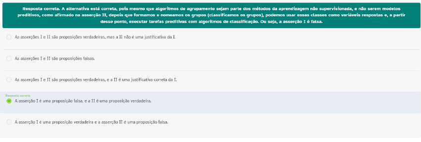 Depois que formamos grupos de observações de um conjunto de dados (amostra), por meio de um algoritmo de agrupamento, podemos dar nomes aos mesmos, e cada indivíduo de cada grupo será classificado de acordo com esse nome. O ser humano faz isso com n do algoritmo, não é possível usar essas classes como variáveis respostas e, a partir desse ponto, executar tarefas preditivas com algoritmos de classificação. Pois II. Algoritmos de agrupamento fazem parte dos métodos da chamada aprendizagem não supervisionada. Não são modelos preditivos. image1.png