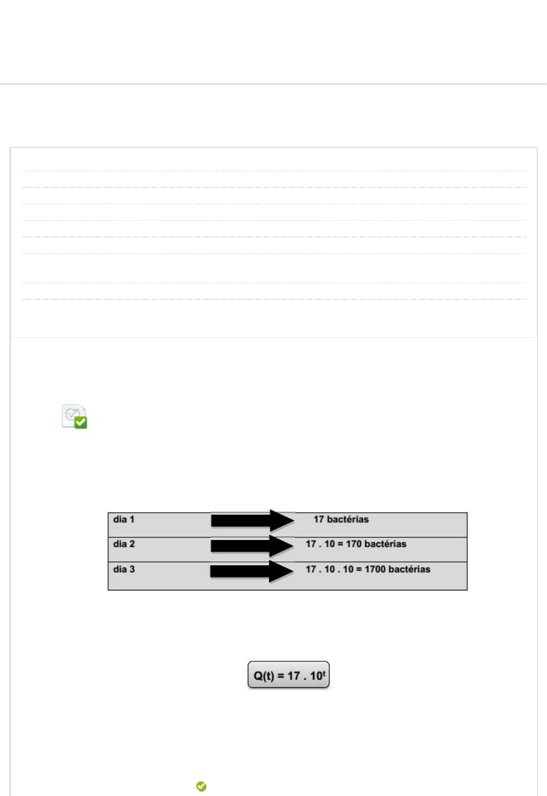 Revisar envio do teste: QUESTIONÁRIO UNIDADE III MATEMÁTICA PARA COMPUTAÇÃO 6655-60_57501_R_E1_20242_01 CONTEÚDO Usuário JULIANA MEIER SOARES Curso MATEMÁTICA PARA COMPUTAÇÃO Teste QUESTIONÁRIO UNIDADE III Iniciado 17/10/24 19:03 Enviado 17/10/24 19:32 Status Completada Resultado da tentativa 2,5 em 2,5 pontos Tempo decorrido 29 minutos Resultados exibidos Todas as respostas, Respostas enviadas, Respostas corretas, Comentários, Perguntas respondidas incorretamente Pergunta 1 Resposta Selecionada: c. (FUMARC /2018 - adaptada) Segundo o dicionário, o termo "exponencialmente ou exponencial" signi�ca algo que é considerado acima ou abaixo do comum ou que tem grande ritmo ou variação (ex.: crescimento exponencial de uma colônia de bactéria ou juros de cartão de crédito). Vamos supor que a cada 24 horas, a quantidade de determinada bactéria, em uma pequena amostra, aumente aproximadamente 10 vezes em relação à quantidade registrada no dia anterior, que este padrão se mantenha nos dias seguintes e assim sucessivamente. Adote Q(t) para a quantidade de bactérias na amostra a cada t dias, em intervalos exatos de 24 horas e considere t = 0 para o registro no dia 1. A relação exponencial que expressa a quantidade de bactérias na amostra a cada t dias será dada por Se nada for feito para conter o avanço do número de bactérias na colônia amostral, no tempo t = 10 dias, teremos Q = 17 . 10 9 = D bactérias registradas. Assinale a alternativa que apresenta o valor correto de D para a equação acima. 17 000 000 000. UNIP EAD BIBLIOTECAS MURAL DO ALUNO TUTORIAISCONTEÚDOS ACADÊMICOS 0,25 em 0,25 pontos 17/10/2024, 19:33 Revisar envio do teste: QUESTIONÁRIO UNIDADE III – ... https://ava.ead.unip.br/webapps/assessment/review/review.jsp?attempt_id=_108488101_1&course_id=_360638_1&content_id=_4117494_1&retu… 1/9 http://company.blackboard.com/ https://ava.ead.unip.br/webapps/blackboard/execute/courseMain?course_id=_360638_1 https://ava.ead.unip.br/webapps/blackboard/content/listContent.jsp?course_id=_360638_1&content_id=_4116254_1&mode=reset https://ava.ead.unip.br/webapps/portal/execute/tabs/tabAction?tab_tab_group_id=_10_1 https://ava.ead.unip.br/webapps/portal/execute/tabs/tabAction?tab_tab_group_id=_27_1 https://ava.ead.unip.br/webapps/portal/execute/tabs/tabAction?tab_tab_group_id=_47_1 https://ava.ead.unip.br/webapps/portal/execute/tabs/tabAction?tab_tab_group_id=_29_1 https://ava.ead.unip.br/webapps/portal/execute/tabs/tabAction?tab_tab_group_id=_25_1 https://ava.ead.unip.br/webapps/login/?action=logout Respostas: a. b. c. d. e. Comentário da resposta: 17 000 000. 170 000 000. 17 000 000 000. 170 000 000 000. 17 000 000 000 000. Resposta: C Comentário: Para respondermos a esta questão de forma imediata, basta nos atentarmos ao fato de que um valor, quando multiplicado por uma base 10 elevada a uma expoente qualquer, resultará nesse mesmo valor “acrescentado” de tantos zeros quanto o expoente indicar. Isso pode ser observado nos resultados apresentados pela tabela do enunciado. Desse modo, 10 9 nos pede para acrescentarmos 9 zeros após o valor 17. Temos, portanto: Q = 17 . 10 9 = 17 000 000 000. Pergunta 2 Resposta Selecionada: d. Respostas: a. b. c. d. e. Comentário da resposta: (FGV/2019) Uma colônia de bactérias, inicialmente com 10 bactérias, dobra de tamanho a cada hora. A função que expressa o número N(t) de bactérias dessa colônia, t horas após o instante inicial é: N(t) = 10 ⋅ 2t. N(t) = 10t. N(t) = 20t. N(t) = 10 + 2t. N(t) = 10 ⋅ 2t. N(t) = 10 ⋅ t2. Resposta: D Comentário: Inicialmente (no instante t = 0), temos 10 bactérias. Após 1 h (no instante t = 1), temos 10.2 = 20, já que esperamos que o número de bactérias dobre. Após 2 h (no instante t = 2), temos (10.2).2 = 10.22 = 40, já que esperamos que o número de bactérias dobre novamente em relação ao instante anterior. Após 3 h (no instante t = 3), temos (10.22).2 = 10.23 = 80. Generalizando essa tendência, temos que o número de bactérias N(t) será dado por N(t) = 10.2t , onde t representa o número de horas após o instante inicial. Pergunta 3 0,25 em 0,25 pontos 0,25 em 0,25 pontos 17/10/2024, 19:33 Revisar envio do teste: QUESTIONÁRIO UNIDADE III – ... https://ava.ead.unip.br/webapps/assessment/review/review.jsp?attempt_id=_108488101_1&course_id=_360638_1&content_id=_4117494_1&retu… 2/9 Resposta Selecionada: e. Respostas: a. b. c. d. e. Comentário da resposta: (CS-UFG/2019 - adaptada) A população de um determinado país vem decrescendo em relação ao tempo t, dado em anos, segundo a função P(t) = A.2 Bt, onde A é o valor da população em t=0 e B é uma constante. Sabe-se que, depois de 32 anos, a população foi reduzida à metade da população inicial. Qual é o valor da constante B? –1/32. –1/2. –1/4. –1/8. –1/16. –1/32. Resposta: E Comentário: Do enunciado, sabemos que A representa a população no instante inicial (t = 0). Após 32 anos (t = 32), a população foi reduzida à metade da população inicial, podendo ser matematicamente expressa como A/2. Com isso, podemos montar uma equação exponencial e descobrir o valor da constante B. O cálculo é demonstrado abaixo: O A do termo da esquerda, que multiplica, pode passar para o outro lado da igualdade dividindo. O 2 do termo da direita, que divide, pode passar para o outro lado da igualdade multiplicando. Como A/A = 1, podemos reescrever: Agora, podemos levar novamente o 2, que está multiplicando, para o outro lado da igualdade, dividindo. Podemos, agora, igualar as bases, tornando o expoente do denominador negativo. Com as bases iguais, igualamos os expoentes e resolvemos para B: 17/10/2024, 19:33 Revisar envio do teste: QUESTIONÁRIO UNIDADE III – ... https://ava.ead.unip.br/webapps/assessment/review/review.jsp?attempt_id=_108488101_1&course_id=_360638_1&content_id=_4117494_1&retu… 3/9 Pergunta 4 Resposta Selecionada: b. Respostas: a. b. c. d. e. Comentário da respos