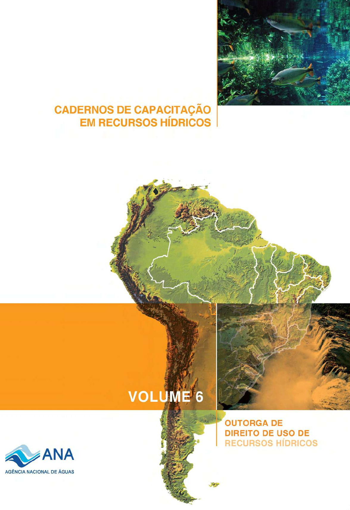 OUTORGA DE DIREITO DE USO DE RECURSOS HÍDRICOS CADERNOS DE CAPACITAÇÃO EM RECURSOS HÍDRICOS VOLUME 6 República Federativa do Brasil Dilma Vana Rousseff Presidenta Ministério do Meio Ambiente Izabella Mônica Vieira Teixeira Ministra Agência Nacional de Águas Diretoria Colegiada Vicente Andreu Guillo (Diretor-Presidente) Dalvino Troccoli Franca Paulo Lopes Varella Neto João Gilberto Lotufo Conejo Paulo Rodrigues Vieira Secretaria-Geral (SGE) Mayui Vieira Guimarães Scafuto Procuradoria-Geral (PGE) Emiliano Ribeiro de Souza Corregedoria (COR) Elmar Luis Kichel Auditoria Interna (AUD) Edmar da Costa Barros Chefi a de Gabinete (GAB) Horácio da Silva Figueiredo Júnior Coordenação de Articulação e Comunicação (CAC) Antônio Félix Domingues Coordenação de Gestão Estratégica (CGE) Bruno Pagnoccheschi Superintendência de Apoio à Gestão de Recursos Hídricos (SAG) Rodrigo Flecha Ferreira Alves Superintendência de Planejamento de Recursos Hídricos (SPR) Ney Maranhão Superintendência de Gestão da Rede Hidrometeorológica (SGH) Valdemar Santos Guimarães Superintendência de Gestão da Informação (SGI) Sérgio Augusto Barbosa Superintendência de Implementação de Programas e Projetos (SIP) Ricardo Medeiros de Andrade Superintendência de Regulação (SRE) Francisco Lopes Viana Superintendência de Usos Múltiplos (SUM) Joaquim Guedes Corrêa Gondim Filho Superintendência de Fiscalização (SFI) Flávia Gomes de Barros Superintendência de Administração, Finanças e Gestão de Pessoas (SAF) Luís André Muniz 3 Agência Nacional de Águas Ministério do Meio Ambiente Brasília – DF 2011 OUTORGA DE DIREITO DE USO DE RECURSOS HÍDRICOS CADERNOS DE CAPACITAÇÃO EM RECURSOS HÍDRICOS VOLUME 6 Agência Nacional de Águas (ANA) Equipe técnica Coordenação, acompanhamento e elaboração Superintendência de Apoio à Gestão de Recursos Hídricos Rodrigo Flecha Ferreira Alves Superintendente de Apoio à Gestão de Recursos Hídricos Coordenação-Geral Wilde Cardoso Gontijo Júnior Gerente de Gestão de Recursos Hídricos (até março de 2010) Coordenação-Geral Flávia Simões Ferreira Rodrigues Coordenação-Executiva Taciana Neto Leme Coordenação-Executiva-Adjunta Cadernos de Capacitação em Recursos Hídricos – volume 6 Fotos: Banco de Imagens da ANA Maria de Fátima Chagas Dias Coelho © Agência Nacional de Águas (ANA), 2011. Setor Policial Sul, Área 5, Quadra 3, Blocos B, L, M e T. CEP 70.610-200, Brasília, DF PABX: 61 2109 5400 www.ana.gov.br Colaboradores Superintendência de Apoio à Gestão de Recursos Hídricos Cláudio Pereira; José Carlos de Queiroz; Osman Fernandes da Silva; Taciana Neto Leme; Tânia Regina Dias da Silva; Viviani Pineli Alves Superintendência de Outorga e Fiscalização Anna Paola Michelano Bubel; Flávia Gomes de Barros; Leonardo Mitre Alvim de Castro; Luciano Meneses Cardoso da Silva; Maurício Pontes Monteiro Consultora Maria de Fátima Chagas Dias Coelho Parceiros institucionais Organização das Nações Unidas para a Educação, a Ciência e a Cultura – Unesco Todos os direitos reservados. É permitida a reprodução de dados e de informações contidos nesta publicação, desde que citada a fonte. Catalogação na fonte: CEDOC/Biblioteca A265o Agência Nacional de Águas (Brasil). Outorga de direito de uso de recursos hídricos / Agência Nacional de Águas. -- Brasília: SAG, 2011. 50 p. : il. -- (Cadernos de capacitação em recursos hídricos ; v.1 vol. 6) ISBN 978-85-89629-78-2 1. recursos hídricos, outorga 2. recursos hídricos, direito de uso 3. comitê de bacia I. Agência Nacional de Águas (Brasil) II. Superintendência de Apoio à Gestão de Recursos Hídricos III. Título CDU 347.247(81)(075.2) 5 A Política Nacional de Recursos Hídricos (PNRH) foi instituída pela Lei nº 9.433, de 8 de janeiro de 1997. O conhecimento e a divulgação de seus conceitos, muitos deles inovadores, são formas de fortalecê-la e consolidá-la. A Agência Nacional de Águas (ANA), criada pela Lei nº 9.984, de 17 de julho de 2000, e instalada a partir da edição do Decreto nº 3.692, de 19 de dezembro do mesmo ano, completa em 2010 uma década de existência e funcionamento. Dando prosseguimento à sua desafi adora mis- são de implementar a Política Nacional de Re- cursos Hídricos, a ANA apresenta, em comemo- ração aos seus dez anos, essa série de cadernos com o objetivo de discorrer, de forma sucinta, so- bre os instrumentos previstos na Lei das Águas, bem como sobre o Sistema Nacional de Geren- ciamento de Recursos Hídricos (Singreh). O primeiro volume discorre sobre um dos en- tes do Singreh: o Comitê de Bacia Hidrográfi - ca. São apresentados o contexto histórico da criação dos comitês, as atribuições, como e por que os criar e as diferenças quando compara- dos a outros colegiados. O segundo volume tem objetivo mais prático: orientar o funcionamento dos comitês de bacia. São apresentados a estrutura organizacional, o papel de cada um dos elementos constituintes (Plenário, Diretoria, Secretario, Câmaras Téc- nicas, Grupos de Trabalho etc.), exemplos de documentos e informações úteis para o funcio- namento do comitê. O terceiro volume aborda alternativas organiza- cionais para a gestão de recursos hídricos. São apresentados exemplos exitosos de gestão de águas em escalas locais, passando por instâncias de gestão de águas subterrâneas e de águas em unidades de conservação ambiental, chegando até os complexos arranjos institucionais de geren- ciamento de águas de bacias transfronteiriças. APRESENTAÇÃO O quarto volume concentra-se em outro ente do Singreh: a Agência de Água ou Agência de Bacia. São apresentadas as competências, os pré-requisitos para a criação, os possíveis ar- ranjos institucionais para a constituição, o con- trato de gestão na Política de Recursos Hídri- cos e os demais temas afi ns. O quinto volume concentra-se nos instrumen- tos de planejamento d