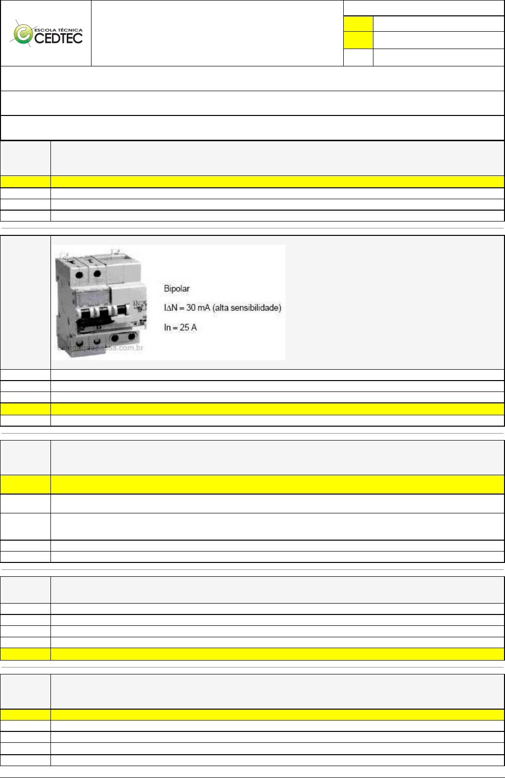 Pincel Atômico - 16/12/2024 11:38:01 1/6 Avaliação Online (SALA EAD) - Todos Capitulos/Referencias Atividade finalizada em 28/07/2024 16:49:49 (2415676 / 1) LEGENDA Resposta correta na questão # Resposta correta - Questão Anulada X Resposta selecionada pelo Aluno Disciplina: INSTALAÇÕES ELÉTRICAS PREDIAIS [1006011] - Avaliação com 20 questões, com o peso total de 30,00 pontos [capítulos - Todos] Turma: Curso Técnico: Eletrotécnica - Grupo: JANEIRO/24 PRES - N.ELET.Jan.24 [110391] Aluno(a): 91540505 - ROGERIO RISPERI - Respondeu 15 questões corretas, obtendo um total de 22,50 pontos como nota [350082_47137 ] Questão 001 O interruptor denominado para utilização em circuitos em que uma carga ou mais deve ser acionada em mais de 2 pontos diferentes é: X Interruptor intermediário Interrruptor duplo Interrruptor paralelo Interrruptor simples [350082_56014 ] Questão 002 Considere o dispositivo abaixo e algumas de suas especificações: Trata-se de um: Disjuntor termomagnético bipolar. Fusível tipo D bipolar Fusível NH bipolar X Disjuntor diferencial residual bipolar. Disjuntor de caixa moldada bipolar [350082_10174 ] Questão 003 Da legislação em vigor, a Resolução da ANEEL no 456, de 29/11/00, foram retiradas as seguintes definições de Carga instalada: X Soma das potências nominais dos equipamentos elétricos instalados na unidade consumidora, em condições de entrar em funcionamento, expressa em quilowatts (kW). Conjunto de instalações e equipamentos elétricos caracterizado pelo recebimento de energia elétrica em um só ponto de entrega, com medição individualizada e correspondente a um único consumidor. Pessoa física ou jurídica, ou comunhão de fato ou de direito, legalmente representada, que solicitar a concessionária o fornecimento de energia elétrica e assumir a responsabilidade pelo pagamento das faturas e pelas demais obrigações fixadas em normas e regulamentos da ANEEL, assim vinculando-se aos contratos de fornecimento, de uso e de conexão ou de adesão, conforme cada caso. Aceitação dos termos do contrato de adesão pelo consumidor responsável por unidade consumidora do Grupo “B”. Nenhuma das alternativas. [350082_2103] Questão 004 Qual das alternativas define melhor a corrente de curto-circuito? Cargas de potência nominal acima dos valores previstos no projeto. Solicitações dos equipamentos acima das suas capacidades nominais. Descargas elétricas provenientes de corrente de falta. Corrente de fuga à terra responsável por desarmar o DR. X É a passagem de corrente elétrica acima de 10 vezes o valor da corrente nominal do circuito elétrico. [350082_16835 5] Questão 005 Se em um circuito circula uma corrente de 200 mA através de um resistor de 100 ohms, a potência dissipada por esse resistor será igual a: 4W 400W 2W X 8W 200W Pincel Atômico - 16/12/2024 11:38:01 2/6 [350082_10173 ] Questão 006 Essa fonte de energia muito utilizada no Brasil e no mundo é um minério fóssil que, quando processado, dá origem a vários subprodutos, como a gasolina, óleo diesel, querosene, além de gerar eletricidade nas usinas termoelétricas. A que fonte de energia refere-se o fragmento acima? X Petróleo Gás natural Xisto betuminoso Carvão mineral Cana-de-açúcar [350082_52662 ] Questão 007 Em relação ao interruptor Three-Way, assinale a alternativa correta. É utilizado para desabilitar tomadas em risco. É aplicável somente a instalações industriais. Não é usual nas instalações elétricas. Envolve mais de quatro interruptores. X É usado em escadas e corredores devido a sua extensão. [349996_1209] Questão 008 Uma lâmpada permanece acessa durante 5 minutos por efeito de uma corrente de 2 A, fornecida por uma bateria. Nesse intervalo de tempo, a carga total (em C) liberada pela bateria é: 500 2,5 X 600 10 150 [350083_56047 ] Questão 009 A tabela a seguir relaciona a área de seção transversal interna com o diâmetro nominal de cada eletroduto. Um circuito elétrico é alimentado por três cabos que, juntos, ocupam uma área de seção transversal 800 mm2 aproximadamente. Tendo em vista uma ocupação máxima de 40%, o menor diâmetro nominal de eletroduto para acomodar esses cabos é: 1” 3” Para uma taxa de 40% de ocupação máxima nenhuma das seções acima é adequada sendo necessário uma seção de eletroduto superior a 3” 2 ½ “ X 2” [350083_5171] Questão 010 Assinale a alternativa que apresenta a melhor definição para demanda de energia: É a média das potências elétricas instantâneas solicitadas por uma unidade consumidora durante um período especificado. É a soma das potências nominais dos equipamentos instalados em uma unidade consumidora. É a carga total instalada de uma instalação elétrica monofásica, bifásica ou trifásica. X É a potência máxima de uma instalação elétrica consumidora, seja residencial ou industrial. É o limite de potência entregue pela concessionária de energia elétrica a uma unidade consumidora. [350083_2107] Questão 011 Qual o valor da corrente nominal de um circuito com potência elétrica equivalente a 5.000W e tensão=220V? 40 A. 30 A. 16 A. X 22,7 A. 32 A. [350083_16838 3] Questão 012 Assinale a alternativa correta com relação aos critérios para divisão de circuitos em instalações elétricas de baixa tensão. Cada circuito deverá ter seu próprio condutor terra. Pincel Atômico - 16/12/2024 11:38:01 3/6 Os pontos de tomadas de cozinhas, áreas de serviço e locais análogos devem ter tomadas e iluminação em um mesmo circuito. O condutor neutro pode ser comum a mais de um circuito Todo circuito terminal deve ser protegido contra sobrecorrentes por dispositivo que assegure o seccionamento simultâneo de todos os condutores de fase, neutro e terra X Todo ponto de utilização previsto para alimentar equipamento com corrente nominal superior a 10 A deve constituir um circuito independente [350083_16836 7] Questão 013 Uma usina hipotét