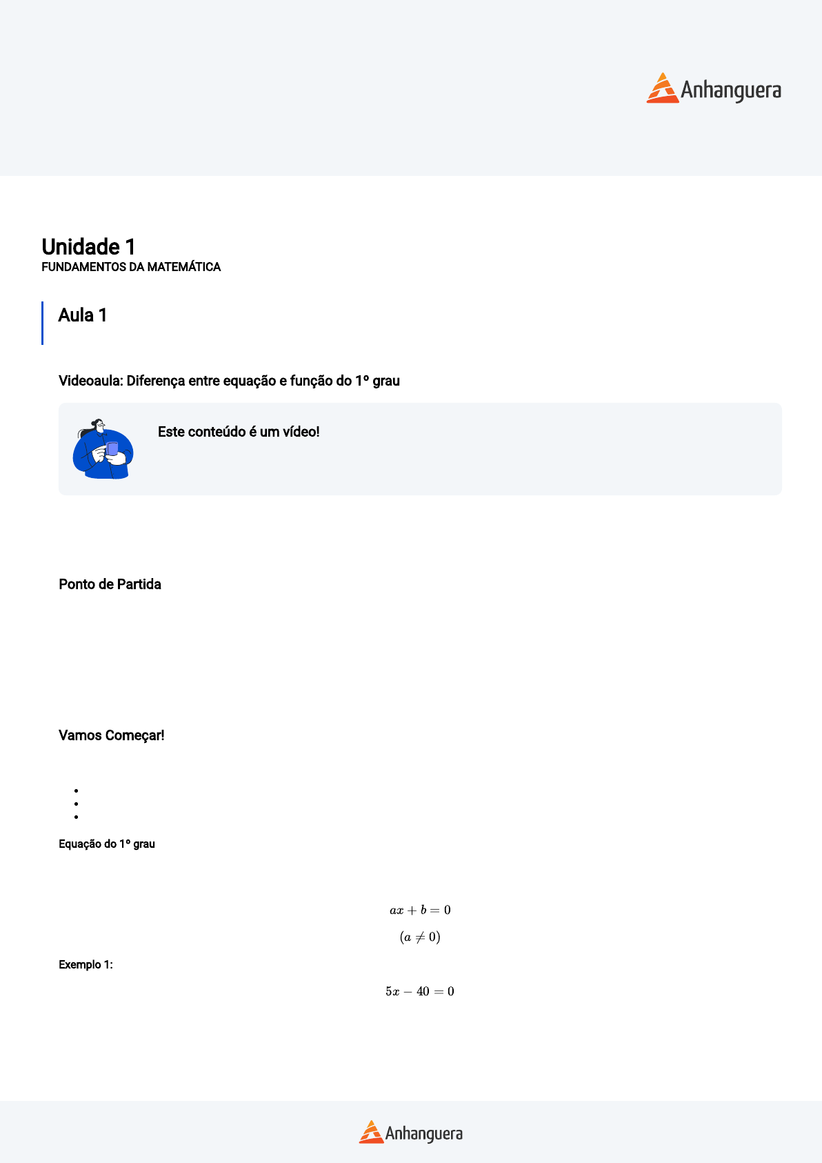 Olá, estudante! Você estudará sobre as equações do 1º grau, sendo uma expressão algébrica relacionada à igualdade, e as funções do 1º grau, que