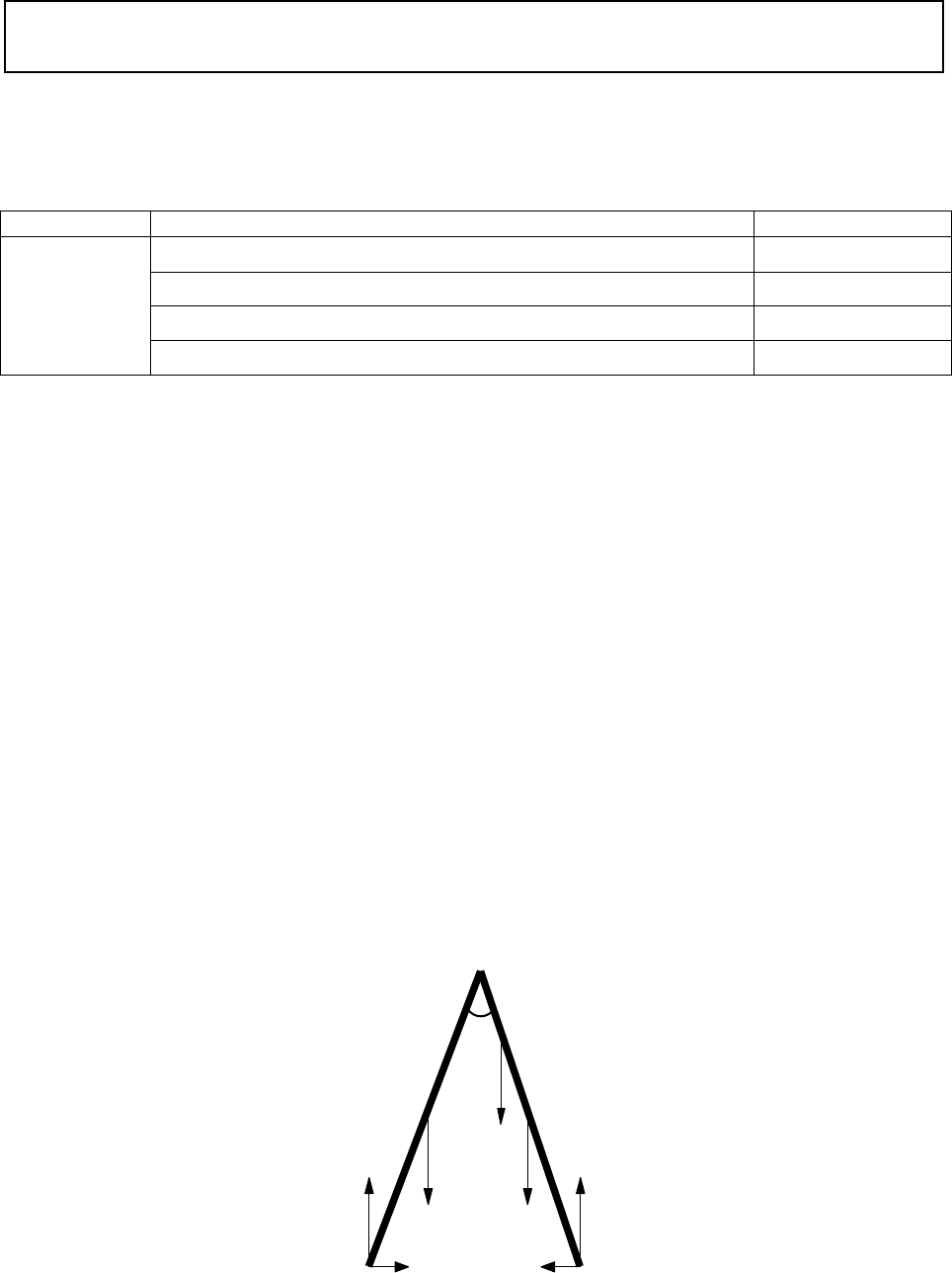 Omnes Graduatio 1 Roteiro de Experiência Ref.: 240627 Laboratório de Física 1 Curso: ___________________________________________ Turma: ______________________________ Data: ___________________ Roteiro da Experiência: Escada Bancada Nome Matrícula 1) Objetivos a) Coletar dados experimentais: massa, comprimento, ângulo. b) Determinar grandezas física. c) Verificar a teoria. d) Analisar resultados. 2) Introdução teórica Várias forças agindo sobre um corpo em diferentes pontos podem levá-lo a apresentar simultaneamente movimento de translação e de rotação. Quando o corpo está em equilíbrio, são obedecidas simultaneamente as condições de equilíbrio �⃗�!"# =$�⃗�$ = 0&⃗ 𝑒 𝑀&&⃗ !"# =$𝑀&&⃗ $ = 0&⃗ Nesta experiência estudaremos o equilíbrio de uma escada composta de dois lados, com um rolete em um deles (que permite desprezar o atrito do sistema), um pino e uma mola, submetida à ação das forças externas apresentadas no esquema abaixo (Figura 1). A experiência tem como finalidade determinar a tração na mola que une os dois lados da escada. A carga 𝑄&⃗ é aplicada no último degrau do lado em que está o rolete e 𝛽 é o ângulo formado entre os dois lados da escada no equilíbrio. Figura 1: Forças externas de uma escada em equilíbrio. A carga 𝑄&⃗ é aplicada no último degrau do lado que contém um rolete que permite desprezar o atrito. b a c b ! Rax ! Ray ! Rcx ! Rcy ! Q ! P2 ! P1 Omnes Graduatio 2 Roteiro de Experiência Ref.: 240627 Laboratório de Física 1 a) Força resultante No equilíbrio do corpo em questão temos: $𝐹% = 0, 𝑅&% = 𝑅'% $𝐹( = 0, 𝑃) + 𝑃* + 𝑄 = 𝑅&( + 𝑅'( (1) Admite-se 𝑓&+ = 0 devido à presença do rolete na base da escada. b) Torque resultante O equilíbrio de cada um dos lados da escada separadamente (𝐿 = comprimento da escada). Devemos levar em conta a tração na mola (𝑇&⃗ ) e as forças de reação no pino (𝑅&⃗ ,), isto é, as forças internas do sistema. Para o lado esquerdo da escada (Figura 2) temos ∑𝑀,) = 0, 𝑃) · 𝐿) 2 · sen𝛼 + 𝑇 · 𝐴 · cos 𝛼 − 𝑅&( · 𝐿) · sen 𝛼 = 0 (2) Figura 2: Forças externas e internas do lado da escada que não possui rolete. O braço da força 𝑇&⃗ é dado por y. Usando o mesmo raciocínio para o lado direito do conjunto (de peso 𝑃&⃗*) da Figura 3, temos: ∑𝑀,* = 0, −𝑃* · 𝐿* 2 · sen𝛼 − 𝑇 · 𝐴 · cos 𝛼 − 𝑄 · 𝐵 · sen𝛼 + 𝑅'( · 𝐿* · sen 𝛼 = 0 (3) ! Ray ! Rby ! Rbx a ! P1 a b y a b = 2 ! T Omnes Graduatio 3 Roteiro de Experiência Ref.: 240627 Laboratório de Física 1 Figura 3: Forças interna e externa do lado da escada que possui rolete e carga 𝑄&⃗ . Os braços das forças 𝑇&⃗ e 𝑄&⃗ são dados por 𝑦e 𝑥respectivamente. Combinando as equações (2) e (3), usando a equação (1b), considerando o peso da escada total 𝑃"#' = 𝑃) + 𝑃* e o comprimento médio dos dois lados da escada, 𝐿" = 𝐿1+𝐿2 2 , chegamos à expressão que fornece o módulo da tração na mola: 𝑇+"0 = 𝑃"#' · 𝐿@ + 2 · 𝑄 · A𝐿@ − 𝐵B 4 · 𝐴 tan𝛼 (4) A tração será encontrada pela equação acima, medindo-se o peso da escada 𝑃"#' , a carga 𝑄, os comprimentos A e B, e o ângulo α. A tração calculada pela equação (4) deve ser comparada com a calculada pela Lei de Hooke, 𝑇"%1 = 𝑘 · (𝑥𝐹 − 𝑥𝐼) (5) 3) Instrumentos de medida utilizados a) Instrumento: _______________________________________________________, Tipo: ( ) analógico, ( ) digital Marca/Modelo: ____________________________________________________, Resolução: _______________________ b) Instrumento: _______________________________________________________, Tipo: ( ) analógico, ( ) digital Marca/Modelo: ____________________________________________________, Resolução: _______________________ c) Instrumento: _______________________________________________________, Tipo: ( ) analógico, ( ) digital Marca/Modelo: ____________________________________________________, Resolução: _______________________ Omnes Graduatio 4 Roteiro de Experiência Ref.: 240627 Laboratório de Física 1 4) Procedimento Experimental • Anotar constante elástica da mola e medir o seu comprimento inicial (solta). 𝑘 = (__________ ± __________) __________ 𝑥# = (__________ ± __________) __________ • Anotar peso da carga Q. 𝑄 = (__________ ± __________) _______ • Medir peso da escada (completa). 𝑃$%& = (__________ ± __________) __________ • Medir comprimento de cada lado da escada. 𝐿' = (__________ ± __________) __________ 𝐿( = (__________ ± __________) __________ • Medir o comprimento A, do pino até o ponto de fixação da mola, e do comprimento B, do pino até o ponto de fixação da carga, apresentados na Figura 4. 𝐴 = (__________ ± __________) __________ 𝐵 = (__________ ± __________) __________ • Montar o arranjo da Figura 2 com a carga 𝑄&⃗ posicionada no último degrau, no lado em que está o rolete. Medir a deformação da mola (∆𝑥) quando a escada está em equilíbrio. A medida do comprimento final da mola deve ser feita na parte externa da escada, isto é, tomando-se a distância entre as partes externas dos cilindros que formam os 2 degraus onde a mola será apoiada (conforme Figura 4). Medir o ângulo β e determinar o ângulo 𝛼 (= β/2). Figura 4: Arranjo experimental para determinar a tração na mola de uma escada em equilíbrio. A carga 𝑄&⃗ está colocada no último degrau do lado onde há um rolete e 𝑥2 representa o comprimento final da mola. XF ! Q b MOLA ROLETE Omnes Graduatio 5 Roteiro de Experiência Ref.: 240627 Laboratório de Física 1 • Medir o comprimento final da mola, 𝑥2 , e o ângulo 𝛽. Medida 𝑥2 / _______ 𝛽 / _______ 1 2 3 4 5 5) Cálculos • Comprimento médio da escada 𝐿" = (__________ ± __________) __________ • Comprimento médio da mola defo