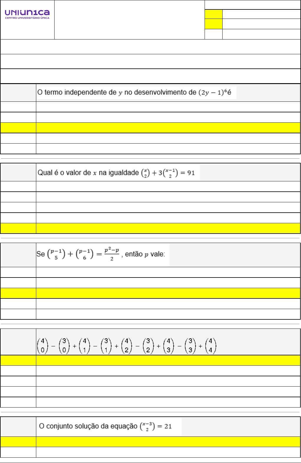 FUNDAMENTOS DA MATEMÁTICA [1186916] - Avaliação com 8 questões, com o peso total de 1,67 pontos [capítulos - 5]