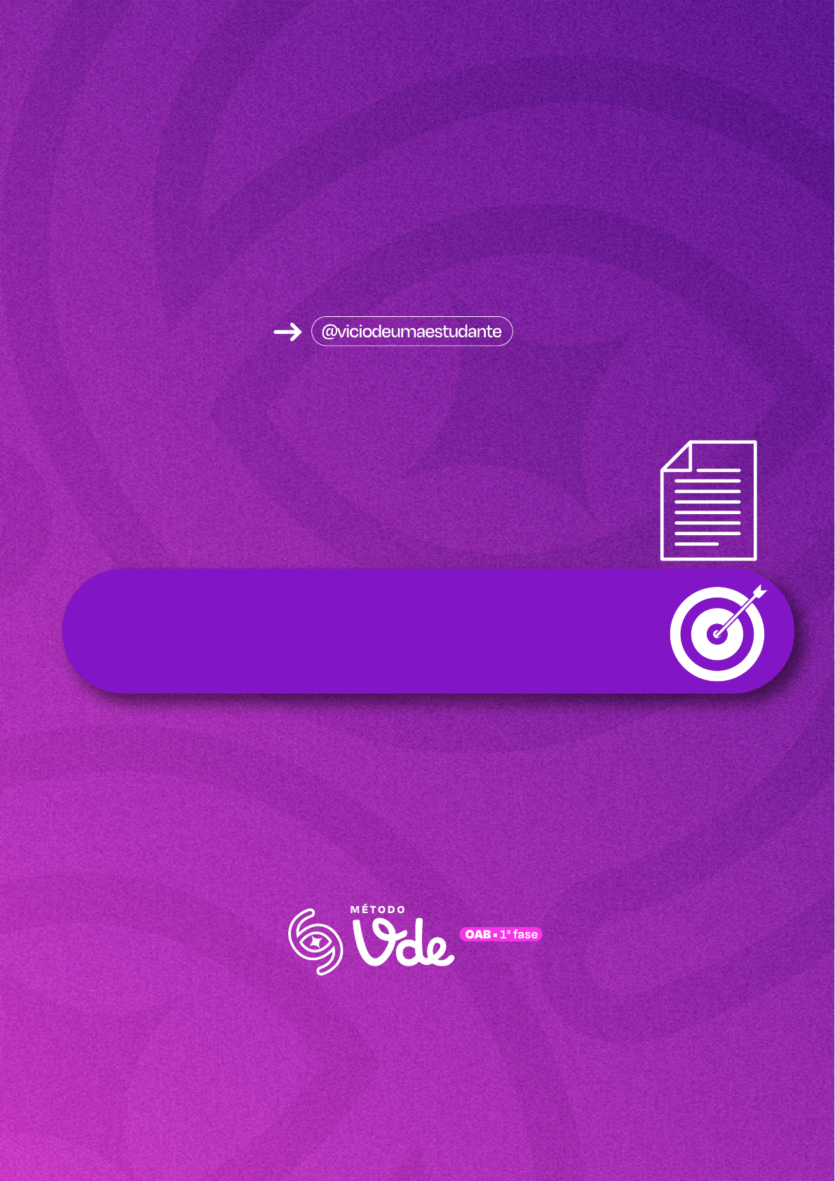 Semana01 RESUMO ESTRATÉGIC Nome: Weverton Leandro Santos Andrade , CPF: 10840395671 IP: 2804:14c:5b42:91f1:f462:c4bb:f244:c407, 172.70.144.11 Resumos - Método VDE 1ª fase OAB Atualizado para o 43º Exame de Ordem Ana Clara Fernandes@viciodeumaestudante Material de uso individual. Proibido o repasse! 1 SUMÁRIO CONSTITUCIONAL 2 TEORIA DA CONSTITUIÇÃO 2 DIREITOS E GARANTIAS FUNDAMENTAIS 6 CIVIL 13 PARTE GERAL: PESSOAS NATURAIS 13 PARTE GERAL: NEGÓCIO JURÍDICO 19 PROCESSO DO TRABALHO 27 COMPETÊNCIA 27 TRABALHO 29 CONTRATO DE TRABALHO 29 TRIBUTÁRIO 35 PRINCÍPIOS TRIBUTÁRIOS 35 ESTATUTO DA CRIANÇA E DO ADOLESCENTE 43 DIREITOS FUNDAMENTAIS 43 PENAL 46 EFICÁCIA DA LEI PENAL NO TEMPO E NO ESPAÇO 46 FATO TÍPICO 53 ÉTICA 64 ATIVIDADES DA ADVOCACIA E MANDATO JUDICIAL 64 INSCRIÇÃO NA OAB 68 Nome: Weverton Leandro Santos Andrade , CPF: 10840395671 IP: 2804:14c:5b42:91f1:f462:c4bb:f244:c407, 172.70.144.11 Resumos - Método VDE 1ª fase OAB Atualizado para o 43º Exame de Ordem Ana Clara Fernandes@viciodeumaestudante Material de uso individual. Proibido o repasse! 2 DIA 01 CONSTITUCIONAL TEORIA DA CONSTITUIÇÃO 1) PODER CONSTITUINTE: → PODER CONSTITUINTE ORIGINÁRIO: - É aquele que INSTAURA uma nova ordem jurídica. - É tido como inicial, autônomo, ilimitado e incondicionado. - Não guarda qualquer espécie de subordinação com o ordenamento jurídico anterior. - Implica na revogação de todas as normas jurídicas inseridas na Constituição anterior, ainda que compatíveis com a Constituição ora vigente. Porém, pode importar na RECEPÇÃO das normas infraconstitucionais anteriores à vigência da nova Constituição, desde que sejam materialmente compatíveis com ela, mediante o fundamento imediato de validade. ATENÇÃO!! As normas da CF decorrente do poder constituinte originário possuem presunção absoluta de constitucionalidade. Portanto, não podem ser alvo de ação de controle de constitucionalidade. Já as normas constitucionais decorrentes de emenda constitucional, podem ser ser objeto de controle, já que foram criadas pelo poder derivado reformador. → PODER CONSTITUINTE DERIVADO: - É aquele que REFORMA a Constituição Federal. - É tido como poder secundário, limitado e condicionado. Pode ser: a) DECORRENTE: *CAIU NA OAB 35* - Poder que cria e modifica a Constituição dos ESTADOS MEMBROS; - É um poder limitado e condicionado, pois deve observar as condições/limites impostos pelo poder constituinte originário. - O poder decorrente precisa ter cuidado com as normas de reprodução obrigatória, aquelas normas que estão inseridas compulsoriamente na Constituição dos Estados, como consequência a sua subordinação à Constituição Federal (princípio da simetria) (art. 25 CF) *CAIU NA OAB 27* b) REFORMADOR: - Aquele que ALTERA as normas da constituição federal, ou seja, criando as emendas à constituição, obedecendo ao procedimento das emendas constitucionais (art. 60 CF); - Limitações FORMAIS do Poder Reformador (procedimento): *CAIU NA OAB 37* → Iniciativa: A Constituição poderá ser emendada mediante proposta: ● De 1/3, no mínimo, dos membros da Câmara dos Deputados ou do Senado Federal; ● Do Presidente da República Nome: Weverton Leandro Santos Andrade , CPF: 10840395671 IP: 2804:14c:5b42:91f1:f462:c4bb:f244:c407, 172.70.144.11 Resumos - Método VDE 1ª fase OAB Atualizado para o 43º Exame de Ordem Ana Clara Fernandes@viciodeumaestudante Material de uso individual. Proibido o repasse! 3 ● De mais da metade das Assembleias Legislativas das unidades da Federação, manifestando-se, cada uma delas, pelamaioria relativa de seus membros. ATENÇÃO!! PEGADINHA DA BANCA: Observa-se que no procedimento de emendas constitucionais, o Presidente somente tem poder de INICIATIVA de projeto. Não tem poder de veto. O Presidente somente possui poder de veto no procedimento de criação de leis ordinárias e complementares. → Procedimento: 1) A proposta será discutida e votada em cada Casa do Congresso Nacional, em dois turnos, considerando-se aprovada se obtiver, em ambos, 3/5 dos votos dos respectivos membros 2) A emenda à Constituição será promulgada pelas Mesas da Câmara dos Deputados e do Senado Federal, com o respectivo número de ordem. (a sequência deve ser respeitada) 3) Matéria constante de proposta de emenda rejeitada ou havida por prejudicada não pode ser objeto de nova proposta na mesma sessão legislativa (ou seja, no mesmo ano). ATENÇÃO!! A emenda NÃO DEPENDE de sanção presidencial. *CAIU NA OAB 25* TABELA PARA DIFERENCIAÇÃO! POSSIBILIDADE DE REEDIÇÃO OU REAPRECIAÇÃO Projeto de emenda constitucional Projeto de lei Medida provisória Só pode ser analisada na PRÓXIMA sessão legislativa (art 60, § 5 CF) Pode ser analisada naMESMA sessão legislativa, desde que haja proposta da maioria absoluta dos membros de uma das casas do Congresso (art 67 CF). Só pode ser analisada na PRÓXIMA sessão legislativa. (art 62, § 10 CF) *guarda essa tabela que quando formos estudar o processo legislativo, ela ficará mais clara! - Limitações materiais do Poder Reformador (cláusulas pétreas): Não será objeto de deliberação a proposta de emenda tendente a abolir: ● a forma federativa de Estado: OBS: Forma Federativa se caracteriza pela descentralização no exercício do poder político, inviabilizando a existência de um poder central único, gerando, consequentemente, uma partição constitucional de competências. ● o voto direto, secreto, universal e periódico; *CAIU NA OAB 40* ATENÇÃO!! O voto obrigatório não é cláusula pétrea. Assim, o voto facultativo é possível no Brasil, através de uma emenda. *CAIU NA OAB 25* ● a separação dos Poderes; Nome: Weverton Leandro Santos Andrade , CPF: 10840395671 IP: 2804:14c:5b42:91f1:f462:c4bb:f244:c407, 172.70.144.11 Resumos - Método VDE 1ª fase OAB Atualizado para o 43º Exame de Ordem Ana Clara Fernandes@viciodeumaestudante Material de uso individual