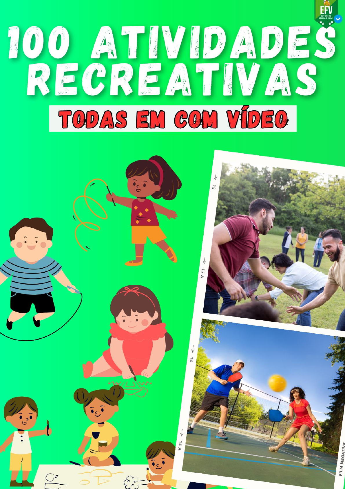 Instagram: @edfvida https://www.instagram.com/edfvida/ Instagram: @edfvida IMPORTANTE ESSE MATERIAL É PROTEGIDO COM DIREITOS AUTORAIS DE SEU CRIADOR Portanto, toda e qualquer divulgação, distribuição, plágio ou venda ilícita, tão logo seja descoberta via rastreamento digital, o responsável será penalizado nos termos do código civil e criminal pelo seu ato criminoso! Esse material foi elaborado pensando em ajudar você a ter um melhor aproveitamento e desenvolvimento em suas aulas, com atividades prontas e também passíveis para adaptações de acordo com a faixa etária e objetivos da aula. Todas as atividades aqui expostas são apenas sugestões para você aplicar em suas aulas, cabendo destacar que muitas delas não são de nossa autoria, somente as reunimos aqui para você. Assim, não nos responsabilizamos por qualquer erro de planejamento ou até nas aplicações das mesmas. Como foi citado, são apenas sugestões. Então, cabe a você, como profissional, escolher e aplicar as atividades de acordo com sua realidade e seu planejamento. Caso encontre algum erro seja na abordagem, algum conteúdo que julgue ser indevido e não deveria estar compondo esse conteúdo, erro de digitação ou qualquer outro assunto sobre este material, por favor, entre em contato conosco por meio do endereço eletrônico edfvida@gmail.com. Espero que nosso material engrandeça seu conhecimento, além de ser útil ao seu planejamento e que você o aproveite bem. Pois, são diversas atividades, de distintos conteúdos e deu muitoooooo trabalho! Att. organizadores! https://www.instagram.com/edfvida/ mailto:edfvida@gmail.com Instagram: @edfvida Sumário 1. TAPETE COORDENATIVO ................................................................................... 6 2. PULEEE ..................................................................................................................... 6 3. COLOCANDO NA CESTINHA .............................................................................. 6 4. EQUILIBRANDO O BASTÃO ................................................................................ 7 5. CUBRA E DESCUBRA ............................................................................................. 7 6. PEGA CONE .............................................................................................................. 8 7. EQUILIBRANDO A BOLA ..................................................................................... 8 8. SUSHIBALL EM GRUPO ........................................................................................ 8 9. PEGUE A BOLA ....................................................................................................... 9 10. EQUILÍBRIO NO BASTÃO ................................................................................. 9 11. GUERRA .............................................................................................................. 10 12. ATÉ ONDE VAI? ................................................................................................. 10 13. ENCHA SEU CESTO .......................................................................................... 11 14. CARREGUE O COPO ........................................................................................ 11 15. VOLTA NOS AMIGOS ....................................................................................... 12 16. MONTE SUA TORRE ........................................................................................ 12 17. BAMBOLÊ AO ALVO ........................................................................................ 13 18. BOLA E BASTÃO ............................................................................................... 13 19. ACERTE O ALVO .............................................................................................. 14 20. SALTO DIVERTIDO .......................................................................................... 14 21. AMARELINHA AFRICANA ............................................................................. 15 22. PASSANDO PELO BAMBOLÊ EQUILIBRISTA ........................................... 15 23. FOUR SQUARE ................................................................................................... 15 24. AGACHA E PASSA ............................................................................................. 16 25. GATO E RATO .................................................................................................... 17 26. PASSANDO A CAMISA ..................................................................................... 17 27. PASSANDO O BAMBOLÊ ................................................................................. 17 28. PUXA-PUXA ........................................................................................................ 18 29. PEGADINHA DO ANIMAL ............................................................................... 18 30. CARANGUEIJO .................................................................................................. 19 31. DERRUBA DENTRO .......................................................................................... 19 32. HANDHOCKEY .................................................................................................. 19 33. IMITANDO O PAPEL ........................................................................................ 20 34. ASSOPRA, ASSOPRA ........................................................................................ 20 https://www.instagram.com/edfvida/ Instagram: @edfvida 35. PULA E CONCLUA ............................................................................................ 21 36. DINÂMICA RODA GIGANTE .......................................................................... 21 37. TORRE DE COPOS FUNCIONAL ................................................................... 21 38. DESAFIO DO COPO ........................................................