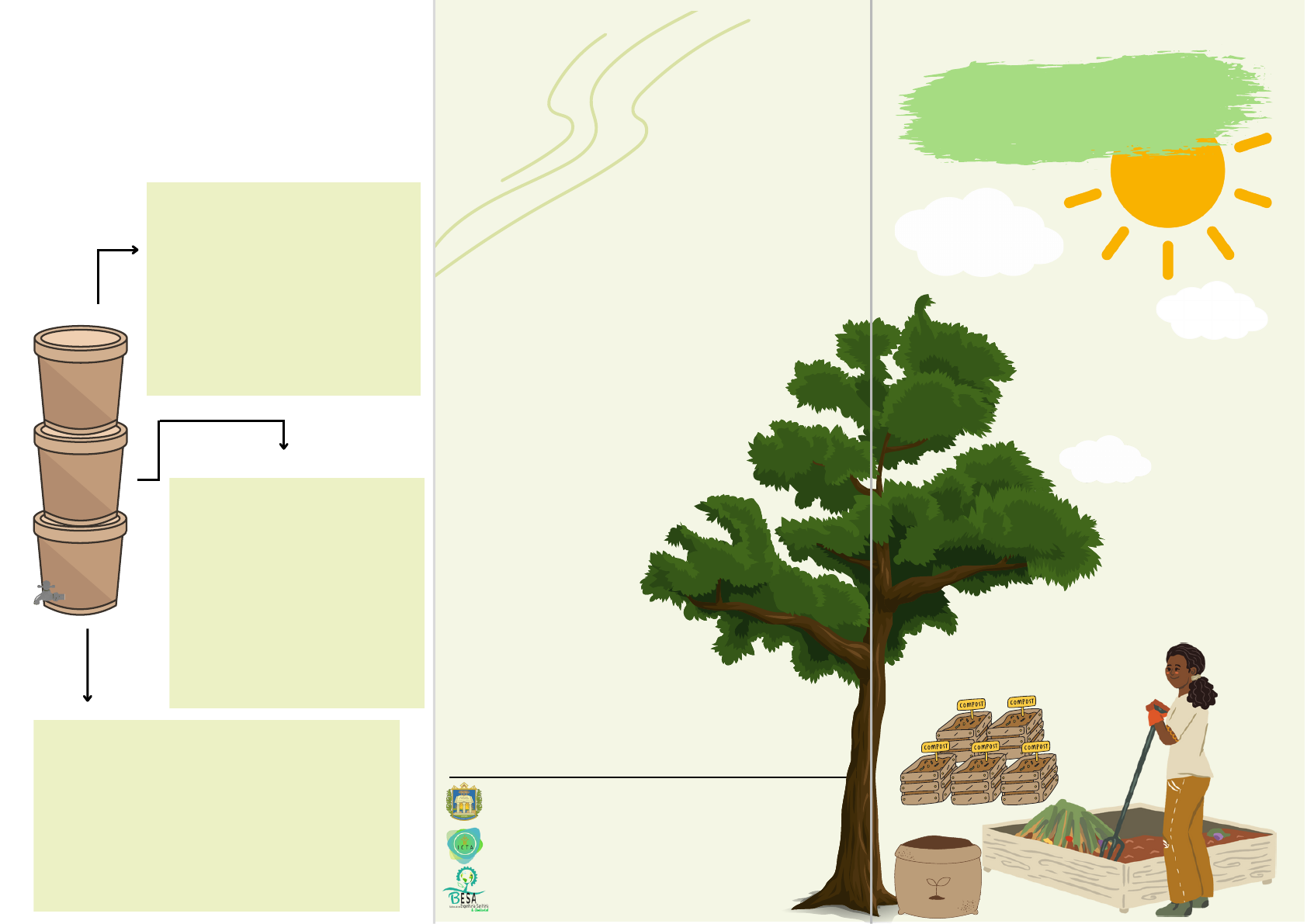 Terceiro Balde Fure o terceiro balde (como feito no segundo balde). Nele, os furos de baixo serão para a passagem das minhocas de um balde para o outro. Não será necessário furar a tampa, pois ela servirá para fechar a composteira. Segundo Balde Fure o fundo do balde (os furos servirão para a passagem do chorume) e faça alguns furos nas laterais da parte superior; Corte a tampa com o estilete, como fez na tampa do primeiro balde. Primeiro Balde Na lateral inferior do balde, faça um furo grande para inserir a torneira (ela servirá para retirar o chorume produzido na compostagem); Corte com o estilete a parte central da sua tampa, deixando uma borda de dois dedos (que vai dar apoio ao balde de cima). 3 2 1 Universidade Federal do Oeste do Pará Rua Vera Paz, S/N - Salé, 68040-255 Santarém, PA - Brasil Bacharelado em Engenharia Sanitária e Ambiental Compostagem Doméstica Como produzir minha composteira? Para a confecção da composteira, você vai produzi-la do último balde para o primeiro, ou seja, de baixo para cima. Siga o passo a passo abaixo, e se divirta! Autoria: Janaina dos Santos Mendes Você sabia? Grande parte dos resíduos orgânicos gerados em sua casa pode ser reaproveitado através da compostagem doméstica. O que é Compostagem? A compostagem, conhecida como o processo de reciclagem do resíduo orgânico, transforma a matéria orgânica encontrada no lixo em adubo natural, que pode ser usado na agricultura, em jardins e plantas, substituindo o uso de produtos químicos. Benefícios da Compostagem •Diminui a quantidade de resíduos enviado aos aterros; •Colabora com os ciclos da natureza e da renovação da vida; •Melhora a fertilidade do solo; •Aumenta a capacidade de absorção de água e de ar; •Fonte de renda; Quais matérias orgânicas posso colocar em minha composteira? •Casca de frutas não- cítricas; •Sobras de verduras e legumes; •Palhas e folhas secas; •Borra de café e os filtros de papel; •Casca de ovo; •Serragem; •Frutas cítricas; •Restos de carne, frango, e peixe; •Laticínios (leite, queijo manteiga, etc.) •Tecidos e tintas; •Medicamentos e produtos químicos; •Gordura, óleo e molhos; •Papel higiênico. Quais matérias orgânicas não posso colocar em minha composteira? •Reduz o uso de agrotóxicos e fertilizantes químicos; •Diminui a quantidade de lixo gerado. Ciclo do Composto Orgânico Pilha de compostagem Alimento Adubo Refeições Resto de alimento Nem todo Resíduo é Lixo! O lixo costuma ser lembrado como algo sujo, com mau cheiro e que não presta mais. Mas isso só é verdade se não cuidarmos bem dele. Os resíduos orgânicos recomendados para realizar o processo de compostagem doméstica são: Os resíduos orgânicos não recomendados para realizar o processo de compostagem doméstica são: Como posso fazer a Compostagem em minha residência? Para condução do processo de compostagem, você vai precisar de: •Três caixas plásticas com tampa; •Duas com pequenos furinhos na parte de baixo e uma com um furo redondo na lateral; •Lixo orgânico (como cascas de frutas e verduras, cascas de ovos, saquinhos de chá e borra de café); •Serragem; •Substrato para mudas; •Uma torneira de filtro. Fertilização