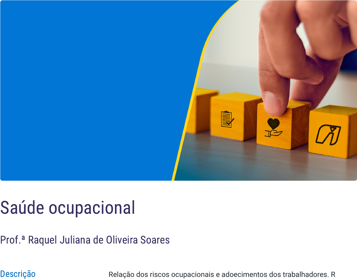 Saúde ocupacional Prof.ª Raquel Juliana de Oliveira Soares Descrição Relação dos riscos ocupacionais e adoecimentos dos trabalhadores. Riscos ocupacionais e ambientes saudáveis. Responsabilidade das empresas na preservação do meio ambiente e dos recursos naturais e contribuição na promoção da saúde da população. Promoção da saúde dos trabalhadores. Propósito Compreender de que forma a exposição a agentes de riscos ocupacionais pode gerar o adoecimento do trabalhador e analisar os procedimentos disponíveis para as empresas atuarem na prevenção do adoecimento e na promoção da saúde dos trabalhadores, bem como na preservação do meio ambiente. Objetivos Módulo 1 Riscos ocupacionais Relacionar os agentes de riscos ocupacionais e o adoecimento dos trabalhadores. Módulo 2 Prevenção e promoção da saúde Identificar o papel das empresas na prevenção do adoecimento e na promoção da saúde dos trabalhadores. Introdução A palavra trabalho tem origem no termo em latim tripalium, que foi um instrumento de tortura na antiguidade. Jeffrey Pfeffer, renomado professor de gestão de Stanford, escreveu recentemente este livro: Morrendo por um $alário: como as práticas modernas de gerenciamento prejudicam a saúde dos trabalhadores e o desempenho da empresa – e o que podemos fazer a respeito. O título da obra é enorme, bem como o problema discutido nela. O ambiente laboral não deve ser uma tortura para a saúde física e mental de seus trabalhadores. Por meio do trabalho, bens e serviços são feitos, geralmente, para facilitar e melhorar a vida das pessoas, portanto, servir por meio do trabalho é algo bom e significativo. Em resumo, trabalhar pode e deve ser algo bom tanto para quem trabalha quanto para quem recebe o produto oriundo do trabalho. Neste material, discutiremos a saúde ocupacional, assunto cada vez mais importante. Vamos abordar os riscos ocupacionais, bem como estudar formas de prevenção desses riscos e de promoção da saúde dos trabalhadores. Assim como trabalhar deve ser bom, estudar deve ser bom: desejamos um bom e proveitoso estudo nessa jornada no trabalho com saúde e significado! 1 - Riscos ocupacionais Ao �nal deste módulo, você será capaz de relacionar os agentes de riscos ocupacionais e o adoecimento dos trabalhadores. Riscos ocupacionais Você sabe o que é um risco ocupacional? O conceito, a explicação e exemplos de riscos ocupacionais Neste vídeo, você encontrará o conceito, explicação e exemplos de riscos ocupacionais. Os riscos ocupacionais existem nos ambientes de trabalho e, em função de sua natureza, concentração ou intensidade e tempo de exposição, são capazes de causar danos à saúde do trabalhador. São divididos em cinco grupos: Risco químico Consideram-se como agentes de risco químico as substâncias, compostos ou produtos que possam entrar no organismo do trabalhador, por diversas vias, ou ser absorvidos por ingestão oral nas formas de poeira, fumaça, neblina, gás, névoa ou vapor. Quando não controlados, esses agentes podem causar: alergia respiratória, alergia na pele, câncer, intoxicações, entre outros. Risco físico Consideram-se como agentes de risco físico as diversas formas de energia a que possam estar expostos os trabalhadores, como ruído, calor ou frio extremos, radiação ionizante e não ionizante e vibração. Esses agentes, quando não controlados, podem causar: câncer, surdez, desidratação, dor de cabeça, entre outros. Risco biológico Consideram-se como agentes de risco biológico todos os microrganismos, como bactérias, vírus, fungos, entre outros, e também os animais peçonhentos. Quando não controlados, esses agentes podem causar: tuberculose, intoxicação alimentar, hepatite, envenenamento, tétano etc. Risco de acidente Consideram-se como fatores de risco de acidentes os que colocam o trabalhador em situação de vulnerabilidade que possa afetar sua integridade física e seu bem-estar físico e psíquico como: máquinas e equipamentos sem proteção, arranjo físico inadequado, má iluminação do ambiente, piso escorregadio, manutenção em sinalização, entre outros. Essas situações podem causar quedas, fraturas, esmagamentos, amputações etc. Risco ergonômico e psicossocial Consideram-se como agentes de risco ergonômico e psicossocial os fatores que possam interferir nas características psicofisiológicas do trabalhador, causando desconforto ou afetando sua saúde. Entre outros exemplos, levantamento de peso excessivo ou de forma inapropriada; ritmo de trabalho acelerado, monótono ou repetitivo; postura inadequada; exigência para além das competências do trabalhador; cobranças excessivas pela chefia. Esses agentes, quando não controlados, podem causar: tendinite, bursite, hérnia de disco, dores nas pernas, dores musculares ou articulares, sofrimento mental, depressão, ansiedade, desmotivação etc. Por que conhecer os riscos ocupacionais? Conhecer os riscos ocupacionais é fundamental para que as empresas possam manter os ambientes seguros mediante a antecipação, o reconhecimento, a avaliação e o controle da ocorrência dos fatores/agentes de riscos, levando em consideração a proteção do meio ambiente. A Consolidação das Leis do Trabalho (CLT) exige ambientes de trabalho seguros, tornando obrigatórias, para as empresas, a adoção de medidas de segurança e a observação de suas regras, tais como: Respeito às normas Cumprir e fazer cumprir as normas de segurança e medicina do trabalho. Instrução de funcionários Instruir os empregados, por meio de ordens de serviço, quanto às precauções a tomar para prevenir acidentes ou doenças ocupacionais. Adoção de medidas Adotar as medidas determinadas pelo órgão regional competente. É direito do trabalhador exercer atividades laborais em um ambiente seguro, cujos riscos ocupacionais não o prejudiquem. Cabe ao empregador cuidar dos agentes de riscos, embora o trabalhador t