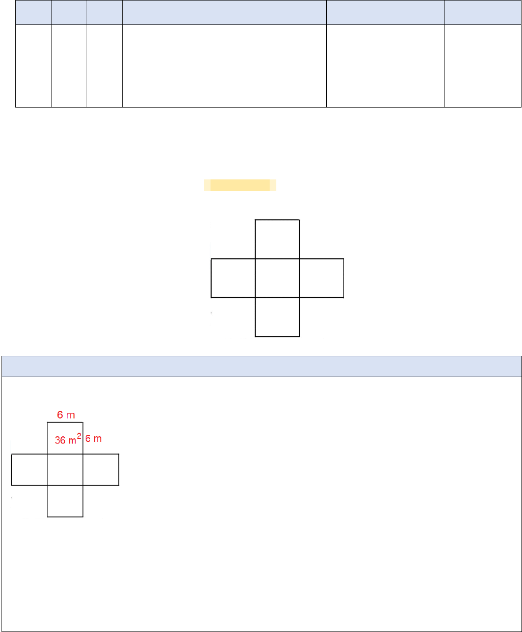 ITEM GAB BIM HABILIDADE DO CURRICULO DESCRITOR DO ITEM CONTEÚDO 1 B 3º (EF06MA29) Analisar e descrever mudanças que ocorrem no perímetro e na área de um quadrado ao se ampliarem ou reduzirem, igualmente, as medidas de seus lados, para compreender que o perímetro é proporcional à medida do lado, o que não ocorre com a área. Calcular o perímetro e a área do quadrado. Área e perímetro do quadrado. QUESTÃO 01 (SARESP-2008) A figura abaixo representa o salão de festa de um clube formada por quadrados de lados iguais a 6 m. Para reformar esse espaço, o orçamento do trabalho de um pedreiro depende do valor do perímetro e da área do salão. Assinale a alternativa que mostra corretamente e, nesta ordem, as medidas do perímetro, em metros, e da área, em metros quadrados. A) 36 e 180 B) 72 e 180 C) 48 e 30 D) 72 e 36 Fonte: Elaborado para fins didáticos Referência do item 8º Ano do EF – Aula 1 de Matemática: Como calcular a área e o perímetro do quadrado? Parte 1 Comentário do Item O item afere se o estudante é capaz de calcular o perímetro e a área de uma figura formada por quadrados. Para isso, o estudante poderá usar estratégias como: A figura possui 12 lados e forma 5 quadrados de mesma área. Perímetro: 6 𝑚 ∙ 12 𝑙𝑎𝑑𝑜𝑠 = 72 𝑚 Área de um quadrado 6𝑚 × 6𝑚 = 36 𝑚2 ∙ Área total: 5 á𝑟𝑒𝑎𝑠 × 36𝑚² = 180 𝑚2. A resposta correta é a alternativa B.