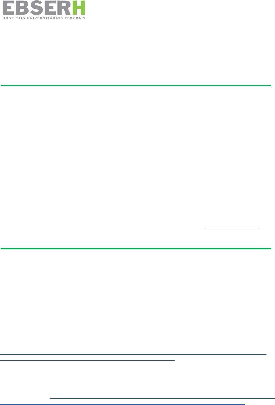 EMPRESA BRASILEIRA DE SERVIÇOS HOSPITALARES CONCURSO PÚBLICO PARA VAGAS E FORMAÇÃO DE CADASTRO RESERVA HOSPITAIS UNIVERSITÁRIOS DA REDE EBSERH CONCURSO PÚBLICO 01/2024 – EBSERH/NACIONAL Página 1 | 30 EDITAL Nº 04 – EBSERH/NACIONAL – ÁREA ADMINISTRATIVA, DE 18 DE DEZEMBRO DE 2024 (Retificado em 23/12/2024) O PRESIDENTE DA EMPRESA BRASILEIRA DE SERVIÇOS HOSPITALARES – EBSERH, no uso de suas atribuições legais, e tendo em vista o disposto na Lei nº 12.550, de 15 de dezembro de 2011, torna pública a realização de Concurso Público para provimento de vagas e formação de cadastro de reserva para cargos de NÍVEL MÉDIO/TÉCNICO e SUPERIOR da ÁREA ADMINISTRATIVA, com lotação nas Unidades da Rede Ebserh, mediante as condições estabelecidas neste Edital e seus anexos. 1. DAS DISPOSIÇÕES PRELIMINARES 1.1. O Concurso Público será regido por este Edital, por seus anexos, avisos, atos complementares e eventuais retificações, com execução de responsabilidade da Fundação Getúlio Vargas - FGV. 1.2. Este Concurso Público destina-se a selecionar candidato(a)s para o preenchimento de vagas e para a formação de cadastro de reserva para cargos de Nível Médio/Técnico e Superior da Área Administrativa, com lotação nas unidades da Rede Ebserh. 1.3. O prazo de validade do presente Concurso Público é de 1 (um) ano, a contar da data da publicação da homologação do resultado final, podendo ser prorrogado, uma única vez, por igual período. 1.4. Fazem parte deste Edital os seguintes Anexos: Anexo I - Cronograma Previsto; Anexo II - Quadro de Vagas e Formação de cadastro de reserva; Anexo III - Requisitos dos Cargos, Salário e Carga Horária Semanal; Anexo IV - Requerimento de Atendimento Especial; Anexo V - Modelo de Atestado para Perícia Médica e Parecer de Equipe Multiprofissional - Pessoas com Deficiência; Anexo VI - Modelo de Atestado para Comprovação de Experiência Profissional - Prova de Títulos; Anexo VII - Conteúdos Programáticos; Anexo VIII - Termo de Desistência Definitiva; Anexo IX – Termo de Solicitação de Final de Fila (somente para vagas efetivas); Anexo X – Ordem de convocação. 1.5. Qualquer cidadão é parte legítima para impugnar o Edital, devendo encaminhar e-mail para concursoebserh24@fgv.br em até 2 (dois) dias úteis, contados da data de publicação do Edital. Após essa data, o prazo estará precluso. 2. DOS CARGOS E VAGAS 2.1. O Concurso de que trata este Edital oferece um total de 17 (dezessete) vagas, distribuídas por cargos conforme Anexo II. 2.1.1. Aos(Às) candidato(a)s Indígenas é assegurado o percentual de 3% (três por cento) das vagas existentes ou das que vierem a surgir no prazo de validade deste Concurso Público. 2.1.2. Aos(Às) candidatos(as) com Deficiência é assegurado o percentual de 10% (dez por cento) das vagas existentes ou das que vierem a surgir no prazo de validade deste Concurso Público. 2.1.3. Aos(Às) candidato(a)s Negro(a)s é assegurado o percentual de 20% (vinte por cento) das vagas existentes ou das que vierem a surgir no prazo de validade deste Concurso Público. 2.1.4. As vagas imediatas para cotistas foram distribuídas conforme prevalência definida em sorteio, realizado durante sessão pública precedente à publicação deste Edital. 2.1.4.1. A sessão pública foi transmitida ao vivo, gravada e toda documentação referente ao sorteio está disponível em https://www.gov.br/ebserh/pt-br/acesso-a-informacao/agentes-publicos/concursos-e-selecoes/concursos/2024/sessao-publica- para-a-realizacao-de-sorteio-de-vagas-reservadas-para-pcd-e-pnp-concurso-01-2024. 2.2. Os requisitos dos cargos, os salários e a carga horária semanal dos cargos ofertados no presente concurso são os relacionados no Anexos III deste Edital. 2.3. A descrição sumária das atribuições dos cargos está disponível no endereço eletrônico da Empresa Brasileira de Serviços Hospitalares – Ebserh: https://www.gov.br/ebserh/pt-br/acesso-a-informacao/agentes-publicos/legislacao-e-normas-de-gestao-de- pessoas/carreira/descricao-sumaria-das-atribuicoes-dos-cargos-efetivos-em-comissao-e-funcoes-gratificadas.pdf/view EMPRESA BRASILEIRA DE SERVIÇOS HOSPITALARES CONCURSO PÚBLICO PARA VAGAS E FORMAÇÃO DE CADASTRO RESERVA HOSPITAIS UNIVERSITÁRIOS DA REDE EBSERH CONCURSO PÚBLICO 01/2024 – EBSERH/NACIONAL Página 2 | 30 2.4. O(A)s candidato(a)s que ingressarem no quadro de pessoal da Ebserh serão regidos pela Consolidação das Leis do Trabalho (CLT) e pelas demais regras previstas na legislação aplicável, e estarão submetidos(as) aos normativos internos vigentes na data da contratação. 2.5. As Unidades e Macrorregiões da Rede Ebserh em que o(a)s candidato(a)s aprovado(a)s poderão ser lotado(a)s constam do quadro a seguir: MR UF Cidade Unidade da Rede Ebserh Nome da Unidade da Rede Ebserh 1 AP Macapá HU-UNIFAP Hospital Universtário da Universidade Federal do Amapá (HU-UNIFAP) RR Boa Vista HU-UFRR Hospital Universitário da Universidade Federal de Roraima (HU-UFRR) AM Manaus HUGV-UFAM Hospital Universitário Getúlio Vargas da Universidade Federal do Amazonas (HUGV-UFAM) MA São Luiz HU-UFMA Hospital Universitário da Universidade Federal do Maranhão (HU-UFMA) PA Belém CHU-UFPA Complexo Hospitalar Universitário da Universidade Federal do Pará (CHU-UFPA) PI Teresina HU-UFPI Hospital Universitário da Universidade Federal do Piauí (HU-UFPI) 2 CE Fortaleza CH-UFC Complexo Hospitalar da Universidade Federal do Ceará (CH-UFC) PB Cajazeiras HUJB-UFCG Hospital Universitário Júlio Bandeira da Universidade Federal de Campina Grande (HUJB- UFCG) PB Campina Grande HUAC-UFCG Hospital Universitário Alcides Carneiro da Universidade Federal de Campina Grande (HUAC- UFCG) PB João Pessoa HULW-UFPB Hospital Universitário Lauro Wanderley da Universidade Federal da Paraíba (HULW-UFPB) RN Natal HUOL-UFRN Hospital Universitário Onofre Lopes da Universidade Federal do Rio Grande do Norte (HUOL- UFRN) 