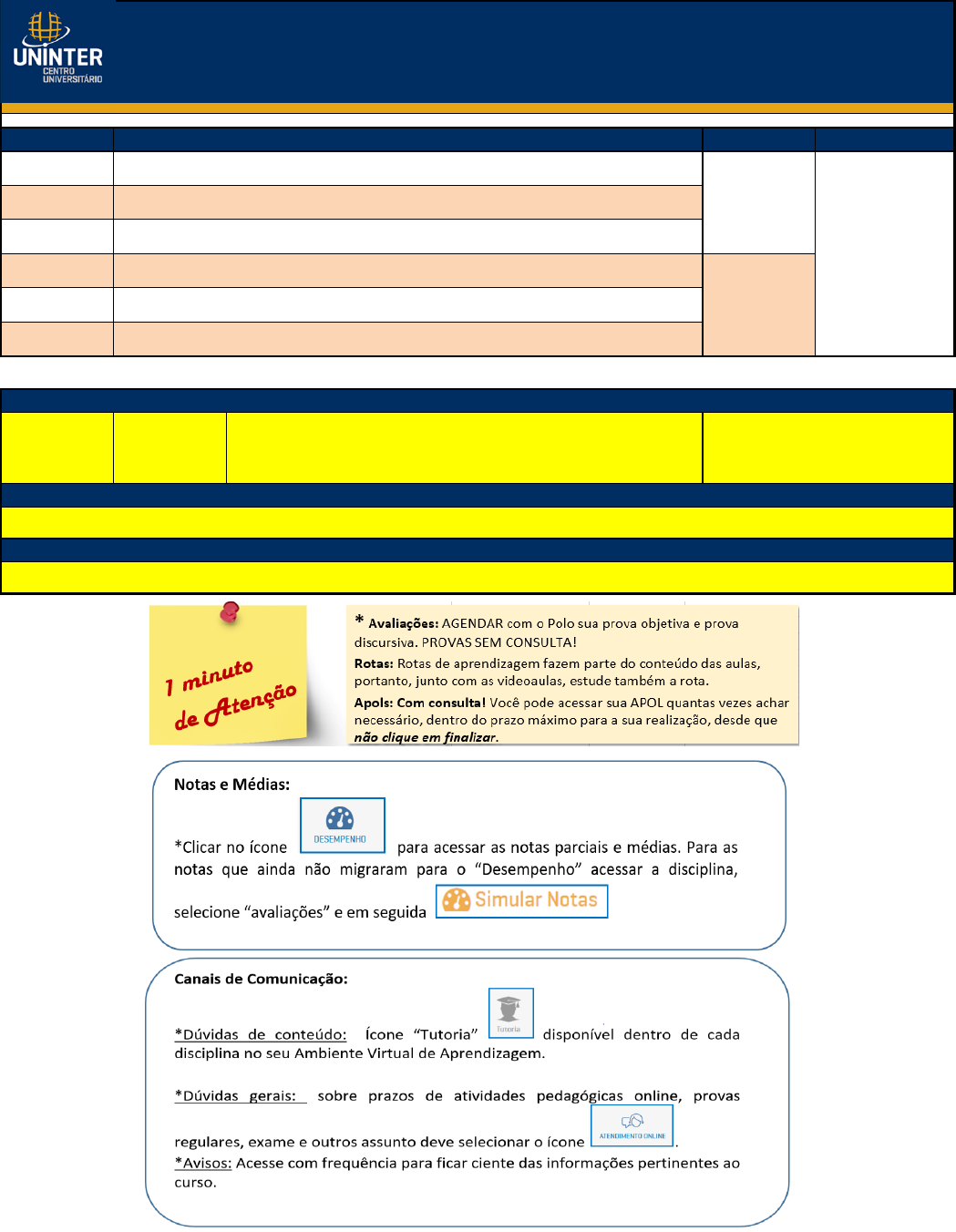 <p>SEMANA APOL ATIVIDADE PRÁTICA</p><p>1ª semana APOL 1</p><p>7ª, 8ª e 9ª</p><p>Verificar Calendário</p><p>Acadêmico e/ou</p><p>Avisos</p><p>Estudar todos os materiais indicados acima</p><p>Bons Estudos</p><p>Atenciosamente</p><p>Coordenação e Tutoria</p><p>Conforme Calendário</p><p>Acadêmico</p><p>APOL 2</p><p>(*) Para ampliar seu conhecimento, assista as Aulas Práticas disponíveis no seu AVA.</p><p>AULA 5 - Assistir a video aula 5 - Ler o texto da rota de aprendizagem. Assistir à Aula Prática sobre o tema teórico (*)</p><p>AULA 6 - Assistir a video aula 6 - Ler o texto da rota de aprendizagem. Assistir à Aula Prática sobre o tema teórico (*)</p><p>Segunda Chamada, Substitutiva, Exames e Recuperação de Conceito Pago(RCP) - Consulte o Atendimento Online</p><p>Leander Cordeiro de Oliveira, Dr.</p><p>AVALIAÇÕES REGULARES</p><p>* Provas Objetivas, Provas Discursivas</p><p>AVALIAÇÕES DE RECUPERAÇÃO</p><p>2ª semana</p><p>Softwares necessários para realização das provas</p><p>Esta disciplina não precisa de Software para realização das provas</p><p>6ª semana</p><p>3ª semana</p><p>4ª semana</p><p>5ª semana</p><p>Verificar</p><p>Avaliações/Trabalhos e</p><p>Calendário Acadêmico</p><p>Conforme Calendário</p><p>Acadêmico</p><p>CRONOGRAMA SEMANAL</p><p>Disciplina: Legislação, Ética e Conformidade</p><p>O QUE ESTUDAR</p><p>AULA 1 - Assistir a video aula 1 - Ler o texto da rota de aprendizagem. Assistir à Aula Prática sobre o tema teórico (*)</p><p>AULA 2 - Assistir a video aula 2 - Ler o texto da rota de aprendizagem. Assistir à Aula Prática sobre o tema teórico (*)</p><p>AULA 3 - Assistir a video aula 3 - Ler o texto da rota de aprendizagem. Assistir à Aula Prática sobre o tema teórico (*)</p><p>AULA 4 - Assistir a video aula 4 - Ler o texto da rota de aprendizagem. Assistir à Aula Prática sobre o tema teórico (*)</p>