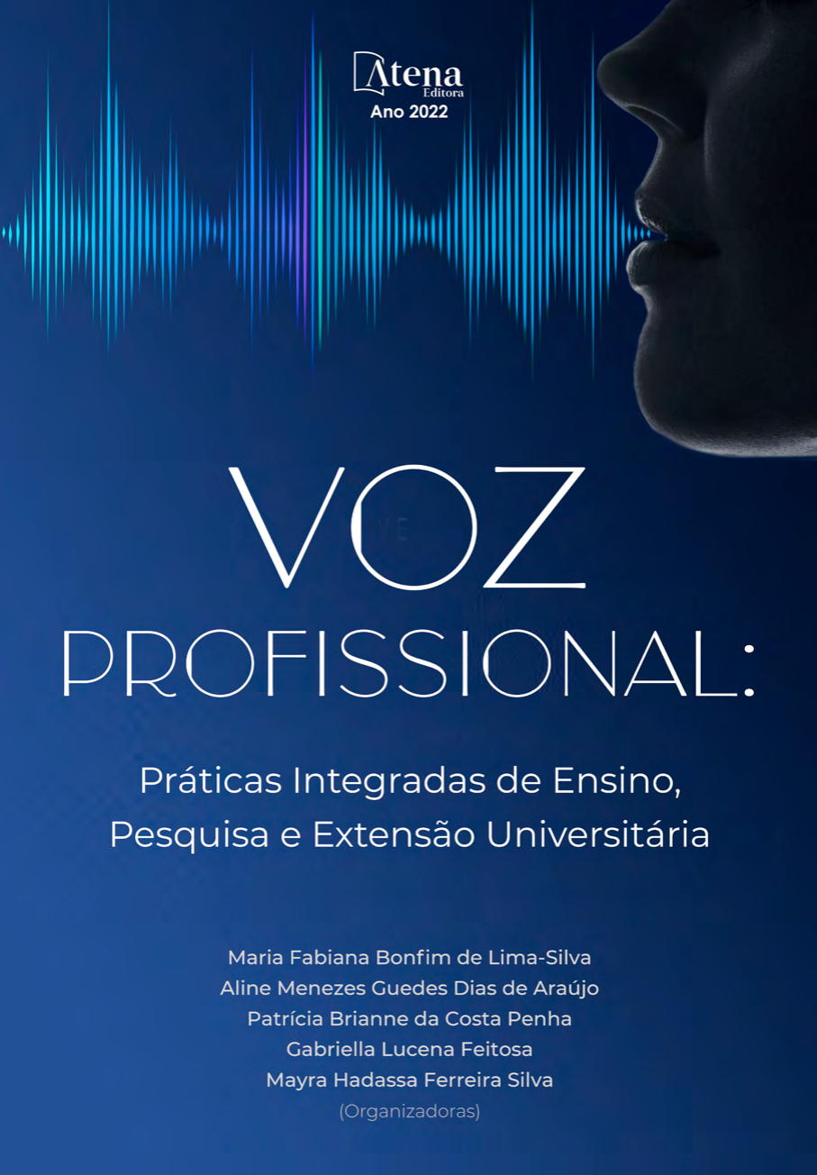 Editora chefe Profª Drª Antonella Carvalho de Oliveira Editora executiva Natalia Oliveira Assistente editorial Flávia Roberta Barão Bibliotecária Janaina Ramos Projeto gráfico Bruno Oliveira Camila Alves de Cremo Daphynny Pamplona Luiza Alves Batista Natália Sandrini de Azevedo Imagens da capa iStock Edição de arte Luiza Alves Batista 2022 by Atena Editora Copyright © Atena Editora Copyright do texto © 2022 Os autores Copyright da edição © 2022 Atena Editora Direitos para esta edição cedidos à Atena Editora pelos autores. Open access publication by Atena Editora Todo o conteúdo deste livro está licenciado sob uma Licença de Atribuição Creative Commons. Atribuição-Não-Comercial-NãoDerivativos 4.0 Internacional (CC BY-NC-ND 4.0). O conteúdo dos artigos e seus dados em sua forma, correção e confiabilidade são de responsabilidade exclusiva dos autores, inclusive não representam necessariamente a posição oficial da Atena Editora. Permitido o download da obra e o compartilhamento desde que sejam atribuídos créditos aos autores, mas sem a possibilidade de alterá-la de nenhuma forma ou utilizá-la para fins comerciais. Todos os manuscritos foram previamente submetidos à avaliação cega pelos pares, membros do Conselho Editorial desta Editora, tendo sido aprovados para a publicação com base em critérios de neutralidade e imparcialidade acadêmica. A Atena Editora é comprometida em garantir a integridade editorial em todas as etapas do processo de publicação, evitando plágio, dados ou resultados fraudulentos e impedindo que interesses financeiros comprometam os padrões éticos da publicação. Situações suspeitas de má conduta científica serão investigadas sob o mais alto padrão de rigor acadêmico e ético. Conselho Editorial Linguística, Letras e Artes Profª Drª Adriana Demite Stephani – Universidade Federal do Tocantins Prof. Dr. Alex Luis dos Santos – Universidade Federal de Minas Gerais Profª Drª Angeli Rose do Nascimento – Universidade Federal do Estado do Rio de Janeiro Profª Drª Carolina Fernandes da Silva Mandaji – Universidade Tecnológica Federal do Paraná Profª Drª Denise Rocha – Universidade Federal do Ceará Profª Drª Edna Alencar da Silva Rivera – Instituto Federal de São Paulo https://www.edocbrasil.com.br/ http://buscatextual.cnpq.br/buscatextual/visualizacv.do?id=K4730619E0 http://buscatextual.cnpq.br/buscatextual/visualizacv.do?id=K4433110T6 http://buscatextual.cnpq.br/buscatextual/visualizacv.do?id=K4703046Z8 http://buscatextual.cnpq.br/buscatextual/visualizacv.do?id=K4751950T8 http://buscatextual.cnpq.br/buscatextual/visualizacv.do?id=K4272309Z6 http://buscatextual.cnpq.br/buscatextual/visualizacv.do?id=K4259265T5 Profª DrªFernanda Tonelli – Instituto Federal de São Paulo, Prof. Dr. Gilmei Fleck – Universidade Estadual do Oeste do Paraná Profª Drª Keyla Christina Almeida Portela – Instituto Federal de Educação, Ciência e Tecnologia do Paraná Profª Drª Miranilde Oliveira Neves – Instituto de Educação, Ciência e Tecnologia do Pará Profª Drª Sandra Regina Gardacho Pietrobon – Universidade Estadual do Centro-Oeste Profª Drª Sheila Marta Carregosa Rocha – Universidade do Estado da Bahia http://buscatextual.cnpq.br/buscatextual/visualizacv.do?id=K4269841A7 http://buscatextual.cnpq.br/buscatextual/visualizacv.do?id=K4774983D5 http://buscatextual.cnpq.br/buscatextual/visualizacv.do?id=K4537843A7 http://buscatextual.cnpq.br/buscatextual/visualizacv.do?id=K4217820D9 http://buscatextual.cnpq.br/buscatextual/visualizacv.do?id=K4770908P1 http://buscatextual.cnpq.br/buscatextual/visualizacv.do?id=K4544802Z1 Voz profissional: práticas integradas de ensino, pesquisa e extensão universitária Diagramação: Correção: Indexação: Revisão: Organizadoras: Daphynny Pamplona Flávia Roberta Barão Amanda Kelly da Costa Veiga Os autores Maria Fabiana Bonfim de Lima-Silva Aline Menezes Guedes Dias de Araújo Patrícia Brianne da Costa Penha Gabriella Lucena Feitosa Mayra Hadassa Ferreira Silva Dados Internacionais de Catalogação na Publicação (CIP) V977 Voz profissional: práticas integradas de ensino, pesquisa e extensão universitária / Organizadoras Maria Fabiana Bonfim de Lima-Silva, Aline Menezes Guedes Dias de Araújo, Patrícia Brianne da Costa Penha, et al. – Ponta Grossa - PR: Atena, 2022. Outras organizadoras Gabriella Lucena Feitosa Mayra Hadassa Ferreira Silva Formato: PDF Requisitos de sistema: Adobe Acrobat Reader Modo de acesso: World Wide Web Inclui bibliografia ISBN 978-65-258-0426-2 DOI: https://doi.org/10.22533/at.ed.262221108 1. Ensino superior. I. Lima-Silva, Maria Fabiana Bonfim de (Organizadora). II. Araújo, Aline Menezes Guedes Dias de (Organizadora). III. Penha, Patrícia Brianne da Costa (Organizadora). IV. Título. CDD 378 Elaborado por Bibliotecária Janaina Ramos – CRB-8/9166 Atena Editora Ponta Grossa – Paraná – Brasil Telefone: +55 (42) 3323-5493 www.atenaeditora.com.br contato@atenaeditora.com.br http://www.atenaeditora.com.br/ DECLARAÇÃO DOS AUTORES Os autores desta obra: 1. Atestam não possuir qualquer interesse comercial que constitua um conflito de interesses em relação ao artigo científico publicado; 2. Declaram que participaram ativamente da construção dos respectivos manuscritos, preferencialmente na: a) Concepção do estudo, e/ou aquisição de dados, e/ou análise e interpretação de dados; b) Elaboração do artigo ou revisão com vistas a tornar o material intelectualmente relevante; c) Aprovação final do manuscrito para submissão.; 3. Certificam que os artigos científicos publicados estão completamente isentos de dados e/ou resultados fraudulentos; 4. Confirmam a citação e a referência correta de todos os dados e de interpretações de dados de outras pesquisas; 5. Reconhecem terem informado todas as fontes de financiamento recebidas para a consecução da pesquisa; 6. Autorizam a edição da obra, que incluem o