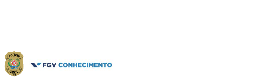 1 1 Polícia Civil do Estado de Minas Gerais Academia de Polícia Civil Divisão de Recrutamento e Seleção Edital nº 02/2024 de Concurso Público de Provas e Títulos para o cargo de MÉDICO LEGISTA, integrante da série inicial da carreira, do Quadro de Pessoal da Polícia Civil do Estado de Minas Gerais. A Presidente da Comissão do Concurso, devidamente autorizada pela Chefe da Polícia Civil, com fulcro na autorização governamental constante no Of. Cofin n.º 0029/2024 torna público, pelo presente Edital, que estarão abertas, no período de 21 (vinte e um) de outubro de 2024 a 19 (dezenove) de novembro de 2024, as inscrições para o Concurso Público visando o provimento de 10 (dez) vagas para o cargo de Médico Legista, a que se refere o art. 76 e Anexo I, I.2, da Lei Complementar nº 129, de 08 de novembro de 2013 – Lei Orgânica da Polícia Civil do Estado de Minas Gerais, para o exercício das funções nas Unidades Policiais da Polícia Civil do Estado de Minas Gerais. 1 DISPOSIÇÕES PRELIMINARES 1.1 O Concurso Público será regido por este Edital, por seus Anexos, eventuais retificações e pelos diplomas legais e regulamentares. E sua execução caberá à FGV – Fundação Getulio Vargas e ACADEPOL - Academia de Polícia Civil de Minas Gerais. 1.2 O candidato, ao efetuar sua inscrição neste Concurso Público, autoriza que a ACADEPOL e a FGV disponham de seus dados pessoais e dados pessoais sensíveis, para finalidade específica, em conformidade com a Lei nº 13.709/2018 – Lei Geral de Proteção de Dados Pessoais (LGPD) e suas alterações. 1.2.1 No momento da inscrição, o candidato deverá assinalar a concordância com os termos que constam neste Edital, bem como declarar que aceita que os seus dados pessoais e dados pessoais sensíveis, incluindo-se publicação em jornais, divulgação de material através de e-mail e redes sociais, imagens expostas em redes sociais públicas, sejam tratados e processados de forma a possibilitar a efetiva execução do Concurso Público, com a aplicação dos critérios de avaliação e seleção, autorizando expressamente a divulgação de seu nome, data de nascimento, número de inscrição e notas, em observância aos princípios de publicidade e transparência que regem a Administração Pública e nos termos do Decreto 48.237, de 22 de julho de 2021 (dispõe sobre a aplicação da Lei Federal nº 13.709, de 14 de agosto de 2018, Lei Geral de Proteção de Dados Pessoais – LGPD, no âmbito da Administração Pública Direta e Indireta do Poder Executivo). 1.3 A participação do candidato implicará a aceitação das normas e condições para este Concurso Público, constantes do presente Edital, dos comunicados, retificações e alterações a ele referentes. 1.4. É de inteira responsabilidade do candidato acompanhar, no jornal Diário Oficial de Minas Gerais e nos endereços eletrônicos da ACADEPOL e da FGV a publicação e divulgação dos atos, editais e comunicados referentes a este Concurso Público. Os atos, editais e comunicados inerentes a este Concurso Público serão, também, disponibilizados no Quadro de Avisos disposto no hall principal da sede da ACADEPOL, localizada na Rua Oscar Negrão de Lima, 200, bairro Nova http://www.acadepol.policiacivil.mg.gov.br/ https://conhecimento.fgv.br/concursos/pcmg24 2 2 Gameleira - Belo Horizonte. 1.4.1 A ACADEPOL e a FGV prestarão informações e esclarecimentos ao candidato através dos seguintes meios: FGV - Telefones: 0800 2834628, dias úteis, das 9h às 12h e das 13h às 17h. E-mail: concursopcmg24@fgv.br . ACADEPOL - Telefones: (31)3314-5656/3314-5625, dias úteis, das 9h às 12h e das 13h às 17h. Local: Rua Oscar Negrão de Lima, 200 – 3º andar, bairro Nova Gameleira - BH/MG. Horário de funcionamento: dias úteis, das 9h às 12h e das 13h às 17h. Endereço eletrônico ACADEPOL: . 1.4.2 Para as etapas previstas neste edital que envolvem o envio de documentos digitalizados, estes deverão estar legíveis, sob pena de serem considerados inválidos para fins de análise. 1.4.3 Somente serão aceitos para upload, documentos nas extensões “JPG”, “PNG” ou “PDF”, no tamanho máximo de 5MB, por documento, enviados por meio de link disponibilizado no endereço eletrônico da FGV ou da ACADEPOL . 1.4.4 Não serão aceitos documentos encaminhados via postal, correio eletrônico ou por requerimento administrativo. 1.4.5 Os documentos que não forem relativos à etapa indicada serão desconsiderados para fins de análise. 1.5 Requisitos de Investidura: O candidato aprovado neste Concurso Público será investido no cargo de Médico Legista se atendidas, cumulativamente, as seguintes exigências: a) Ter sido aprovado, classificado, em ordem decrescente de pontuação, e nomeado na forma estabelecida neste Edital. b) Ter idade mínima de 18 (dezoito) anos completos na data da posse. c) Ser brasileiro nato, naturalizado ou, em caso de nacionalidade portuguesa, estar amparado pelo Estatuto da Igualdade entre Brasileiros e Portugueses, com reconhecimento de gozo de direitos políticos, nos termos do artigo 12, §1º, da Constituição Federal. d) Estar em dia com as obrigações eleitorais e, em caso de candidato do sexo masculino, também, com as militares. e) Estar em pleno exercício de seus direitos civis e políticos. f) Possuir nível superior correspondente a graduação em Medicina, de acordo com o artigo 10 da Lei Complementar nº 84/2005, alterado pelo artigo 1º da Lei Complementar 113/2010, a ser comprovada mediante a entrega de cópia do diploma e apresentação do original de diploma ou de Certidão expedida por Faculdade reconhecida pelo Ministério da Educação, na data da posse. 1.5.1 O candidato aprovado no certame que, na data da posse, não comprovar os requisitos exigidos neste Edital perderá o direito à investidura no cargo. 1.6 Descrição sumária das atividades: ao Médico Legista na qualidade de servidor policial, incumbe, co