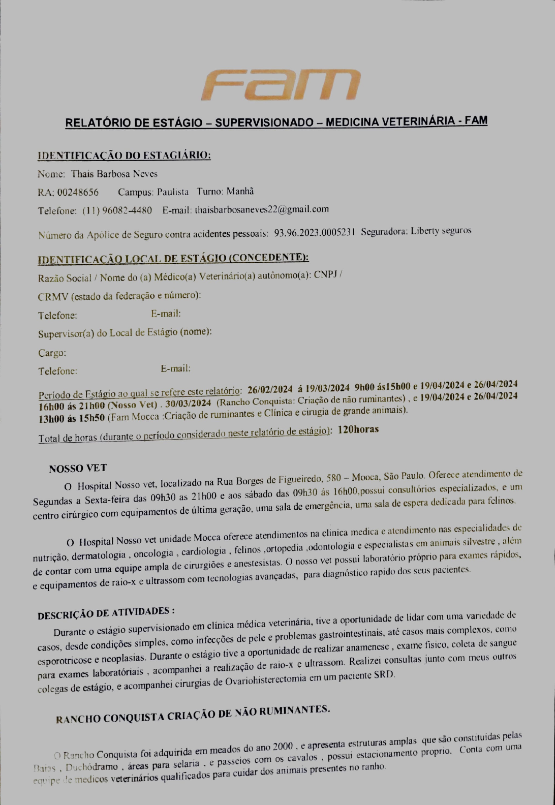RELATÓRIO DE ESTÁGIO - SUPERVISIONADO - MEDICINA VETERINÁRIA - FAM
