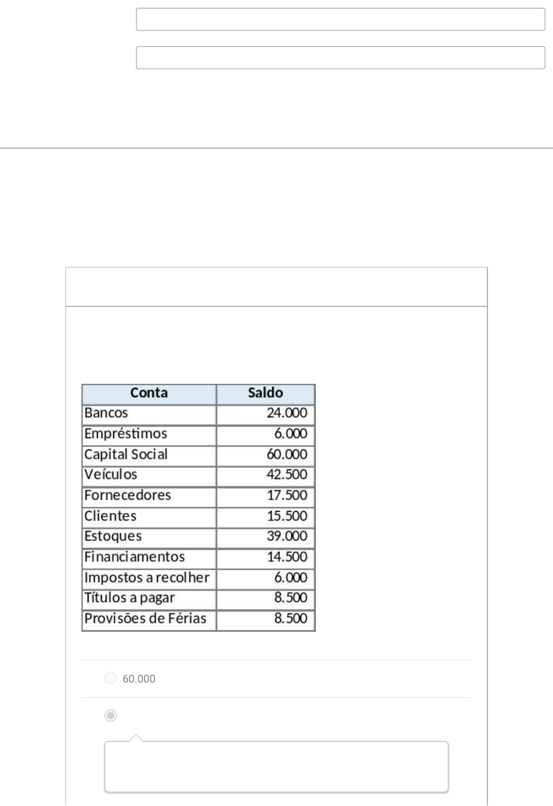 Seu Progresso: 100 % Seu Progresso: 100 % Prova Eletrônica Resultados para CLAUDIO GARCIA FILHO As respostas serão mostradas após a última tentativa Pontuação desta tentativa: 30 de 30 Enviado 20 set em 23:25 Esta tentativa levou 37 minutos. 3 / 3 ptsPergunta 1 Analise o Balancete de Verificação da Cia Moreno S.A e identifique a alternativa que aponta corretamente o saldo de capital de terceiros: 60.000 61.000 Capital de terceiros: 6.000+17.500+14.500+6.000+8.500+8.500 = 61.000 32.000 52.500 121.000 3 / 3 ptsPergunta 2 Analise as afirmações abaixo: I – Receitas são lançadas quando ocorre a venda (e entrega) de produtos e serviços. II – Despesas são sacrifícios realizados pela empresa para obter receitas. III – As despesas representam sempre uma diminuição de caixa. IV – As receitas representam sempre um aumento de caixa no momento da venda. Assinale a alternativa que qualifica corretamente as alternativas acima: Corretas as afirmativas I, II e III. Corretas as afirmativas I e II. Todas incorretas. Todas corretas Corretas as afirmativas III e IV. 3 / 3 ptsPergunta 3 A Lei nº 6.404/76 e suas alterações posteriores (Lei das Sociedades por Ações) estabelece que as Demonstrações Contábeis devem ser complementadas por Notas Explicativas e outros quadros analíticos ou demonstrações contábeis necessários para esclarecimento da situação patrimonial e dos resultados do exercício. São informações exigidas por lei como notas explicativas, EXCETO: O número, as espécies, as classes e o nome dos detentores das ações do capital social. Critérios de depreciação, dados sobre ativos, eventuais penhoras ou garantias. A taxa de juros, as datas de vencimento e as garantias das obrigações a longo prazo. Os investimentos em outras sociedades, quando relevantes. Os principais critérios de avaliação dos elementos patrimoniais. Os dados como classes, nomes de detentores de ações do capital social não são necessários, visto que as notas explicativas são complementos das demonstrações contábeis. 3 / 3 ptsPergunta 4 As características qualitativas são os atributos que tornam as demonstrações contábeis úteis para os usuários. As quatro principais características qualitativas são: Compreensibilidade, relevância, confiabilidade e comparabilidade. Competência, Prudência, Tempestividade, Relevância. Integridade, Primazia da Essência sobre a Forma, Neutralidade e Prudência. Representação Adequada, Confiabilidade, Neutralidade e Prudência. Transparência, Representação Fidedigna, Relevância, Equidade. 3 / 3 ptsPergunta 5 Não são exemplos de despesas: Financiamentos, estoques, tributos, salários. Aplicações financeiras, duplicatas, resultado de equivalência patrimonial. Amortização, depreciação, juros. Ajuste de avaliação patrimonial, depreciação, empréstimos. Investimentos, duplicatas, estoques, empréstimos. 3 / 3 ptsPergunta 6 As afirmações abaixo referem-se aos seguintes conceitos, respetivamente: I – Quando o valor do passivo for superior ao ativo, temos que ajustar a expressão Patrimônio Líquido por esta expressão. II – É a diferença entre os recursos originados e aplicados (ativos e passivos). III – É uma demonstração contábil que evidencia de forma qualitativa e quantitativa a posição patrimonial de uma entidade. Passivo a Descoberto, Patrimônio Líquido e Balanço Patrimonial. Passivo Nulo, Patrimônio Líquido e Balanço Patrimonial. Passivo a Descoberto, Passivo e Balanço Patrimonial. Passivo Contingente, Capital Próprio e Balanço Patrimonial. Passivo Nulo, Patrimônio Líquido e Demonstração de Resultados. 3 / 3 ptsPergunta 7 As receitas de aplicações financeiras são classificadas na Demonstração do Valor Adicionado - DVA como: Remunerações de capitais de terceiros. Redutor da receita bruta. Valor adicionado recebido em transferência. Resultado de Equivalência Patrimonial. Remunerações de capitais de próprios. 3 / 3 ptsPergunta 8 Assinale a alternativa correta acerca de definições e inferências sobre a contabilidade: A DRE segue regime de caixa. A contabilidade no Brasil é orientada pela Receita Federal e CVM (Comissão de Valores Mobiliários) A depreciação deve ser iniciada mesmo que um ativo não esteja em uso. A contabilidade é o conjunto de ideais, conceitos e doutrinas utilizadas para atingir o objetivo de controlar o processo de administração financeira de uma entidade. Pode-se dizer que o objetivo principal da contabilidade é permitir, a cada grupo principal de usuários, a avaliação da situação econômica e financeira da entidade, num sentido estático, bem como fazer inferências sobre suas tendências futuras. 3 / 3 ptsPergunta 9 Assinale alternativa que não contenha nenhum item de despesa: Adiantamentos, recebimentos de clientes, estoques, duplicatas descontadas. Empréstimos, duplicatas, resultado de equivalência patrimonial. Financiamentos, estoques, energia elétrica, salários. Amortização, depreciação, juros passivos. Ajuste de avaliação patrimonial, amortização, empréstimos. Todas as alternativas apontam itens de despesa como energia elétrica, depreciação, amortização, amortização, resultado de equivalência patrimonial. 3 / 3 ptsPergunta 10 Analise o Balancete de Verificação da Cia Moreno S.A e identifique a alternativa que aponta corretamente o saldo de capital de terceiros: 120.000 103.000 282.000 144.000 162.000 Capital de terceiros: 48.000 + 38.000 + 29.000 + 12.000 + 17.000 + 18.000 = 162.000 (https://portal.rybena.com.br) (https://portal.rybena.com.br) Pontuação do teste: 30 de 30 https://portal.rybena.com.br/ https://portal.rybena.com.br/