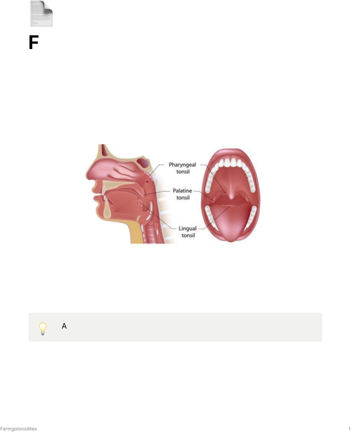 Faringotonsilites 1 📄 Faringotonsilites Morgana R. Duarte- TXI Tonsilas Faringotonsilites: doenças infecciosas/inflamatórias das estruturas do anel linfático de Waldeyer. Anel linfático de Waldeyer Possui 4 estruturas tonsilares e partes de tecido linfoide distribuído ao redor da mucosa faríngea MALT 💡 MALT tecido linfoide associado à mucosa � Tonsilas linguais � Tonsilas tubárias (tecido linfático peritubáreo) � Tonsilas palatinas (amígdalas) Faringotonsilites 2 � Tonsilas faríngeas (adenoides) Tonsilas palatinas (amígdalas) Massas de tecido linfoide na lateral da orofaringe Maior acúmulo do anel de Waldeyer Normalmente restringem-se a orofaringe, porém, em vigência de inflamação, podem alcançar a nasofaringe e levar à obstrução nasal ou atingir a hipofaringe, levando à obstrução de vias aéreas. O nível de obstrução causado pelas tonsilas é avaliado pela classificação de Brodsky, variando entre os graus 0 e 4. Faringotonsilites 3 Tonsilas faríngeas (adenoides) Massa de tecido linfoide localizado na região póstero superior da nasofaringe. Seu aumento pode levar a obstrução nasal e diminuição do fluxo de ar. Após os sete anos, ocorre atrofia desta tonsila, que, associada ao aumento do diâmetro da nasofaringe, leva a um melhor fluxo de ar na região. Não existe um sistema de classificação amplamente aceito para a descrição de seu tamanho. Imunologia Função das tonsilas: proteção imunológica do trato aero-digestivo As tonsilas palatinas têm em sua superfície de 1030 invaginações → criptas Mecanismo de ação das criptas: estas transportam, através de microporos, os antígenos ingeridos ou inalados ao tecido linfoide subjacente → antígenos entram em contato com as APCs (células processadoras de antígenos) APCs apresentam os antígenos ao linfócitos T LT a diferenciação de linfócitos B é estimulada LB se diferenciam em plasmócitos → plasmócitos secretam imunoglobulinas (pp IgA IgA transportado até à superfície mucosa → proteção imunológica local. Faringotonsilites 4 As tonsilas faríngeas apresentam um pregueamento mucoso bem desenvolvido e poucas criptas 💡 As tonsilas são imunologicamente ativas entre 410 anos → ocorre uma involução após a puberdade → redução dos LB e aumento dos LT Pacientes com infecções recorrentes: inflamação constante das criptas e menor transporte de antígenos e da função imunológica dos LB Patogênese Provavelmente envolve a localização anatômica das tonsilas e sua função de processamento de material infeccioso → paradoxalmente se torna foco de infecção. Não há certeza sobre o que determina o início da infecção → envolve dieta, ambiente, fatores próprios do indivíduo etc. Classificação clínica Anginas Angina: “sufocarˮ do latim. Contudo, denomina-se angina todo processo inflamatório e infeccioso de ordem local ou geral que acomete a mucosa da faringe � Eritematosas: mais comuns 90%, pode ser viral ou bacteriana → mucosa orofaríngea arroxeada, edema de amígdalas e com maior volume. Faringotonsilites 5 � Eritêmato-pultáceas: além do arroxeamento, apresenta exsudato esbranquiçado, formação de manchas puntiformes ou confluentes que facilmente se desprendem da mucosa Origem viral 75% das amigdalites agudas. Preponderante aos 23 anos. Menos frequentes após a puberdade. Agentes etiológicos: rinovírus 20%, coronavírus, adenovírus, herpes simples, influenza e parainfluenza. Quadro clínico: sintomas leves, dor de garganta e disfagia, mialgia e febre baixa associada a coriza hialina e espirros. Frequentemente NÃO há exsudato 💡 Sugere etiologia viral: febre moderada, tosse, coriza e obstrução nasal, ausência de adenopatia ou adenopatia difusa. Tratamento: suporte (hidratação), analgésicos e anti-inflamatórios. Origem bacteriana 20 a 40% dos casos. Angina viral eritematosa Angina eritêmato-pultácea bacteriana Faringotonsilites 6 Agentes etiológicos: Streptococcus pyogenes EBHGA 2030% das faringotonsilites agudas em crianças e adolescentes, Mycoplasma pneumoniae S. aureus, Haemophilus sp e Moraxella catarrhalis podem ser responsáveis por recaídas de infecções estreptocócicas. Faringoamigdalite estreptocócica Mais comum: estreptococo do grupo A Ocorre após os 3 anos: pico entre 510 anos Sintomas principais: dor faríngea, odinofagia e otalgia reflexa Febre de intensidade variável Náuseas e vômitos são sinais de alerta, principalmente em crianças Exame físico: hiperemia, aumento das tonsilas, exsudato purulento e adenomegalia em cadeia jugulo-digástrica. Faringotonsilites 7 💡 Sugere etiologia estreptocócica: início brusco, febre alta, dor de garganta intensa, adenopatia limitada em cadeia jugulo-digástrica e ausência de sintomas nasais ou laringo-traqueais. Diagnóstico: clínico Padrão-ouro: cultura de orofaringe → demora de 1848h Testes rápidos: ELISA, OIA ou sondas Se for tratado prontamente → menor período de transmissão, de sintomas e da incidência de complicações supurativas Adiar o tratamento até 9 dias do início da doença não parece aumentar o risco de febre reumática Faringotonsilites 8 Complicações supurativas Supuração: produção de um exsudato espesso e turvo (emulsão de leucócitos mortos e de tecidos destruídos) → denominados pus. � Abscesso periamigdaliano � Abscesso parafaríngeo � Infecções do espaço retrofaríngeo Complicações não supurativas Abscesso periamigdaliano Abscesso periamigdaliano Faringotonsilites 9 � Escarlatina: rash cutâneo papular e eritematoso (pele áspera), linfadenopatia, vômitos, cefaléia, febre, eritema de amígdalas e orofaringe � Febre reumática FR hipotensão associada a 2 critérios maior ou 1 maior e 2 menores � Glomerulonefrite � Síndrome do choque tóxico estreptocócico Faringotonsilites 10 Formas clínicas particulares Mononucleose infecciosa Doença sistêmica Ocorre entre 1525 anos, tropismo