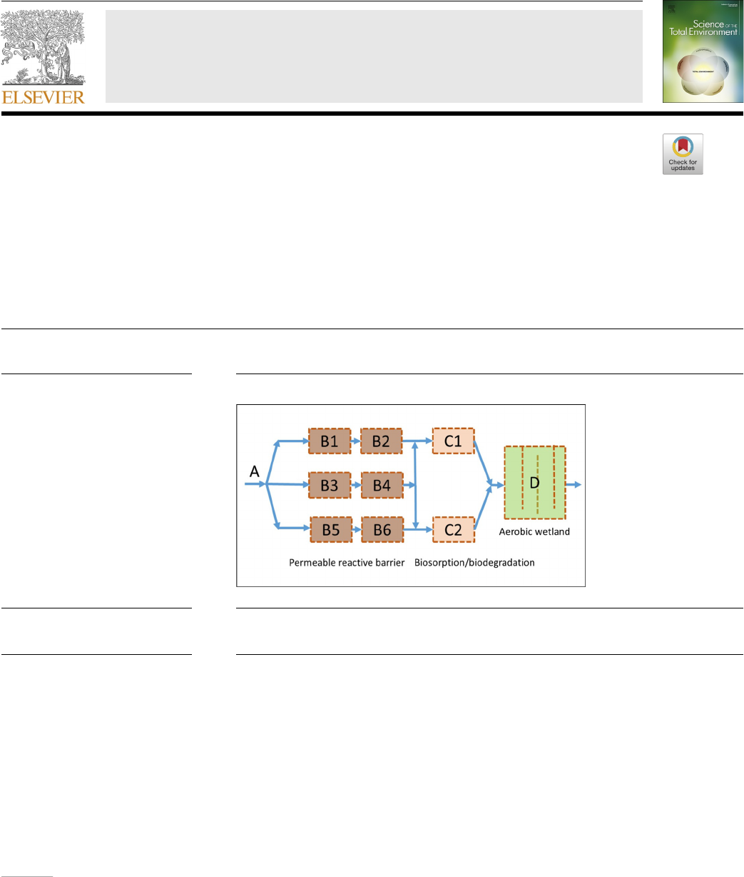 Science of the Total Environment 930 (2024) 172660 Available online 20 April 2024 0048-9697/© 2024 Published by Elsevier B.V. Wetland technology for the treatment of HCH-contaminated water – Case study at Hajek site Miroslav Černík a,*, Jan Němeček a, Martina Štrojsová a,b, Pavla Švermová c, Tereza Sázavská a, Petr Brůček d a Institute for Nanomaterials, Advanced Technologies and Innovation, Technical University of Liberec, Studentská 2, 461 17 Liberec, Czech Republic b Faculty of Science, Humanities and Education, Technical University of Liberec, Studentská 2, 461 17 Liberec, Czech Republic c Faculty of Economics; Technical University of Liberec, Studentská 2, 461 17 Liberec, Czech Republic d DIAMO s.p., Správa uranových ložisek, 28. října 184, 261 01 Příbram, Czech Republic H I G H L I G H T S G R A P H I C A L A B S T R A C T • The HCH removal efficiency of Wetland+ ranged from 53.5 % to 96.9 %. • Variation of the removal efficiency was mainly related to variation in flow rate. • Removal efficiency for individual HCH isomers exhibited trend: α = γ = δ > β = ε. • Improved quality of the recipient resul- ted in increase in biodiversity of Diatoms. • Sustainability assessment showed that Wetland+ outranked conventional WWTPs. A R T I C L E I N F O Keywords: Hexachlorocyclohexane Lindane Biodegradation Constructed wetland Natural remediation, phytobenthos Diatoms Bioindicators A B S T R A C T Hexachlorocyclohexanes (HCH) isomers and their transformation products, such as chlorobenzenes (ClB), generate severe and persistent environmental problems at many sites worldwide. The Wetland technology employing oxidation-reduction, biosorption, biodegradation and phytoremediation methods can sufficiently treat HCH-contaminated water. The treatment process is inherently natural and requires no supplementary chemicals or energy. The prototype with a capacity of 3 L/s was installed at Hajek quarry spoil heap (CZ), to optimize the technology on a full scale. The system is fed by drainage water with an average concentration of HCH 129 μg/L, ClB 640 μg/L and chlorophenols (ClPh) of 16 μg/L. The system was tested in two years of operation, regularly monitored for HCH, ClB and ClPh, and maintained to improve its efficiency. The assessment was not only for environmental effects but also for socio and economic indicators. During the operation, the removal efficiency of HCH ranged from 53.5 % to 96.9 % (83.9 % on average) depending on the flow rate. Removal efficiency was not uniform for individual HCH isomers but exhibited the trend: α = γ = δ > β = ε. The improved water quality was reflected in a biodiversity increase expressed by a number of phytobenthos (diatoms) species, a common biomarker of aquatic environment quality. The Wetland outranked the conventional WWTP * Corresponding author at: Technical University of Liberec, Studentská 2, 461 17 Liberec, Czech Republic. E-mail address: miroslav.cernik@tul.cz (M. Černík). Contents lists available at ScienceDirect Science of the Total Environment journal homepage: www.elsevier.com/locate/scitotenv https://doi.org/10.1016/j.scitotenv.2024.172660 Received 15 January 2024; Received in revised form 10 April 2024; Accepted 19 April 2024 mailto:miroslav.cernik@tul.cz www.sciencedirect.com/science/journal/00489697 https://www.elsevier.com/locate/scitotenv https://doi.org/10.1016/j.scitotenv.2024.172660 https://doi.org/10.1016/j.scitotenv.2024.172660 https://doi.org/10.1016/j.scitotenv.2024.172660 http://crossmark.crossref.org/dialog/?doi=10.1016/j.scitotenv.2024.172660&domain=pdf Science of the Total Environment 930 (2024) 172660 2 in 10 out of the 15 general categories, and it is the most relevant scenario from the socio, environmental, and economic aspects. 1. Introduction HCH isomers (α, β, γ, δ, ε) and their transformation products, such as ClB generate severe and persistent environmental problems at many sites worldwide. α, β and γ-HCH are listed under the Stockholm Convention on persistent organic pollutants (POPs), and the use of γ-HCH (lindane) was banned in Europe from the end of 2007 under EC Regulation No.850/2004. Many studies suggest that HCH production across Europe has led to >40 megasites, with the total HCH waste exceeding 250 thousand tons (Vijgen and International HCH and Pes- ticides Association, 2006; Vijgen et al., 2019). In recent decades, research has therefore focused on the study of biological, chemical and physical methods for treating HCH-contaminated water and soil. Among chemical agents, ZVI is recognized for its ability to chemi- cally decompose HCH. Recently, there has been significant interest in utilizing ZVI for HCH remediation, whether in its nano-scale (nZVI; Elliott et al., 2008; Soukupova et al., 2015), micro-scale (μZVI; Elliott et al., 2009), or macro-scale (mZVI; Lacinová et al., 2013) forms. Lacinová et al. (2013) demonstrated that various HCH isomers were degraded by nZVI at different efficiencies (α = γ > β > δ > ε). Benzene and chlorobenzene are the end products of γ -HCH degradation under both anaerobic and aerobic conditions using stabilized nZVI (Wang et al., 2009). Regarding biological degradation, HCH can be degraded by anaer- obic bacteria belonging to Clostridium sp., Citrobacter sp., Desulfovibrio sp., Desulfococcus sp., and Dehalobacter sp. The primary responsibility for aerobic degradation of HCH isomers to less chlorinated benzenes and benzene lies with aerobic bacteria, including genera Bacillus, Escherichia, Pseudomonas, Rhodanobacter, Sphingobium, Sphingomonas, and Strepto- myces. Some species, such as Sphingobium, are capable of complete HCH mineralization (Badea et al., 2011; Boyle et al., 1999; Lal et al., 2010; Qiao et al., 2020; Semerád et al., 2023). Organic matter in soil and sediment has a relatively high sorption capacity for adsorption of HCH isomers, which reduces their mobility in the environment. This capability, expressed 