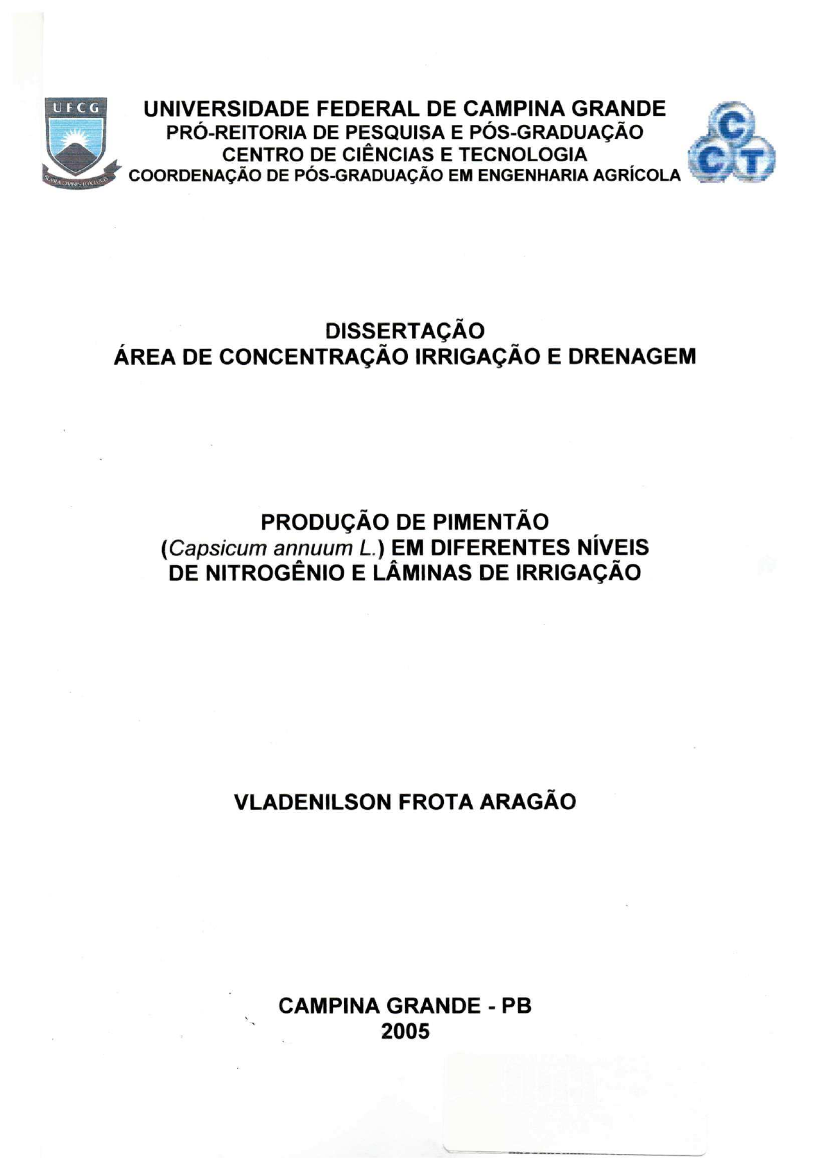 niveis de nitrogenio e laminas de irrigacao. / Vladenilson Frota