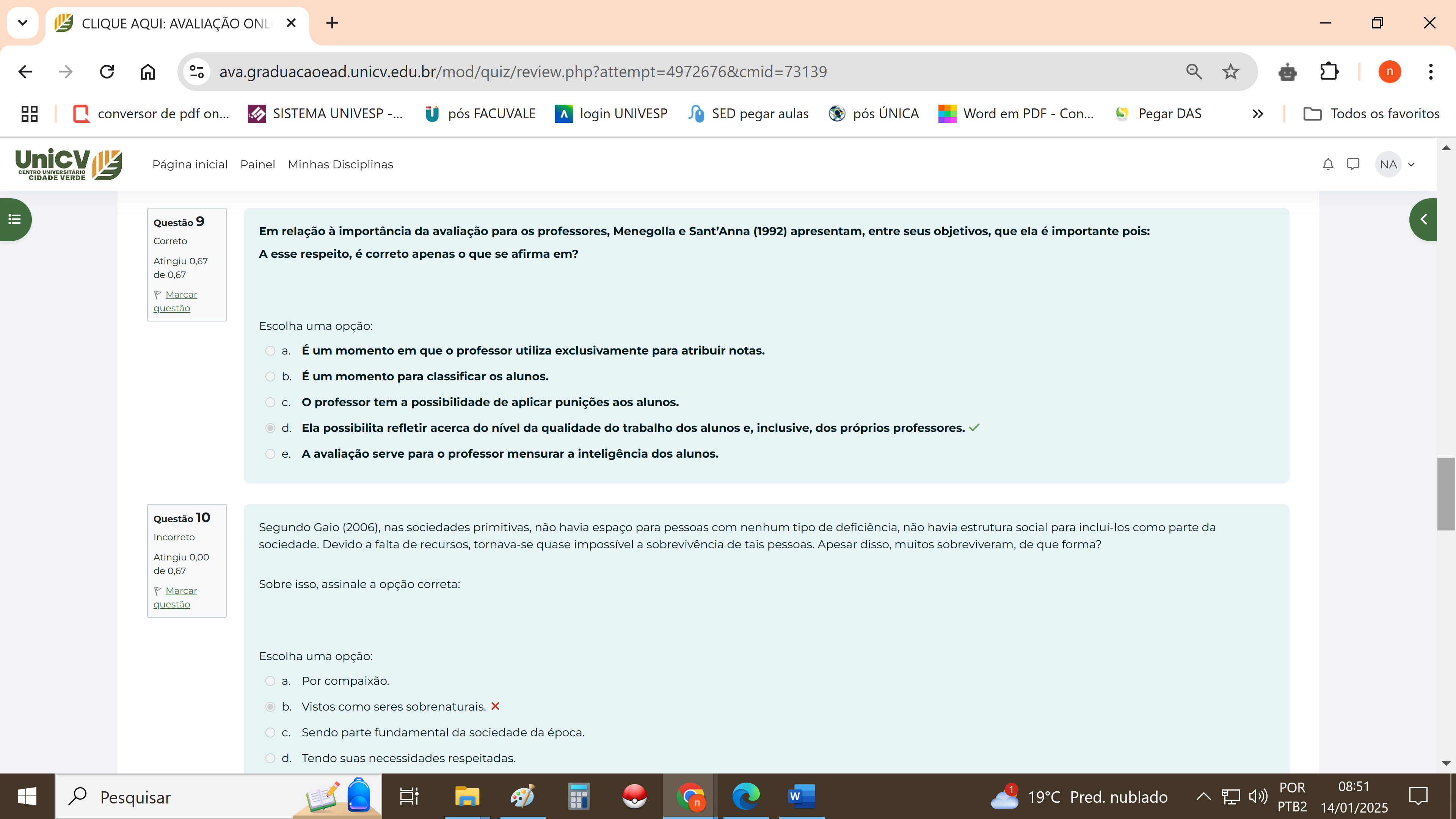 CLIQUE AQUI: AVALIAÇÃO ONL X + X n conversor de pdf on... SISTEMA UNIVESP pós FACUVALE A login UNIVESP SED pegar aulas pós ÚNICA Word em PDF Con.. Pegar DAS Todos os favoritos Página inicial Painel Minhas Disciplinas NA CENTRO UNIVERSITÁRIO CIDADE VERDE Questão 9