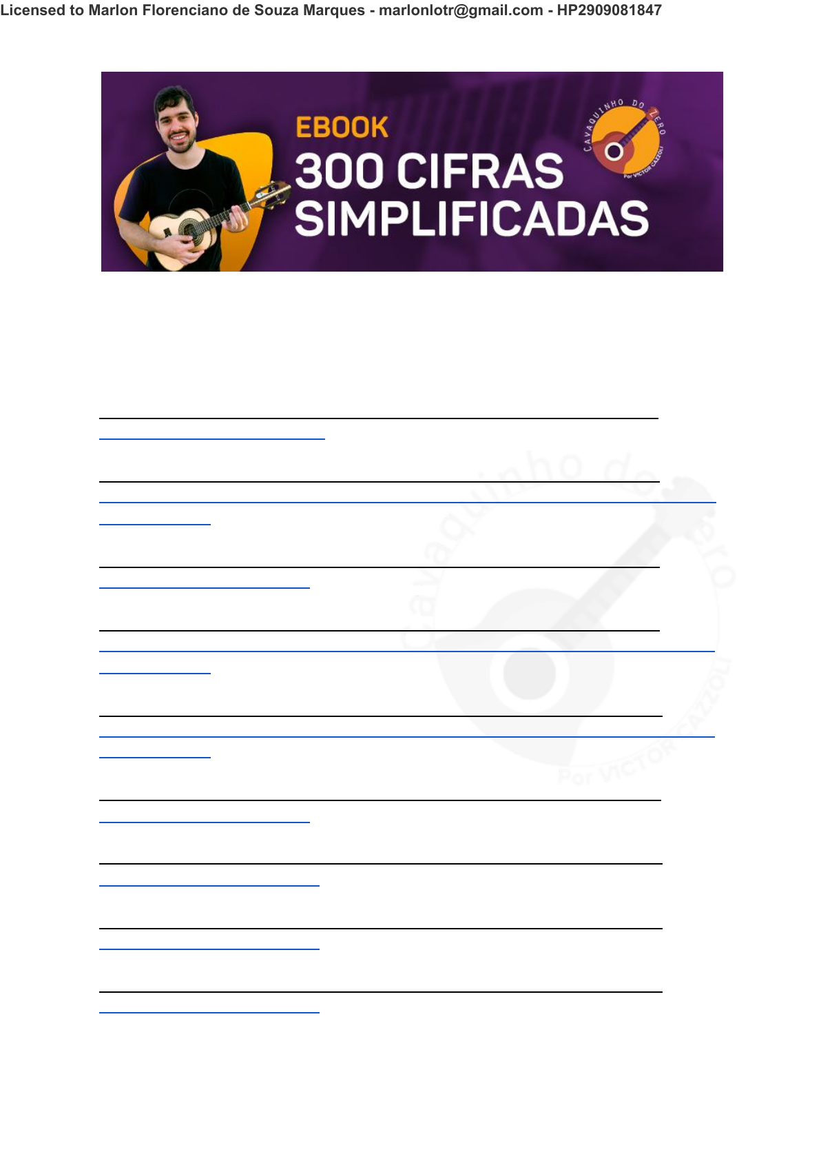 Confira a lista completa de Músicas com numeração de página e link para vídeo no Youtube: Sissi - Alexandre Pires 12 https://youtu.be/z98UlvPkppA Meu Jeito de Ser - Alexandre Pires 14 https://www.youtube.com/watch?v=2-E29NcepkQ&ab_channel=CavaquinhodoZer o-VictorCazzoli Caxambu - Almir Guineto 16 https://youtu.be/Vzn1pjiphi8 Conselho - Almir Guineto 18 https://www.youtube.com/watch?v=lkeGPgZBops&ab_channel=CavaquinhodoZer o-VictorCazzoli Insensato Destino - Almir Guineto 20 https://www.youtube.com/watch?v=lkeGPgZBops&ab_channel=CavaquinhodoZer o-VictorCazzoli Mel na boca - Almir Guineto 22 https://youtu.be/Vzn1pjiphi8 Meu Nome é Favela - Arlindo Cruz 24 https://youtu.be/Tb5SBtJR5i4 Será Que É Amor - Arlindo Cruz 26 https://youtu.be/Tb5SBtJR5i4 Agamamou - Art Popular 28 https://youtu.be/73rkSKlEq7g Licensed to Marlon Florenciano de Souza Marques - marlonlotr@gmail.com - HP2909081847 https://youtu.be/z98UlvPkppA https://www.youtube.com/watch?v=2-E29NcepkQ&ab_channel=CavaquinhodoZero-VictorCazzoli https://www.youtube.com/watch?v=2-E29NcepkQ&ab_channel=CavaquinhodoZero-VictorCazzoli https://youtu.be/Vzn1pjiphi8 https://www.youtube.com/watch?v=lkeGPgZBops&ab_channel=CavaquinhodoZero-VictorCazzoli https://www.youtube.com/watch?v=lkeGPgZBops&ab_channel=CavaquinhodoZero-VictorCazzoli https://www.youtube.com/watch?v=lkeGPgZBops&ab_channel=CavaquinhodoZero-VictorCazzoli https://www.youtube.com/watch?v=lkeGPgZBops&ab_channel=CavaquinhodoZero-VictorCazzoli https://youtu.be/Vzn1pjiphi8 https://youtu.be/Tb5SBtJR5i4 https://youtu.be/Tb5SBtJR5i4 https://youtu.be/73rkSKlEq7g Bombocado - Art Popular 30 https://www.youtube.com/watch?v=RoVRnF3xLsc&ab_channel=CavaquinhodoZer o-VictorCazzoli Canto da Razão - Art Popular 32 https://youtu.be/73rkSKlEq7g É no Pagode - Art Popular 34 https://www.youtube.com/watch?v=EyPGU2ztDmw Eternamente Feliz - Art Popular 36 https://youtu.be/73rkSKlEq7g Falando Segredo - Art Popular 38 https://youtu.be/73rkSKlEq7g Fricote - Art Popular 40 https://youtu.be/73rkSKlEq7g Ôa Ôa, Canção do Amor - Art Popular 42 https://youtu.be/73rkSKlEq7g Pimpolho - Art Popular 44 https://www.youtube.com/watch?v=EuUq0KRNycA&ab_channel=CavaquinhodoZe ro-VictorCazzoli Primeiro Beijo - Art Popular 46 https://youtu.be/73rkSKlEq7g Quando Você me Beija - Art Popular 48 https://youtu.be/73rkSKlEq7g Sai da Frente - Art Popular 50 https://youtu.be/wYILbjXNFWQ Sem Abuso - Art Popular 52 https://youtu.be/73rkSKlEq7g Temporal - Art Popular 54 https://www.youtube.com/watch?v=RoVRnF3xLsc&ab_channel=CavaquinhodoZer o-VictorCazzoli Utopia - Art Popular 56 https://youtu.be/73rkSKlEq7g Licensed to Marlon Florenciano de Souza Marques - marlonlotr@gmail.com - HP2909081847 https://www.youtube.com/watch?v=RoVRnF3xLsc&ab_channel=CavaquinhodoZero-VictorCazzoli https://www.youtube.com/watch?v=RoVRnF3xLsc&ab_channel=CavaquinhodoZero-VictorCazzoli https://youtu.be/73rkSKlEq7g https://www.youtube.com/watch?v=EyPGU2ztDmw https://youtu.be/73rkSKlEq7g https://youtu.be/73rkSKlEq7g https://youtu.be/73rkSKlEq7g https://youtu.be/73rkSKlEq7g https://www.youtube.com/watch?v=EuUq0KRNycA&ab_channel=CavaquinhodoZero-VictorCazzoli https://www.youtube.com/watch?v=EuUq0KRNycA&ab_channel=CavaquinhodoZero-VictorCazzoli https://youtu.be/73rkSKlEq7g https://youtu.be/73rkSKlEq7g https://youtu.be/wYILbjXNFWQ https://youtu.be/73rkSKlEq7g https://www.youtube.com/watch?v=RoVRnF3xLsc&ab_channel=CavaquinhodoZero-VictorCazzoli https://www.youtube.com/watch?v=RoVRnF3xLsc&ab_channel=CavaquinhodoZero-VictorCazzoli https://youtu.be/73rkSKlEq7g Vestida de Doida - Art Popular 58 https://youtu.be/wYILbjXNFWQ Caixa Postal - Bala, Bombom e Chocolate 60 https://www.youtube.com/watch?v=wNyr4ObcpUM&ab_channel=CavaquinhodoZ ero-VictorCazzoli Desafio - Belo 63 https://www.youtube.com/watch?v=9RtwvxXREHQ&feature=youtu.be&ab_channel =CavaquinhodoZero-VictorCazzoli Desse Jeito É Ruim Pra Mim - Belo 65 https://www.youtube.com/watch?v=9RtwvxXREHQ&feature=youtu.be&ab_channel =CavaquinhodoZero-VictorCazzoli Eternamente - Belo 67 https://www.youtube.com/watch?v=9RtwvxXREHQ&feature=youtu.be&ab_channel =CavaquinhodoZero-VictorCazzoli Farol das Estrelas - Belo 69 https://www.youtube.com/watch?v=9RtwvxXREHQ&feature=youtu.be&ab_channel =CavaquinhodoZero-VictorCazzoli Intriga da Oposição - Belo 71 https://www.youtube.com/watch?v=9RtwvxXREHQ&feature=youtu.be&ab_channel =CavaquinhodoZero-VictorCazzoli Perfume - Belo 73 https://www.youtube.com/watch?v=9RtwvxXREHQ&feature=youtu.be&ab_channel =CavaquinhodoZero-VictorCazzoli Pra Ver O Sol Brilhar - Belo 75 https://www.youtube.com/watch?v=9RtwvxXREHQ&feature=youtu.be&ab_channel =CavaquinhodoZero-VictorCazzoli Pura Adrenalina - Belo 77 https://www.youtube.com/watch?v=9RtwvxXREHQ&feature=youtu.be&ab_channel =CavaquinhodoZero-VictorCazzoli Razão da Minha Vida - Belo 79 https://www.youtube.com/watch?v=9RtwvxXREHQ&feature=youtu.be&ab_channel =CavaquinhodoZero-VictorCazzoli Reinventar - Belo 81 https://www.youtube.com/watch?v=9RtwvxXREHQ&feature=youtu.be&ab_channel =CavaquinhodoZero-VictorCazzoli Licensed to Marlon Florenciano de Souza Marques - marlonlotr@gmail.com - HP2909081847 https://youtu.be/wYILbjXNFWQ https://www.youtube.com/watch?v=wNyr4ObcpUM&ab_channel=CavaquinhodoZero-VictorCazzoli https://www.youtube.com/watch?v=wNyr4ObcpUM&ab_channel=CavaquinhodoZero-VictorCazzoli https://www.youtube.com/watch?v=9RtwvxXREHQ&feature=youtu.be&ab_channel=CavaquinhodoZero-VictorCazzoli https://www.youtube.com/watch?v=9RtwvxXREHQ&feature=youtu.be&ab_channel=CavaquinhodoZero-VictorCazzoli https://www.youtube.com/watch?v=9RtwvxXREHQ&feature=youtu.be&ab_channel=CavaquinhodoZero-VictorCazzoli https://www.youtube.com/watch?v=9RtwvxXREHQ&feature=youtu.be&ab_channel=CavaquinhodoZero-VictorCazzoli https://www.youtube.com/watch?v=9RtwvxXREHQ&feature=youtu.be&ab_channel=CavaquinhodoZero-VictorCazzoli https://www.youtube.com/watch?v=9RtwvxXREHQ&feature=youtu.be&ab_channel=CavaquinhodoZero-VictorCazzoli https://www.youtube.com/watch?v=9RtwvxXR