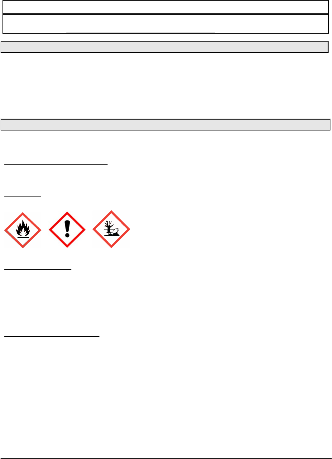 Pág. 1/9 FICHA DE INFORMAÇÃO DE SEGURANÇA PRODUTO QUÍMICO – FISPQ – MARCADOR INDUSTRIAL CARBOMARK Data: 20/09/2018 – Rev. 07 CARBOGRAFITE EQUIPAMENTOS INDUSTRIAIS LTDA. FICHA DE INFORMAÇÃO DE SEGURANÇA PRODUTO QUÍMICO - FISPQ Nome do produto: MARCADOR INDUSTRIAL - CARBOMARK 1 – IDENTIFICAÇÃO DO PRODUTO E DA EMPRESA Nome do Produto : MARCADOR INDUSTRIAL CARBOMARK Cor : DIVERSAS Empresa : CARBOGRAFITE EQUIPAMENTOS INDUSTRIAIS LTDA. Endereço : Estrada União e Indústria, 15.500 – Pedro do rio – 25.750-226 – Petrópolis / RJ Telefone : (24) 2222 – 9900 E – mail : sac@carbografite.com.br 2 – IDENTIFICAÇÃO DE PERIGOS ELEMENTOS DO RÓTULO De acordo com o critério GHS (ONU). A Classificação do produto foi feita de acordo com a norma ABNT NBR 14725-2. Pictogramas: Palavra de advertência: Atenção. Frases de perigo: H226 Líquido e vapor inflamável. Frases de precaução (Prevenção): P201 Obtenha instruções especificas antes da sua utilização. P202 Não manuseie o produto antes de ter lido e compreendido todas as precauções de segurança. P210 Manter afastado do calor/ faísca/ chama aberta/ superfícies quentes. Não fumar. P233 Manter o recipiente bem fechado. P261 Evitar respirar as poeiras/ fumos/ gases/ névoas/ vapores/ aerossóis. P262 Evite contato com olhos, pele e roupa. P264 Lavar cuidadosamente as mãos com água e sabão após manuseio. P270 Não comer, beber ou fumar durante a utilização deste produto. Pág. 2/9 FICHA DE INFORMAÇÃO DE SEGURANÇA PRODUTO QUÍMICO – FISPQ – MARCADOR INDUSTRIAL CARBOMARK Data: 20/09/2018 – Rev. 07 Frases de precaução (Resposta à emergência): P301 + P330 + P331 EM CASO DE INGESTÃO, enxague a boca. Não provoque vômito. P302 + P352 EM CASO DE CONTATO COM A PELE: Lavar com sabonete e água abundantes. P305 + P351 + P338 EM CASO DE CONTATO COM OS OLHOS: Enxaguar cuidadosamente com água durante vários minutos. Se usar lentes de contato, retire-as, se tal lhe for possível. Continuar a enxaguar. P391 Recolher o produto derramado. P337 + P313 Caso a irritação ocular persista: consulte um médico. P333 + P313 Em caso de irritação ou erupção cutânea: consulte um médico. Frase de precaução (Armazenamento): P403 + P235 Armazenar em local bem ventilado. Conservar em ambiente fresco. Frases de precaução (Eliminação): P501 Descartar o conteúdo/recipiente em conformidade com as legislações locais. CLASSIFICAÇÃO DA SUBSTÂNCIA OU MISTURA De acordo com os critérios do GHS (ONU). - Possíveis Perigos: Nocivo. - Perigoso para o ambiente. - Inflamável. - Pode causar sensibilização se atingir a pele. - Nocivo por inalação, se atingir a pele e por ingestão. - Irritante para os olhos e pele. - Tóxico para os organismos aquáticos. EFEITOS DO PRODUTO SOBRE A SAÚDE HUMANA Ingestão: Pode causar irritação na boca e garganta, distúrbios gastrointestinais, dores de cabeça, desmaios e náuseas. Olhos: Pode causar queimadura ou irritação e conjuntivite química. Inalação: Pode causar irritação na garganta e nariz, vias respiratórias, dores de cabeça, náuseas, perda de consciência. Pele: Pode causar ressecamento, irritações e dermatite de contato. 3 – COMPOSIÇÃO / INFORMAÇÃO SOBRE OS COMPONENTES Componentes perigosos: Ingredientes ou impurezas que contribuam para o perigo: Nome Químico Quant (%) CAS Number Sinônimos A Etanol 20,0 – 80,0 64-57-5 Álcool Etílico Esse produto é uma mistura. Pág. 3/9 FICHA DE INFORMAÇÃO DE SEGURANÇA PRODUTO QUÍMICO – FISPQ – MARCADOR INDUSTRIAL CARBOMARK Data: 20/09/2018 – Rev. 07 Caracterização química: Modificado com resinas, solventes orgânicos pigmentos orgânicos e inorgânicos. 4 – MEDIDAS DE PRIMEIROS SOCORROS Indicações gerais: Em caso de dúvida, ou quando os sintomas persistirem, procurar um médico. Nunca dê nada por via oral a uma pessoa inconsciente. Após inalação: Remover a vítima para um local com ar fresco e bem ventilado. Caso a respiração for irregular ou parar, administrar respiração artificial. Consultar um médico. Após contato com a pele: Remover as roupas contaminadas. Lavar a pele com sabão e água e enxaguar com bastante água. Não utilizar solventes ou diluentes. Após contato com os olhos: As lentes de contato devem ser removidas. Manter as pálpebras abertas e lavar abundantemente com água fresca e limpa. Consultar um médico. Após ingestão: Em caso de ingestão acidental, consultar imediatamente um médico. Manter a vítima em repouso. Não provocar vômitos. Quais ações devem ser evitadas: Manter contato direto do produto sobre a pele em ambientes fechados e provocar vômitos. Proteção do prestador de socorro e/ou notas para o médico: Evitar contato com a pele. O tratamento deverá ser sintomático. Nenhum antídoto específico é conhecido. 5 – MEDIDAS DE COMBATE A INCÊNDIOS Meios de extinção apropriados: Neblina de água, dióxido de carbono (CO2), pó químico seco (PQS) e espuma. Meios de extinção não apropriados: Jato de água de alta pressão. Perigos específicos: Em caso de incêndio, é gerado um fumo negro e espesso. A inalação dos produtos da decomposição pode causar sérios efeitos para a saúde. Pág. 4/9 FICHA DE INFORMAÇÃO DE SEGURANÇA PRODUTO QUÍMICO – FISPQ – MARCADOR INDUSTRIAL CARBOMARK Data: 20/09/2018 – Rev. 07 Métodos especiais: Combater o fogo a uma distância segura. Resfriar as embalagens e afastar as que não foram envolvidas. A água de extinção contaminada deve ser eliminada segunda a legislação local vigente. Proteção dos bombeiros: Em caso de incêndio, utilizar equipamento de proteção e equipamento de proteção respiratória autônoma. 6 – MEDIDAS DE CONTROLE PARA DERRAMAMENTO OU VAZAMENTO Precauções pessoais: Evitar que atinja a pele e os olhos. Manter afastado de fontes de ignição. Não inalar vapores, garantir ventilação adequada. Precauções ao meio ambiente: Não permitir que atinja canaliz