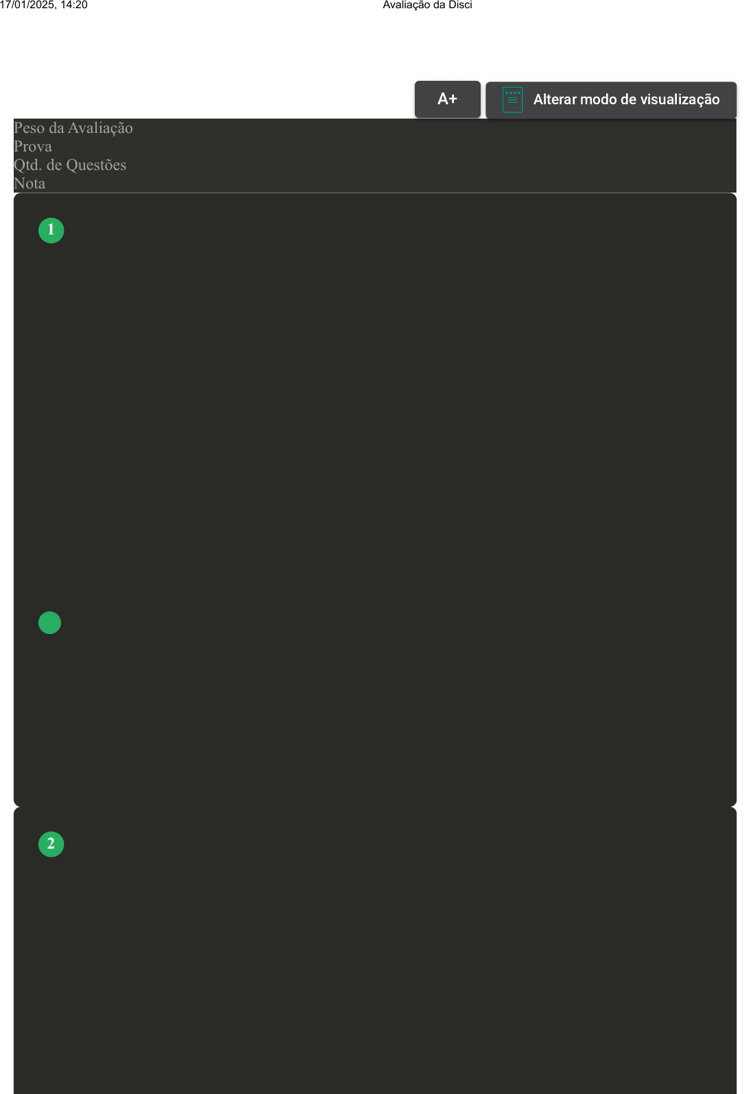 Prova Impressa GABARITO | Avaliação da Disciplina (Cod.:667602) Peso da Avaliação 10,00 Prova 89016413 Qtd. de Questões 20 Nota 8,50 Muitos são os sentimentos que envolvem o desenvolvimento da aprendizagem: as emoções, empatia, o estímulo, a interatividade, a espontaneidade em poder apresentar ideias e não ser reprimido pelos outros devido à criação de um ambiente seguro. Antônio e Tavares (2013) defendem que não há conhecimento sem emoção. Sobre os sentimentos que envolvem o desenvolvimento da aprendizagem, assinale a alternativa CORRETA: FONTE: ANTÔNIO, S.; TAVARES, K. Uma pedagogia poética para as crianças. Americana, SP: Adonis, 2013. A Emoções, autoconhecimento, independência, competitividade e criatividade. B Emoções, empatia, estímulo, interatividade e espontaneidade. C Emoções, teimosia, foco no indivíduo, dependência e liderança. D Emoções, autocontrole, autogestão, autoconsciência e automotivação. Para conseguir atender as necessidades de aprendizagem dos alunos nascidos na era digital, profissionais de educação, do mundo todo, têm cada vez mais se dedicado a elaborar novas abordagens e estratégias para aplicar nas salas de aula. Fazer com que esses alunos consigam desenvolver um processo de ensino-aprendizagem dinâmico é cada vez mais necessário. Com base nestas afirmações e em como um professor pode tornar suas aulas mais interativas, analise as alternativas a seguir: VOLTAR A+ Alterar modo de visualização 1 2 17/01/2025, 14:20 Avaliação da Disciplina about:blank 1/13 I- Formando grupos em redes sociais. II- Criando blogs. III- Utilizando plataformas e aplicativos específicos para a área educacional. IV- Focar em aulas expositivas longas. Assinale a alternativa CORRETA: A As alternativas II e IV estão corretas. B As alternativas I, II e III estão corretas. C As alternativas I e III estão corretas. D As alternativas I e II estão corretas. Liderança requer trazer à tona a cooperação e o trabalho em equipe de uma ampla rede de pessoas. Assim, um líder moderno de sucesso é aquele que... Assinale a alternativa que completa corretamente a frase: A Conhece seus colaboradores, confia em suas capacidades e sabe delegar. B Possui habilidades universais como o planejamento, a organização e o controle. C Despreza as estratégias e os resultados. D Ignora os riscos e os erros cometidos. Atualmente, a maioria do público escolar é composto por alunos chamados nativos digitais. Esses alunos nasceram e cresceram com as tecnologias digitais presentes em sua vivência. Esses jovens nascidos na era digital enfrentam dificuldades para acompanhar com atenção os ensinamentos baseados na educação tradicional. 3 4 17/01/2025, 14:20 Avaliação da Disciplina about:blank 2/13 Com base na adoção de tecnologias digitais em ambientes escolares e como ela pode auxiliar no aprendizado desses jovens, analise as afirmativas a seguir: I- Para despertar mais interesse e atenção dos alunos. II- Para auxiliar na percepção e resolução de problemas. III- Para inserir os estudantes no debate social. IV- Para estimular o desenvolvimento da maturidade. V- Para democratizar o acesso ao ensino; para oportunizar o feedback imediato a professores e alunos. Assinale a alternativa CORRETA: A As afirmativas I, II, III, IV e V estão corretas. B As afirmativas I e IV estão corretas. C As afirmativas I, II, e III estão corretas. D As afirmativas I, II e V estão corretas. Uma habilidade pilar da inteligência emocional para o mundo do trabalho é a empatia. Essa habilidade é fundamental no mundo do trabalho, em que colaboradores e líderes compartilham desafios conjuntos e juntos às trajetórias pessoais. Sem empatia não há êxito nas organizações. Sobre o termo empatia, assinale a alternativa CORRETA: A Controlar as próprias emoções. B Fazer o que os outros querem. C Se colocar no lugar do outro, sentir o que o outro sente, entender o que o outro está sentindo. 5 17/01/2025, 14:20 Avaliação da Disciplina about:blank 3/13 D Dominar a linguagem e comunicação. A influência é uma força psicológica que abrange todas as maneiras pelas quais se introduzem mudanças no comportamento das pessoas ou do grupo e envolve conceitos como ... Assinale a alternativa que completa corretamente a frase: A Gestão e competência. B Poder e autoridade. C Técnica e ambiente. D Trabalho e tarefa. Novas formas de aprender e ensinar são disponibilizadas a cada dia, através do compartilhamento e colaboração proporcionados pela internet. Dessa forma, a cada dia que passa, as escolas, estudantes e professores são desafiados a fazer o melhor uso das inúmeras ferramentas disponíveis na Web. Sobre as ferramentas de tecnologia digital utilizadas atualmente na educação, de acordo com Santos (2020), assinale a alternativa CORRETA: FONTE: SANTOS, L. A. Tecnologias na educação: 5 ferramentas digitais para facilitar a vida de alunos e professores. Disponível em: https://www.blogsenacsp.com.br/tecnologias-na-educacao. Acesso em: 23 set. 2020. A Impressora 3D, Realidade virtual e Learning Analytics. B Realidade virtual, Gamificação e Learning Analytics. C Wordpress, Wikipedia, Facebook. 6 7 17/01/2025, 14:20 Avaliação da Disciplina about:blank 4/13 D Facebook, Learning Analytics e Gamificação. A inteligência é uma das principais distinções entre o ser humano e os outros animais. Etimologicamente, a palavra ‘inteligência’ se originou a partir do latim intelligentia, oriundo de intelligere, em que o prefixo inter significa ‘entre’, e legere quer dizer ‘escolha’ (INTELIGÊNCIA, 2020). Sobre o conceito de inteligência, assinale a alternativa CORRETA: FONTE: INTELIGENCIA. In: SIGNIFICADOS. Matosinhos: 7 Graus. Disponível em: https://www.significados.com.br/inteligencia. Acesso em 23 nov. 2020. A Inteligência define algumas habilidades motoras do ser humano, como as locomotoras, estabilizadoras e manipuladoras. B Inteligência define a