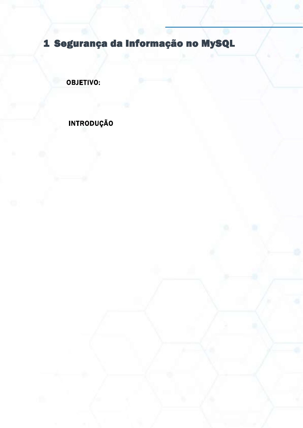 Tecnologias e Linguagens de Banco de Dados | Danilo Nogueira | 6 : Em um sistema gerenciador de banco de dados, a segurança da informação se dá em dois níveis: interno e externo. No nível externo, a proteção dos dados é exercida pelos mecanismos de segurança de rede, providos pelo sistema operacional e outras ferramentas acopladas, como firewall, antivírus, entre outros. Já no nível interno, a segurança é exercida pelo próprio SGBD, no que diz respeito aos níveis de acesso aos dados, que são concedidos por meio da linguagem DCL. Com essa linguagem, é possível definir quem tem permissão de visualizar ou atualizar cada coluna de cada tabela criada no âmbito de um ba nco de dados. Cabe ao administrador de dados, também conhecido como DBA, definir esses níveis de permissão, e não ao programador, que estará limitado a esses níveis de permissão. 1.1 Criando novos usuários Antes de falarmos em segurança da informação e m um banco de dados, precisamos ter um elenco de usuários ativos para gerenciar seus acessos e privilégios quanto ao banco de dados em tela. Para ter acesso ao formulário de criação de novos usuários, bem como a configuração de seus acessos, abra o PhpMyAdmin, clique no banco de dados desejado (“EscolaPrime”, por exemplo), e acione a aba “Privileges”. Ao término desta aula você será capaz de gerenciar a segurança e o compartilhamento de dados no SGBD. Tecnologias e Linguagens de Banco de Dados | Danilo Nogueira | 7 Figura 1 - Formulário de criação de usuários e configuração de seus privilégios. Para adicionar uma nova conta de usuário, siga este passo a passo: Clique no link “Add user acount” (adicione conta de usuário) e observe a formação de uma página contendo um formulário de usuários: Figura 2 - Campos cadastrais do novo usuário que está sendo criado. Por default, o usuário “root”, que é criado automaticamente no ato da instalação do MySQL, recebe todos os privilégios possíveis para acesso aos bancos de dados criados. Tecnologias e Linguagens de Banco de Dados | Danilo Nogueira | 8 Na sequência, pelo menos, preencha o nome do usuário e clique por sobre o botão “Generate” para que uma nova senha seja automaticamente gerada pelo PhpMyAdmin. Caso queira de fato gerar uma senha manualmente, basta preencher os demais campos antes deste botão. Rolando a página um pouco para baixo, vemos que ainda há campos a serem preenchidos neste formulário. O próximo conjunto de campos se refere às permissões de acesso deste usuário que está sendo criado. Veja, na figura abaixo, que podemos estabelecer exatamente que comandos esse usuário pode executar neste banco de dados. Figura 3 - Continuação do formulário anterior. Observe que o PhpMyAdmin divide os comandos em três grupos. O da esquerda engloba os comandos DML. Na parte central, ele concentra os comandos DDL e, por fim, os comandos DCL e demais comandos de administração do banco de dados, mais à direita. Tecnologias e Linguagens de Banco de Dados | Danilo Nogueira | 9 Rolando um pouco mais para baixo (ou mais à direita, dependendo da responsividade de seu navegador), vemos mais um conjunto de campos a serem preenchidos. Este grupo de campos se refere a eventuais limites de acessos por parte do usuário que está sendo criado. Como podemos observar na figura abaixo, o PhpMyAdmin permite estabelecer limites de consultas (“queries”), atualizações (“updates”), e conexões (“connections”) por hora, além do número máximo de conexões simultâneas (“max user connections”). Figura 4 - Continuação do formulário anterior. Por fim, role a página até o fim e perceba que o PhpMyAdmin ainda oferece a oportunidade de estabelecermos alguns requisitos de segurança para o banco de dados. A primeira opção (vide figura a seguir) suprime qualquer requisito de segurança adicional. As outras opções, porém, forçam que o programa ou comando que i rá interagir com o banco O valor “zero”, quando informado em quaisquer desses campos, remove o limite dos respectivos requisitos. Tecnologias e Linguagens de Banco de Dados | Danilo Nogueira | 10 de dados forneça um dos protocolos especificados, inclusive outro protocolo a ser informado nos três últimos campos de texto. Dependendo do tipo de banco de dados que se esteja definindo, este requisito pode ser fundamental, como é o caso dos bancos de dados que lidam com cartões de crédito e contas bancárias. Figura 5 – Continuação do formulário anterior. Finalmente, chegamos ao término da definição de segurança deste banco de dados. Para executar todos os parâmetros informados neste formulário, basta clicar no botão “Go”, como ilustrado na figura acima. Considerando que demos total privilégio ao João Marcelo, o PhpMyAdmin executou o seguinte comando DCL: CREATE USER 'João Marcelo Lyra'@'%' IDENTIFIED WITH mysql_native_pass word AS '***';GRANT SELECT, SHOW DATABASES, CREATE VIEW, SHOW VIEW Figura 6 - Página de feedback da criação do usuário. Tecnologias e Linguagens de Banco de Dados | Danilo Nogueira | 11 ON *.* TO 'João Marcelo Lyra'@'%' REQUIRE NONE WITH MAX_QUERIES_PER_HOUR 0 MAX_CONNECTIONS_PER_HOUR 0 MAX_UPDATES_PER_HOUR 0 MAX_USER_CONNECTIONS 0;GRANT ALL PRIVILEGES ON `escolaprime`.* TO 'João Marcelo Lyra'@'%'; Você pode ainda editar os privilégios concedidos no formulário seguinte, como podemos visualizar ao lado. 1.2 Editando privilégios de usuários Experimente editar as permissões, desmarcando todas as caixas de verificação dos comandos das colunas do meio e da direita, deixando apenas as permissões para os comandos DML. Depois de clicar no botão “Go”, você deverá visualizar a seguinte página, contendo os comandos REVOKE e GRANT. Figura 7 - Desmarcando as permissões para comandos de estrutura ( Structure) e administração (Administrat ion). Na prática, o PhpMyAdmin executou dois comandos DCL: REVOKE ALL PRIVILEGES ON `esco