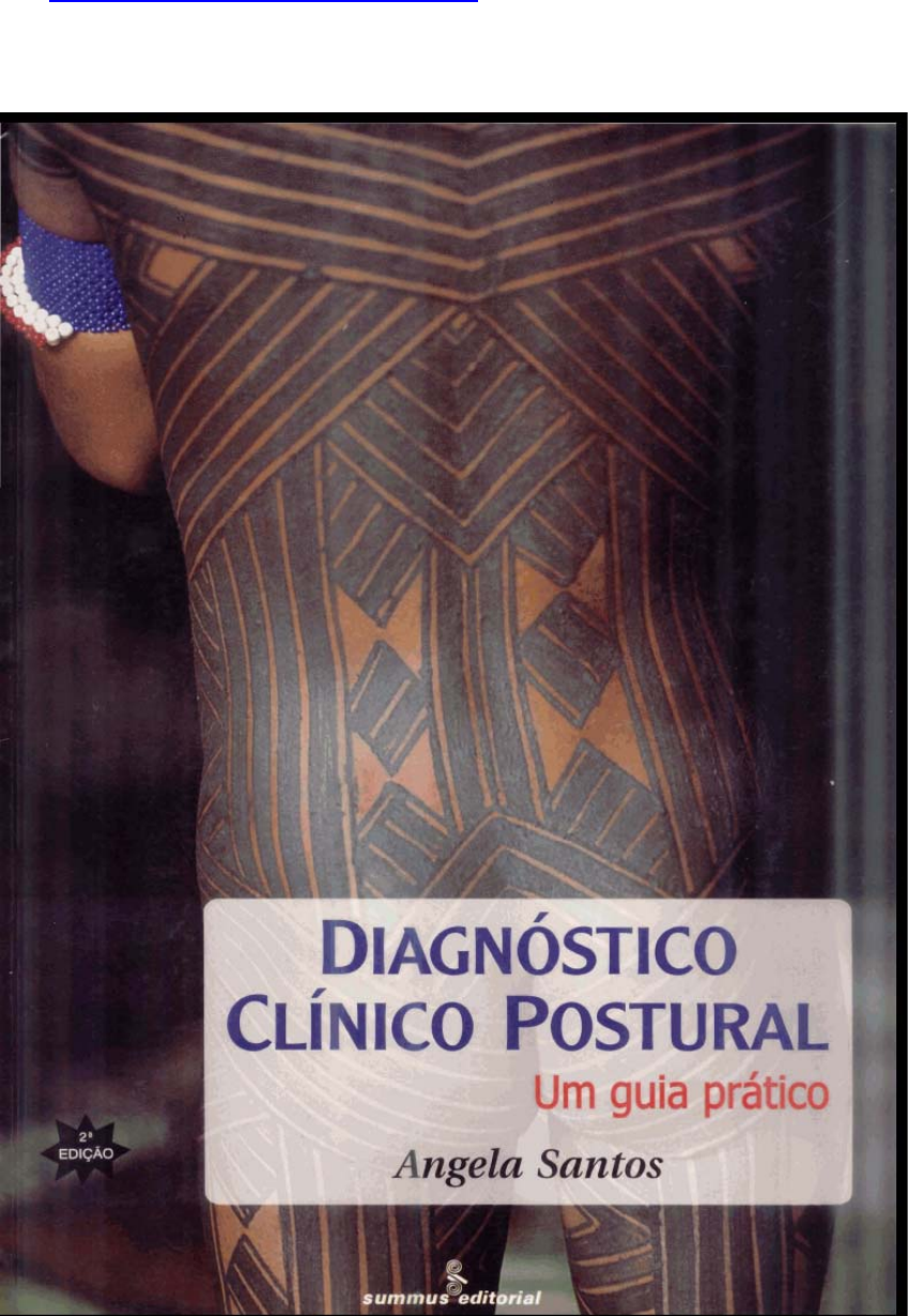 Site: http://geocities.yahoo.com.br/gagaufera2003/ Site: http://geocities.yahoo.com.br/gagaufera2003/ DIAGNÓSTICO CLÍNICO POSTURAL UM GUIA PRÁTICO Escrever este texto foi como escrever memórias. Tudo fluiu sem consultas, as quais foram feitas após a conclusão, para a formulação da bibliografia e alguns ajustes. Isso foi possível graças aos colegas que ao longo destes últimos dezessete anos me ouviram falar, nos seminários de formação contínua em fisioterapia, sobre leituras, pesquisas e cursos reunidos em sínteses que pude repetir e repetir. Assim, aprendia junto. Ao tentar esclarecer dúvidas, avançava um pouco mais. Este trabalho é dedicado a todos eles, que tiveram a generosidade de me ouvir como alunos. A Mareei Bienfait, minha amizade, carinho e reconhecimento. Site: http://geocities.yahoo.com.br/gagaufera2003/ Sumário Prefácio .............................................................................................................. 5 INTRODUÇÃO ................................................................................................... 7 Definição dos termos empregados ................................................................. 7 PELVE................................................................................................................ 9 Equilíbrio frontal pélvico.................................................................................. 9 Equilíbrio sagital pélvico ............................................................................... 11 Equilíbrio horizontal pélvico .......................................................................... 14 TRONCO.......................................................................................................... 16 Gibosidades.................................................................................................. 16 Caída de membros superiores no plano frontal ............................................ 17 Caída de membros superiores no plano sagital............................................ 18 Perfil da cintura no plano frontal ................................................................... 20 Deslocamento do tronco no plano frontal ..................................................... 22 Dois testes acessórios.................................................................................. 25 Teste de flexão dos joelhos....................................................................... 25 Golpe de machado.................................................................................... 26 Mobilidade respiratória ................................................................................. 27 Mobilidade esternal ................................................................................... 27 Mobilidade costal inferior........................................................................... 28 Mobilidade abdominal ............................................................................... 29 CINTURA ESCAPULAR................................................................................... 31 Posicionamento das clavículas..................................................................... 31 Inclinação .................................................................................................. 31 Comprimento das saboneteiras ................................................................ 32 Profundidade das saboneteiras................................................................. 33 Trapézio superior visto de frente I ............................................................. 34 Sulco deltopeitoral..................................................................................... 34 Posicionamento das escápulas .................................................................... 36 Altura das escápulas................................................................................. 36 Báscula das escápulas.............................................................................. 37 Descolamentos ......................................................................................... 39 CERVICAL ....................................................................................................... 41 Alinhamento cervical..................................................................................... 41 Alinhamento cervical no plano frontal ....................................................... 41 Alinhamento cervical no plano sagital ....................................................... 42 Exame cervical detalhado............................................................................. 44 Sintomatologia .......................................................................................... 44 Limitação de movimento ........................................................................... 45 Sinais dolorosos........................................................................................ 45 Anteflexão cervical .................................................................................... 45 Póstero-flexão cervical .............................................................................. 47 Rotação cervical........................................................................................ 49 Lateroflexão cervical ................................................................................. 50 MEMBROS INFERIORES................................................................................ 54 Joelhos ......................................................................................................... 54 Alinhamento dos joelhos no plano sagital ................................................. 54 Alinhamento dos joelhos no plano frontal.................................................. 56 Rotação externa da tíbia ........................................................................... 57 Site: http://geocities.yahoo.com.br/gagaufera200