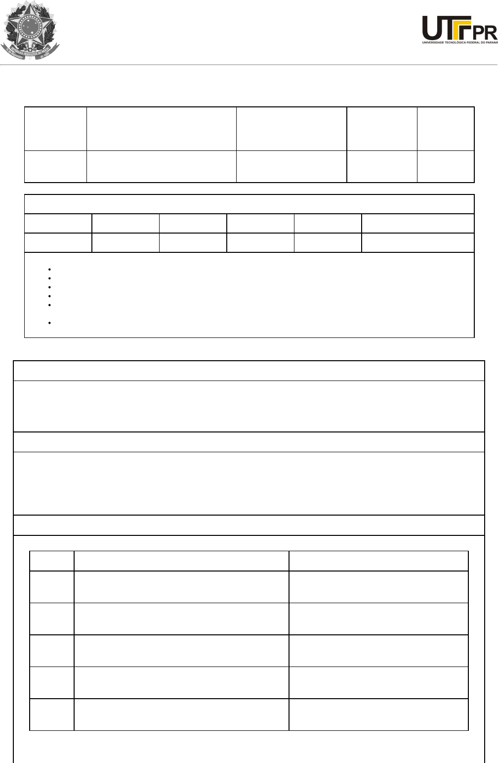 Ministério da Educação Universidade Tecnológica Federal do Paraná Câmpus Londrina Informações da disciplina Código Ofertado Disciplina/Unidade Curricular Modo de Avaliação Modalidade da disciplina Oferta DE61A Desenho Técnico Nota/Conceito E Frequência Presencial Semestral Carga Horária AT AP APS ANP APCC Total 1 2 3 0 0 45 AT: Atividades Teóricas (aulas semanais). AP: Atividades Práticas (aulas semanais). ANP: Atividades não presenciais (horas no período). APS: Atividades Práticas Supervisionadas (aulas no período). APCC: Atividades Práticas como Componente Curricular (aulas no período, esta carga horária está incluída em AP e AT). Total: carga horária total da disciplina em horas. Objetivo Capacitar o aluno a interpretar e desenhar componentes mecânicos, aplicando os princípios, técnicas, normas de representação e especificações. Ementa Material de desenho. Normas técnicas. Linhas técnicas. Caligrafia técnica. Perspectivas. Projeções ortogonais. Cortes. Técnicas de cotagem. Aplicação de escalas. Desenho assistido por computador. Conteúdo Programático Ordem Ementa Conteúdo 1 Material de desenho Manipulação dos instrumentos de desenho. 2 Normas técnicas Aplicação das normas técnicas no desenho técnico mecânico. 3 Linhas técnicas Definição segundo norma dos tipos de linhas em desenho técnico. 4 Caligrafia técnica Definição segundo norma de escrita em desenho técnico. 5 Aplicação de escalas Redução e ampliação de desenhos mecânicos. Ordem Ementa Conteúdo 6 Projeções ortogonais Desenho em primeiro diedro (vista superior, vista frontal e vista lateral) 7 Técnicas de cotagem Identificar através das cotas as dimensões dos objetos mecânicos. 8 Cortes Desenhos em corte total, parcial e meio corte; seções e vistas auxiliares. 9 Perspectivas Desenho mecânico em perspectiva isométrica e cavaleira. 10 Desenho assistido por computador Conhecer e identificar as potencialidades e áreas de aplicação das ferramentas de desenho assistido por computador existente no mercado. 11 Atividades Práticas Supervisionadas Trabalhos individuais de desenho geométrico, em perspectiva e em projeções no primeiro diedro. Bibliografia Básica SILVA, Arlindo. Desenho técnico moderno. 4. ed. Rio de Janeiro, RJ: LTC, 2006. xviii, 475 p. ISBN 8521615221. MANFÉ, Giovanni; POZZA, Rino; SCARATO, Giovanni. Desenho técnico mecânico: curso completo para as escolas técnicas e ciclo básico das faculdades de engenharia. São Paulo, SP: Hemus, 2004. 3 v. ISBN 852890007X (v. 1). LEAKE, James M.; BORGERSON, Jacob L. Manual de desenho técnico para engenharia: desenho, modelagem e visualização. Rio de Janeiro: LTC, 2010. 288 p. ISBN 978-85-216-1737-2. Bibliografia Complementar FRENCH, Thomas Ewing; VIERCK, Charles J. Desenho técnico e tecnologia gráfica. 8. ed. São Paulo, SP: 2005. Editora Globo S.A., 1093 p. ISBN 8525007331. CRUZ, Michele David da. Desenho técnico para mecânica: conceitos, leitura e interpretação . 1.ed. São Paulo: Érica, 2010. 158 p. ISBN 9788536503202. RIBEIRO, Antônio Clélio; PERES, Mauro Pedro; IZIDORO, Nacir. Curso de desenho técnico e AutoCAD. São Paulo: Pearson, 2013. 362 p. ISBN 9788581430843. VENDITTI, Marcus Vinicius dos Reis. Desenho técnico sem prancheta com AutoCAD 2008. 2. ed. Florianópolis: Visual Books, c2007. 284 p. ISBN 9788575022214. FIALHO, Arivelto Bustamante. SolidWorks Premium 2012: teoria e prática no desenvolvimento de produtos industriais : plataforma para projetos CAD/CAE/Cam. 1. ed. São Paulo, SP: Érica, 2013. 600 p. ISBN 9788536504353. # Resumo da Alteração Edição Data Aprovação Data 1 Plano de Ensino inserido no Sistema. Ricardo De Vasconcelos Salvo 26/08/2015 Ricardo De Vasconcelos Salvo 17/09/2015 2 Correção da bibliografia. Ricardo De Vasconcelos Salvo 09/03/2017 Ricardo De Vasconcelos Salvo 09/03/2017 28/06/2018 13:47