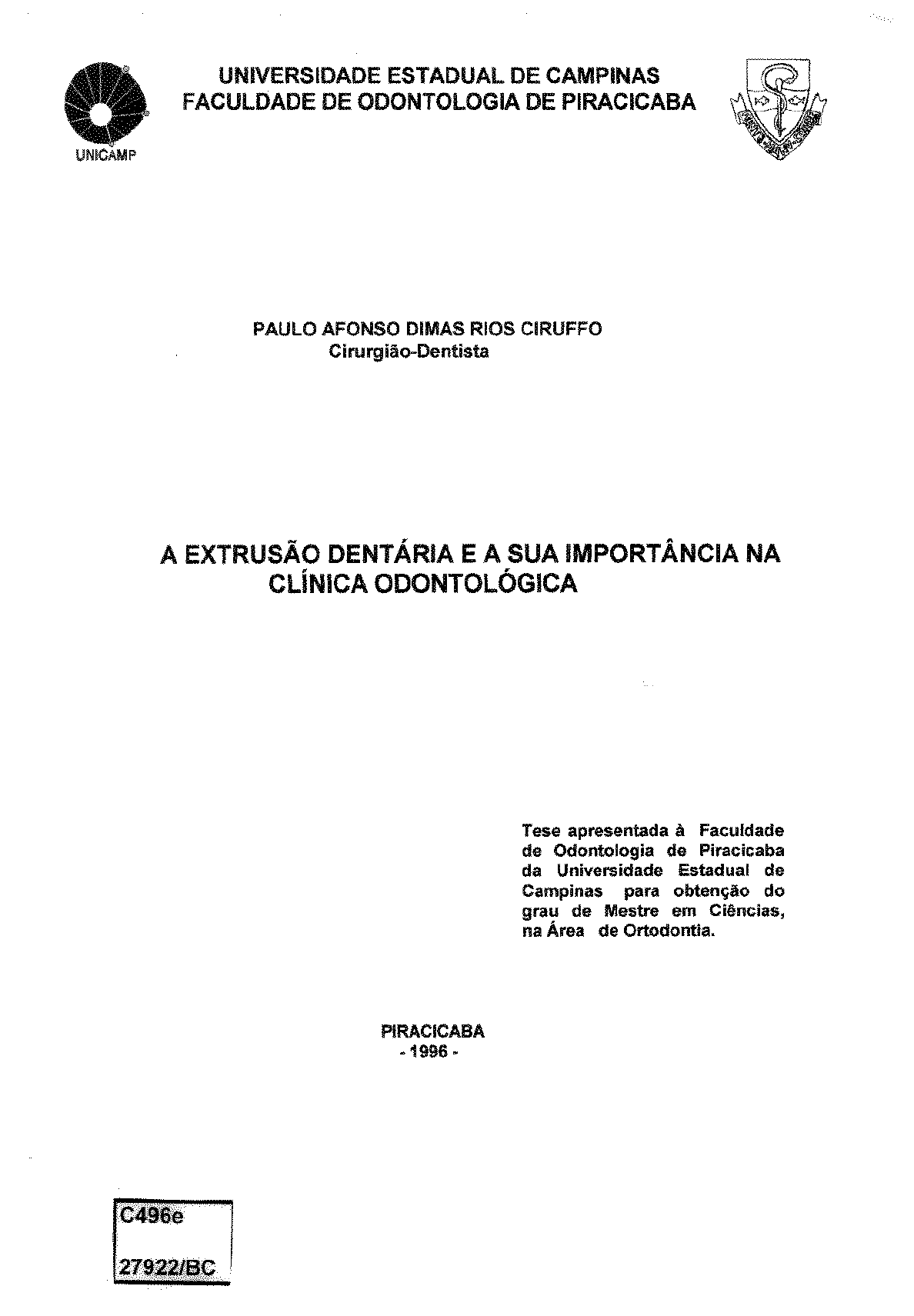 Campinas, Faculdade de Odontologia de Piracicaba. 111. Título