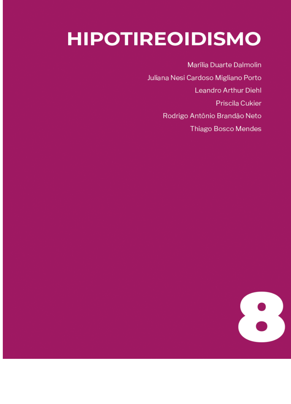 Quando o hipotireoidismo é subclínico, o que fazer? Devo tratar? 8.1 INTRODUÇÃO O hipotireoidismo é uma das doenças endócrinas mais comuns, geralmente provocado pela síntese deficiente de hormônios tireoidianos. Para melhor entendimento da etiologia, do quadro clínico e do tratamento dessa e de outras doenças associadas à tireoide, apresentaremos brevemente a anatomia e a fisiologia da glândula em questão. 8.1.1 Anatomia da tireoide Figura 8.1 - Localização anatômica Fonte: adaptada de What is the embryology and anatomy of the thyroid gland relative to thyroidectomy?, 2018. A glândula tireoide tem origem embriológica no assoalho da faringe, de onde migra em direção inferior, bifurca-se e forma os dois lobos tireoidianos, unidos por um istmo. O trajeto da descida da tireoide forma o ducto tireoglosso, cujos remanescentes podem permanecer na vida adulta, formando cistos. O lobo piramidal, um pequeno apêndice de tecido tireóideo fixado ao istmo — um pouco à esquerda ou à direita da linha média da laringe —, representa a extremidade mais caudal do ducto tireoglosso e está presente em cerca de 80% dos adultos. A tireoide apresenta dois tipos celulares predominantes: as células foliculares, que formam unidades esféricas chamadas folículos, cuja luz é preenchida por coloide, substância precursora dos hormônios tireoidianos; e as células parafoliculares, ou células C, que formam ninhos entre os folículos e produzem calcitonina e outros neuropeptídios. 8.1.2 Fisiologia da tireoide Os principais hormônios produzidos pela tireoide são a tetraiodotironina ou tiroxina (T4) e a tri-iodotironina (T3). Ambos se originam da adição de radicais de iodo a resíduos de tirosina contidos em uma grande glicoproteína de 660 kDa, chamada tireoglobulina (Tg), secretada pelas células foliculares e armazenada no interior do folículo tireoidiano. A Tg corresponde a 70 a 80% do conteúdo proteico da tireoide. A captação de iodo da corrente sanguínea é realizada de forma ativa pela proteína Na-I-Symporter (NIS), presente na membrana basal da célula folicular. A enzima responsável pela oxidação dos íons de iodo e sua ligação à Tg é a tireoperoxidase (TPO), presente na membrana apical das células foliculares. Inicialmente, são formadas moléculas contendo um resíduo de tirosina, ligado à Tg, e uma molécula de iodo — monoiodotirosina (MIT) — ou duas moléculas de iodo — diiodotirosina (DIT). A MIT e a DIT são clivadas e liberadas da Tg pela ação da TPO, fagocitadas e ligadas, de forma que duas DITs formam o T4 e uma DIT, somada a uma MIT, formam o T3 (Figura 8.2). A secreção tireoidiana é composta de 90% de T4 e 10% de T3, além de pequenas quantidades de Tg e outras moléculas. O T3 e o T4 circulam no plasma ligados a proteínas carreadoras, como a globulina ligadora da tiroxina (TBG), e a albumina. Apenas uma pequena fração desses hormônios — 0,04% do T4 e 0,4% do T3 — circula no plasma de forma livre, não ligada a proteínas, e é essa a responsável pela atividade biológica dos hormônios tireoidianos. A regulação da função tireoidiana é mediada, principalmente, pelo hormônio hipofisário tireotrofina, ou TSH, que estimula a síntese e a liberação de hormônios, bem como o crescimento da tireoide. O TSH, por sua vez, é regulado positivamente pelo hormônio hipotalâmico liberador de tireotrofina (TRH) e negativamente pela somatostatina. O T3 secretado liga-se a receptores no hipotálamo e na hipófise, em que inibe a secreção de TRH e TSH por feedback negativo, regulando, assim, a função tireoidiana (Figura 8.3). Figura 8.2 - Síntese dos hormônios tireoidianos (T3 e T4) na célula folicular da tireoide Fonte: acervo Medcel. 8.1.3 Ações dos hormônios tireoidianos Apesar de o T4 ser o hormônio mais abundante nas secreções da tireoide, é o T3 que é o responsável pela maior parte da atividade biológica da glândula. Isso porque o T3 tem uma afinidade pelo receptor do hormônio tiroidiano quatro a 10 vezes mais potente do que o T4. O T3 intracelular tem duas fontes principais: síntese a partir de T4 e secreção pela própria tireoide. A desiodação, ou seja, retirada de um átomo de iodo, do T4, tornando-o T3, ocorre por meio da ação de enzimas chamadas 5’-desiodases, presentes em praticamente todos os órgãos e sistemas. De fato, a conversão periférica de T4 em T3 é responsável pela maior parte do T3 circulante. O T3 liga-se a receptores nucleares pertencentes à superfamília dos receptores retinoides, presentes em praticamente todos os órgãos, regulando a transcrição de sequências gênicas específicas, que levarão às mais diversas ações biológicas do hormônio. Quadro 8.1 - Principais efeitos da ligação de tri-iodotironina aos seus receptores específicos nos tecidos 8.2 DEFINIÇÃO O hipotireoidismo é uma síndrome clínica decorrente da deficiência dos hormônios tireoidianos, geralmente devido a uma produção reduzida desses hormônios pela tireoide ou, em raros casos, devido à ação deficiente dos mesmos. Pode ter ampla gama de manifestações clínicas, variando desde quadros oligossintomáticos ou mesmo assintomáticos, até um quadro extremamente grave com alta mortalidade, o coma mixedematoso. Os sintomas mais comuns são astenia, sonolência, intolerância ao frio, pele seca e descamativa, voz arrastada, hiporreflexia profunda, edema facial, anemia e bradicardia. Pode ocorrer em todas as faixas etárias, inclusive no período neonatal, e suas manifestações clínicas variam conforme a faixa etária e o grau de disfunção tireoidiana. Em crianças, manifesta-se, principalmente, como retardo do crescimento e do desenvolvimento neuropsicomotor. Em idosos, pode manifestar- se de forma atípica, gerando demência e insuficiência cardíaca. 8.3 EPIDEMIOLOGIA A prevalência do hipotireoidismo é extremamente variável nas diversas partes do mundo, sendo mais frequente em lo
