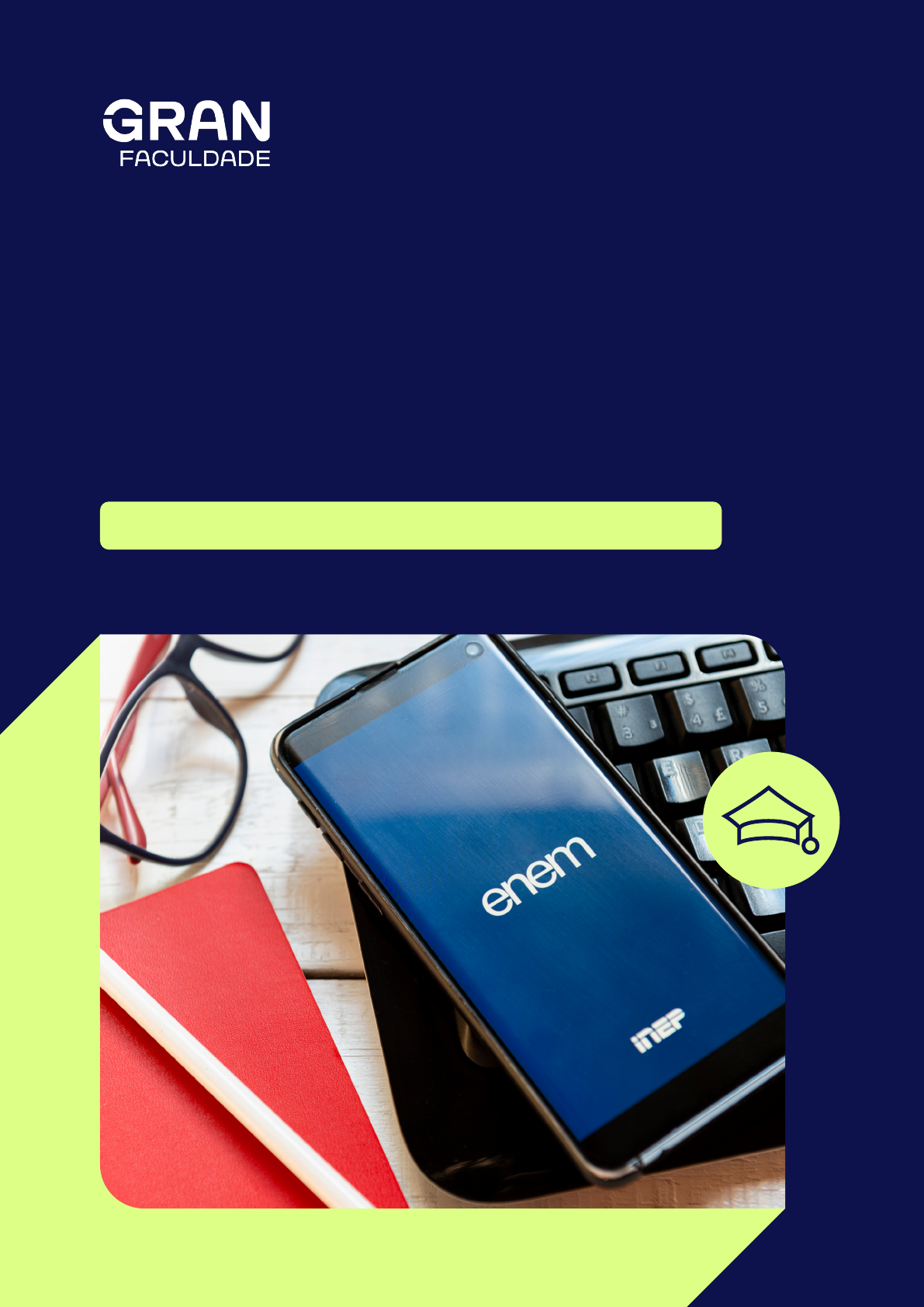 Manual do ENEM 2025 Tudo o que você precisa saber! Manual do Enem 2025 | 2 Introdução Olá, que bom ter você aqui! Esperamos que aproveite o manual do Enem da Gran Faculdade. Nas próximas páginas você terá acesso a várias informações importantes para dar um super match no Enem: o que é o Exa- me, as principais datas, o que estudar para cada área de conhecimento e dicas para realizar uma excelente redação até chegar na nota final. Você sabe como calcular? Vamos te explicar tudo, ok? O Exame Nacional do Ensino Médio, mais conhecido pela sua abreviação de ENEM, é implantado na educação brasileira como instrumento para verificar a qualida- de da relação do ensino e aprendizagem com foco no ensino médio, última etapa da educação básica. Nos últimos anos, o ENEM ganhou um peso ainda maior, pois substituiu os vestibulares tradicionais. Deixa eu te contar como era a entrada no ensino superior antes do ENEM: cada Faculdade, Centro Universitário ou Uni- versidade apresentava um calendário individual para a realização da prova que permitiria a entrada naquela ins- tituição. Era comum, a realização de 2, 3 ou até 10 provas em dias diferentes para tentar uma vaga no ensino supe- rior. Ah, para cada vestibular, uma taxa de inscrição deveria ser paga. E ainda havia a possibilidade das provas acon- tecerem no mesmo dia. O ENEM, como exame nacional, possibi- litou entre outras questões a entrada no ensino superior. Atualmente é possível pagar uma única taxa ou mesmo pedir isenção (saiba tudo lá na página 10), fa- zer uma única prova e ter a possibilidade de escolher a instituição de ensino dos sonhos… O ENEM democratiza o acesso ao ensino. É possível que ainda reste dúvidas so- bre a escolha do curso. Muitas pessoas crescem com um sonho e seguem até a profissionalização. Outras, ao cresce- rem abandonam o sonho da infância. Se te resta alguma dúvida, que tal fazer um teste vocacional gratuito? Esperamos que as próximas páginas te orientem desde a escolha do curso até a realização da sua prova. Acreditamos demais no seu potencial e seguimos por aqui na torcida pela sua aprovação. Um forte abraço bem quentinho! Stella Silva Coordenadora da Gran Faculdade https://www.grancursosonline.com.br/teste-vocacional/teste-vocacional-geral?&utm_medium=ppc&utm_campaign=&utm_term=&gclid=CjwKCAjw36GjBhAkEiwAKwIWyVW7XHsk7nUXwjWmafmY9ze43FXDVSLdxe39lep0iJAZ785H_eddSxoCpRMQAvD_BwE&gclsrc=aw.ds Manual do Enem 2025 | 3 Sumário 2 | Introdução 4 | Enem: o que é, sua história e importância História e Importância .................................................................................................... 4 O Enem hoje ..................................................................................................................... 6 Tudo sobre o ENEM 2024 ................................................................................................ 9 Quem pode fazer? ........................................................................................................... 9 Datas Importantes .......................................................................................................... 10 Taxa de Inscrição ............................................................................................................. 10 11 | Atendimento Especial Quem tem direito a atendimento especial no ENEM 2024? ....................................... 11 Como é o atendimento especial no ENEM 2024? ......................................................... 12 Quais são os recursos de acessibilidade do ENEM 2024? ............................................ 13 Como comprovar a necessidade de atendimento especial? ...................................... 14 15 | O que estudar para o Enem? 34 | Dicas para o dia da prova do Enem Como saber meu local de prova? ................................................................................... 35 O que fazer no caso de não ter documento oficial original em mãos no dia da prova ou se o documento estiver ilegível? .................................................................... 36 O que é e como funciona a reaplicação da prova? ....................................................... 37 Saiu o resultado do Enem, e agora? .............................................................................. 37 Como é calculada a nota do ENEM? ............................................................................... 38 O que é nota de corte do ENEM? ................................................................................... 38 Em quais programas posso usar a minha nota do Enem? .......................................... 39 Outras dúvidas sobre o Enem ........................................................................................ 42 44 | Vem pra Gran Faculdade! Cursos que qualificam para iniciativa pública e privada ............................................. 44 100% Digital .................................................................................................................... 44 Comece quando quiser .................................................................................................. 45 Corpo pedagógico qualificado ...................................................................................... 45 Cursos reconhecidos pelo MEC com nota máxima! .................................................... 45 Certificação Intermediária ............................................................................................. 45 Biblioteca Digital ............................................................................................................. 46 Cupons de desconto ...................................................................................................... 46 Plataforma moderna ...................................................................................................... 46 Parcelamento recorrente ....................