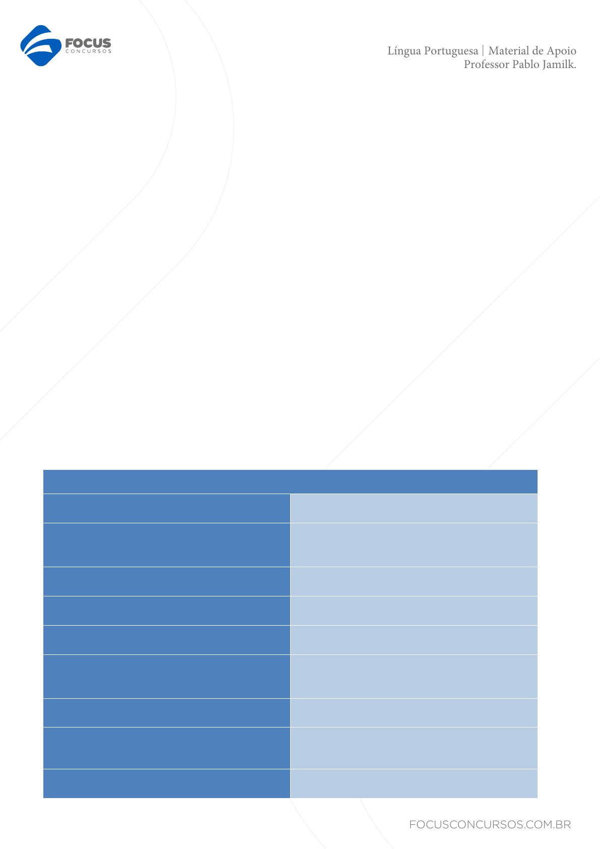 FOCUSCONCURSOS.COM.BR Língua Portuguesa | Material de Apoio Professor Pablo Jamilk. Conjunções subordinativas adverbiais Olá, guerreiro! As conjunções subordinativas adverbiais são importantes, pois costumam aparecer em várias questões de concurso público. É preciso que você saiba reconhecer o sentido de cada conjunção ou locução conjuntiva. Isso ajuda muito na hora de fazer permuta (troca de elementos nas sentenças). b). Adverbiais: – Apresentam uma circunstância de natureza adverbial. – Introduzem uma ORAÇÃO SUBORDINADA ADVERBIAL. Comparação Didática • Período Simples: – Neste dia fatídico, ele abandonou a esposa. • Período Composto: – Quando se cansou daquilo, ele abandonou a esposa. Tabela de conjunções Veja uma tabela com as conjunções subordinativas, para que você consiga estudar e decorar esses elementos: Categoria Conjunções Causal: Já que, como, porque uma vez que Comparativa: Como, mais (do) que, menos (do) que, tanto quanto, tal que. Condicional: Caso, se, contanto, desde que. Consecutiva: Tanto que, de modo que, de sorte que. Conformativa: Conforme, consoante, segundo. Concessiva: Embora, ainda que, mesmo que, conquanto, apesar de que. Final: Para que, a fim de que, porque. Proporcional: À medida que, à proporção que, ao passo que. Temporal: Quanto, sempre que, logo que, mal. 1 FOCUSCONCURSOS.COM.BR Língua Portuguesa | Material de Apoio Professor Pablo Jamilk. Vamos aos exemplos! É preciso que você anote todas as análises para compreender a fundamentação dos conteúdos! • Já que houve consenso, tudo ficou bem. • Meu aluno estuda como quem quer passar. • Caso ele venha, avise sobre as dificuldades. • Cesário investiu seu dinheiro tanto que montou uma bela empresa. • A empregada limpou a casa conforme a patroa pediu. • Embora não pareça ser possível, estudarei todos os dias. • Fez as revisões para que não perdesse o foco. • João ficava extenuado à medida que levantava os pesos. • Assim que a vimos, decidimos ajudar. 2