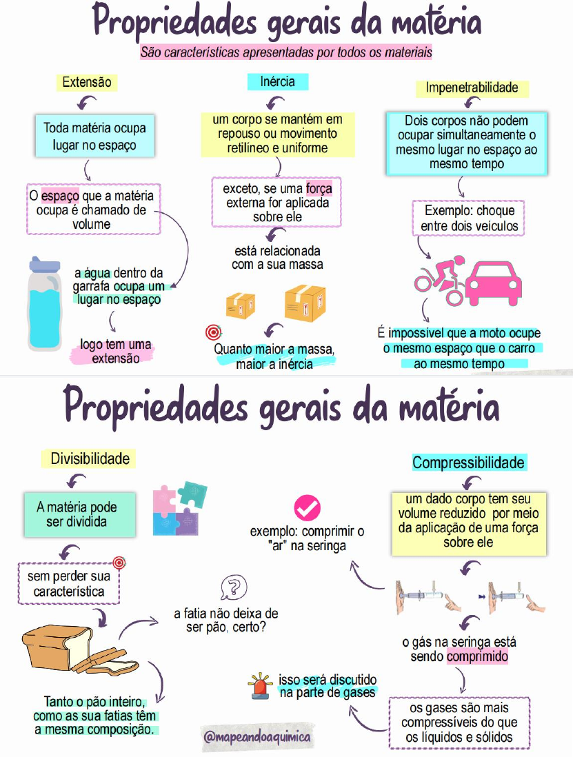 ATIVIDADE O que são Propriedades gerais da matéria? São características apresentadas por todos os materiais O que São Propriedades Específicas da matéria? São características particulares de cada material São Propriedades gerais da matéria? Extensão Inércia Impenetrabilidade Divisibilidade Compressibilidade São Propriedades Específicas da matéria? Ponto de Fusão (PF) Ponto de Ebulição (PE) Densidade (d) Dureza Maleabilidade Ductibilidade Solubilidade O que são Propriedades Organolépticas? São percebidas pelos sentidos humanos São Propriedades Organolépticas? são elas: Cor - Percebida pela visão, Odor - Percebida pelo olfato e Sabor - Percebida pelo paladar Atividade 1 - O que são fenômenos físicos? São aqueles que não causam alteração na composição do material. 2 - As transformações físicas podem ser reversíveis? As transformações físicas são reversíveis. 3 - Quais as transformações físicas mais comuns? Sólido, líquido e gasoso, Outros exemplos de transformações físicas, Mudança de forma e Dissolução. 4 - O que são fenômenos químicos? São aqueles que causam alteração na composição do material. 5 - A combustão é outro exemplo de transformação química e a ferrugem é um exemplo de corrosão e ocorre por meio de uma reação química, elas podem ser reversíveis? Perceba que as transformações químicas não são reversíveis e se eu queimar um papel não tenho como desfazer o processo. 6 - o que são Alótropos? São substâncias diferentes formadas pelo mesmo elemento 7 - O que é atomicidade? quantidade de átomos 8 - Qual a atomicidade do ozônio? a) 1 b) 2 c) 3 d) 4 e) 5 9 - Além do aspecto da atomicidade do alótropos que outra diferença existe entre alótropos? A forma como os átomos estão organizados em cada substância 10 - Um alótropo sempre será mais estável do que outro, Quem é mais estável no caso do ozônio e do oxigênio? O gás oxigênio é mais estável 11 - De qual forma o alótropo mais instável costuma se transformar no mais estável? De forma espontânea. 12 -(PUC-MG) São elementos que apresentam formas alotrópicas: a) hidrogênio e oxigênio b) fósforo e enxofre c) carbono e nitrogênio d) cálcio e silício .