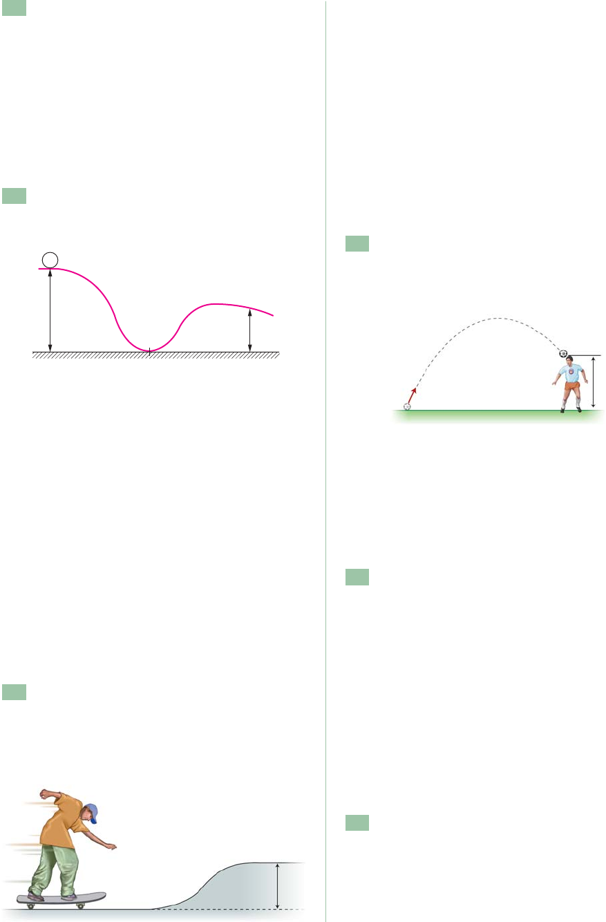 34 SIMULADÃO 181 (Unimep-SP) Uma pedra com massa m � 0,20 kg é lançada verticalmente para cima com energia cinética EC � 40 J. Considerando-se g � 10 m/s2 e que em virtude do atrito com o ar, durante a subida da pedra, é gerada uma quantida- de de calor igual a 15 J, a altura máxima atingida pela pedra será de: a) 14 m c) 10 m e) 15 m b) 11,5 m d) 12,5 m 182 (Unipa-MG) Uma pequena esfera é solta de uma altura HA (onde HA � HC) para realizar o movimento sobre a superfície regular mostrada na figura abaixo. Sabendo-se que a velocidade da bolinha no ponto C é nula, foram feitas as seguintes afirmações: I – apenas uma parte da energia potencial inicial da esfera foi mantida como energia potencial no fi- nal do movimento. II – as forças que atuam no experimento acima são conservativas. III – a energia mecânica da esfera no ponto A é igual à sua energia mecânica no ponto B. Pode-se afirmar que: a) apenas a afirmativa I é verdadeira b) apenas as afirmativas I e II são verdadeiras c) apenas as afirmativas I e III são verdadeiras d) apenas as afirmativas II e III são verdadeiras e) todas as afirmativas são verdadeiras 183 (Vunesp-SP) Para tentar vencer um desnível de 0,5 m entre duas calçadas planas e horizontais, mos- tradas na figura, um garoto de 50 kg, brincando com um skate (de massa desprezível), impulsiona-se até adquirir uma energia cinética de 300 J. Desprezando-se quaisquer atritos e considerando-se g � 10 m/s2, pode-se concluir que, com essa energia: a) não conseguirá vencer sequer metade do desnível. b) conseguirá vencer somente metade do desnível. c) conseguirá ultrapassar metade do desnível, mas não conseguirá vencê-lo totalmente. d) não só conseguirá vencer o desnível, como ainda lhe sobrarão pouco menos de 30 J de energia cinética. e) não só conseguirá vencer o desnível, como ainda lhe sobrarão mais de 30 J de energia cinética. 184 (UERJ) Numa partida de futebol, o goleiro bate o tiro de meta e a bola, de massa 0,5 kg, sai do solo com velocidade de módulo igual a 10 m/s, confor- me mostra a figura. No ponto P, a 2 metros do solo, um jogador da de- fesa adversária cabeceia a bola. Considerando g � 10 m/s2, a energia cinética da bola no ponto P vale, em joules: a) 0 c) 10 b) 5 d) 15 185 (UEPA) As conhecidas estrelas cadentes são na verdade meteoritos (fragmentos de rocha extrater- restre) que, atraídos pela força gravitacional da Ter- ra, se aquecem ao atravessar a atmosfera, produ- zindo o seu brilho. Denotando a energia cinética por EC, a energia potencial por EP e a energia térmica por Et, a seqüência de transformações de energia envolvidas desde o insta2nte em que o meteorito atinge a atmosfera são, nesta ordem: a) EC → EP e EC → Et d) EP → Et e Et → EC b) EC → EP e EP → Et e) Et → EP e Et → EC c) EP → EC e EC → Et 186 (Esam-RN) Uma criança de massa igual a 20 kg desce de um escorregador com 2 m de altura e che- ga no solo com velocidade de 6 m/s. Sendo 10 m/s2, o módulo da aceleração da gravidade local, a energia mecânica dissipada, em joules, é igual a: a) 10 b) 20 c) 30 d) 40 e) 50 HA HC A B C 0,5 m v → 2 m P SIMULADÃO 35 187 (ENEM) A tabela a seguir apresenta alguns exemplos de processos, fenômenos ou objetos em que ocorrem transformações de energia. Nessa tabe- la, aparecem as direções de transformações de ener- gia. Por exemplo, o termopar é um dispositivo onde energia térmica se transforma em energia elétrica. Dentre os processos indicados na tabela, ocorre con- servação de energia: a) em todos os processos b) somente nos processos que envolvem transfor- mações de energia sem dissipação de calor c) somente nos processos que envolvem transfor- mações de energia mecânica d) somente nos processos que não envolvem ener- gia química e) somente nos processos que não envolvem nem energia química nem energia térmica 188 (PUC-SP) Num bate-estaca, um bloco de ferro de massa superior a 500 kg cai de uma certa altura sobre a estaca, atingindo o repouso logo após a queda. São desprezadas as dissipações de energia nas engrenagens do motor. A respeito da situação descrita são feitas as seguin- tes afirmações: III – Houve transformação de energia potencial gravitacional do bloco de ferro, em energia cinética, Considerando que os cabos são ideais, pode-se con- cluir que a tração no cabo na posição 2 vale. a) 1 600 N c) 3 600 N e) 5 600 N b) 2 000 N d) 4 800 N que será máxima no instante imediatamente anteri- or ao choque com a estaca. III – Como o bloco parou após o choque com a esta- ca, toda energia do sistema desapareceu. III – A potência do motor do bate-estaca será tanto maior, quanto menor for o tempo gasto para erguer o bloco de ferro até a altura ocupada por ele, antes de cair. É(são) verdadeira(s): a) somente I d) somente I e III b) somente II e) todas as afirmações c) somente I e II 189 (Cesupa) No playcenter de São Paulo, uma das mais emocionantes diversões é o Skycoaster, repre- sentado na figura abaixo, com capacidade para até 3 pessoas. Os pontos 1 e 3 são extremos da trajetó- ria, com forma aproximada de um arco de circunfe- rência, percorrida pelos corajosos usuários. O ponto 2 é o mais baixo dessa trajetória. A partir do ponto 1 inicia-se o movimento pendular sem velocidade inicial. A tabela abaixo indica dados aproximados para essa situação. De Em Elétrica Química Mecânica Térmica Elétrica transformador termopar Química reações endotérmicas Mecânica dinamite pêndulo Térmica fusão Altura do ponto 1 55 m Altura do ponto 3 21 m Velocidade no ponto 2 30 m/s Comprimento do cabo 50 m Aceleração da gravidade 10 m/s2 Massa total oscilante 200 kg 1 2 3 36 SIMULADÃO 190 Considerando os dados da questão anterior, a energia mecânica, em joule, dissipada durante o movimento, desde o ponto 1 até o ponto 3, vale: a) 42 000 c) 100 000 e) 152 000 b) 68 000 d) 110 000 191 (UFJF-MG) Um trenó, c