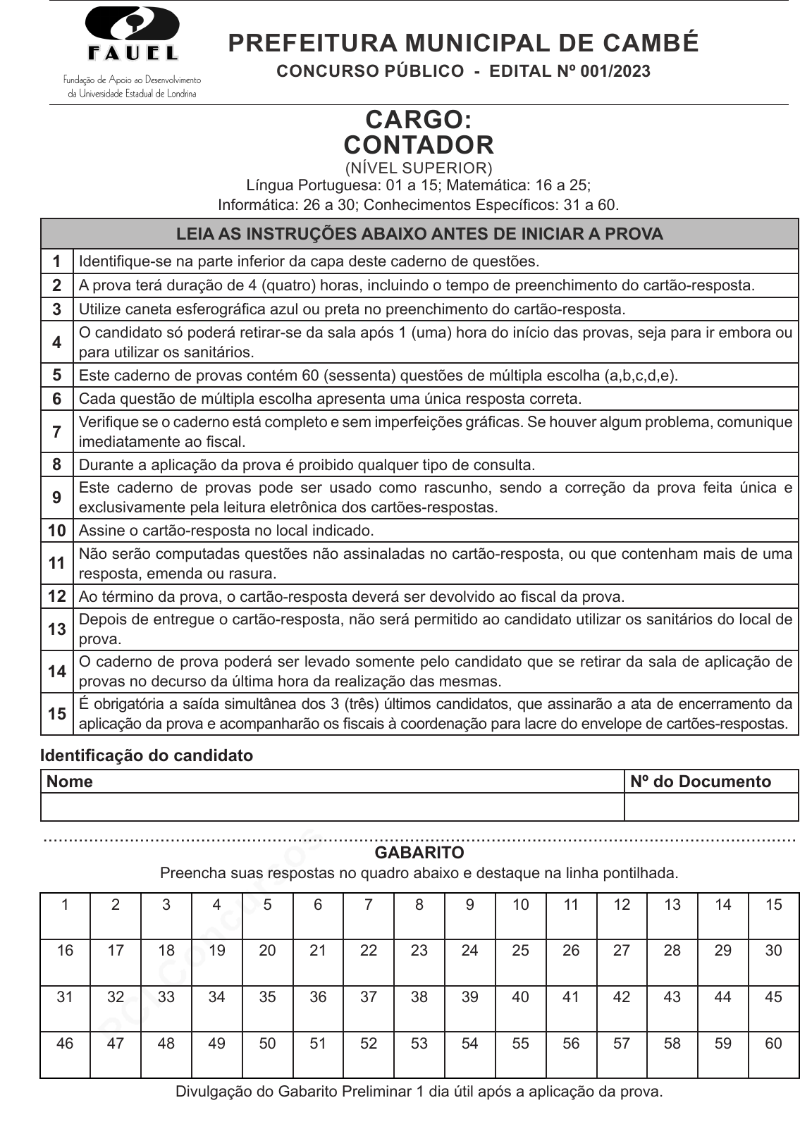 pcimarkpci MDAwMDowMDAwOjAwMDA6MDAwMDowMDAwOmZmZmY6YmFmOTpiNDVi:VGh1LCAyMyBKYW4gMjAyNSAxMzoyOTowNiAtMDMwMA== www.pciconcursos.com.br PREFEITURA MUNICIPAL DE CAMBÉ CONCURSO PÚBLICO - EDITAL Nº 001/2023 CARGO: CONTADOR (NÍVEL SUPERIOR) Língua Portuguesa: 01 a 15; Matemática: 16 a 25; Informática: 26 a 30; Conhecimentos Específicos: 31 a 60. LEIA AS INSTRUÇÕES ABAIXO ANTES DE INICIAR A PROVA 1 Identifique-se na parte inferior da capa deste caderno de questões. 2 A prova terá duração de 4 (quatro) horas, incluindo o tempo de preenchimento do cartão-resposta. 3 Utilize caneta esferográfica azul ou preta no preenchimento do cartão-resposta. 4 O candidato só poderá retirar-se da sala após 1 (uma) hora do início das provas, seja para ir embora ou para utilizar os sanitários. 5 Este caderno de provas contém 60 (sessenta) questões de múltipla escolha (a,b,c,d,e). 6 Cada questão de múltipla escolha apresenta uma única resposta correta. 7 Verifique se o caderno está completo e sem imperfeições gráficas. Se houver algum problema, comunique imediatamente ao fiscal. 8 Durante a aplicação da prova é proibido qualquer tipo de consulta. 9 Este caderno de provas pode ser usado como rascunho, sendo a correção da prova feita única e exclusivamente pela leitura eletrônica dos cartões-respostas. 10 Assine o cartão-resposta no local indicado. 11 Não serão computadas questões não assinaladas no cartão-resposta, ou que contenham mais de uma resposta, emenda ou rasura. 12 Ao término da prova, o cartão-resposta deverá ser devolvido ao fiscal da prova. 13 Depois de entregue o cartão-resposta, não será permitido ao candidato utilizar os sanitários do local de prova. 14 O caderno de prova poderá ser levado somente pelo candidato que se retirar da sala de aplicação de provas no decurso da última hora da realização das mesmas. 15 É obrigatória a saída simultânea dos 3 (três) últimos candidatos, que assinarão a ata de encerramento da aplicação da prova e acompanharão os fiscais à coordenação para lacre do envelope de cartões-respostas. Identificação do candidato Nome Nº do Documento .................................................................................................................................................... GABARITO Preencha suas respostas no quadro abaixo e destaque na linha pontilhada. 1 2 3 4 5 6 7 8 9 10 11 12 13 14 15 16 17 18 19 20 21 22 23 24 25 26 27 28 29 30 31 32 33 34 35 36 37 38 39 40 41 42 43 44 45 46 47 48 49 50 51 52 53 54 55 56 57 58 59 60 Divulgação do Gabarito Preliminar 1 dia útil após a aplicação da prova. pcimarkpci MDAwMDowMDAwOjAwMDA6MDAwMDowMDAwOmZmZmY6YmFmOTpiNDVi:VGh1LCAyMyBKYW4gMjAyNSAxMzoyOTowNiAtMDMwMA== www.pciconcursos.com.br pcimarkpci MDAwMDowMDAwOjAwMDA6MDAwMDowMDAwOmZmZmY6YmFmOTpiNDVi:VGh1LCAyMyBKYW4gMjAyNSAxMzoyOTowNiAtMDMwMA== www.pciconcursos.com.br 1 QUESTÕES DE 01 A 15 - LÍNGUA PORTUGUESA Leia o texto para responder as questões 01 a 08. “Educação Brasileira: Cara e falha? É inegável o avanço no acesso da população à educação nas últimas duas décadas: a média de anos de es- tudos aumentou em 55% nos últimos 20 anos e pesquisas recentes mostram que 93% das crianças entre 6 e 14 anos estão matriculadas no ensino fundamental. Todavia, quando a questão é qualidade do ensino, o Brasil continua, ano após ano, amargando as últimas colocações em rankings internacionais como o PISA, onde ran- queia 59.º em leitura, 73.º em matemática e 67.º em ciências humanas dentro dos 79 países analisados. No tocante ao orçamento, dados do Banco Mundial de 2010 demonstram que as despesas com educação no Brasil representam 21% do PIB per capita, muito similar a média da OCDE de 22%, semelhança essa que se mantém até os dias atuais. Chame de investimento; chame de gasto, a verdade é que a quantidade de dinhei- ro que se coloca na educação brasileira é proporcionalmente semelhante à de países desenvolvidos. Assim, se há evidências que a área da educação não sofre subfinanciamento orçamentário, qual é o real impacto do aumento ou diminuição da alocação orçamentária na qualidade da educação pública? Será que existe algum fator que contribui mais significativamente para a melhora no ensino público brasileiro do que o financiamento? Um estudo da FGV/IBRE, publicado por Joana Monteiro, busca responder essa questão. Nele foram analisa- dos a qualidade dos serviços educacionais de municípios produtores e não produtores de petróleo: graças aos royalties, as cidades petrolíferas gastam consideravelmente mais do que as não petrolíferas. Após analisar o censo escolar de 239 dos 256 municípios localizados na costa brasileira, nenhum dentre os quatro indicadores estudados indicaram associação entre maiores despesas e melhores rendimentos. As notas dos alunos na Ava- liação Nacional do Rendimento Escolar confirmam essa ausência de associação: “gastos extras em educação gerados pelos recursos de royalties dos municípios produtores da costa não causaram nenhuma melhora nas notas gerais”. A ausência de melhora no desempenho escolar pode ser explicada por alguns pontos. O principal é o mal ge- renciamento dos recursos direcionados ao financiamento da educação. Muitas perdas acabam ocorrendo por corrupção na alocação de recursos, que ainda persiste como um problema no Brasil, ou até mesmo por conta do método de reajuste e aumento salarial de funcionários da área. Um estudo da University College London demonstrou que quando aumentos salariais de docentes não estão diretamente relacionados a uma melhora no desempenho dos professores, situação frequentemente observada no Brasil, eles falham em melhorar a qualidade do ensino como um todo. A melhor forma, portanto, de causar um impacto na educação é com uma melhor gestão escolar." (Texto adaptado: Gustavo Arienzo. Disponível em: https://jpfgv.com.br/artigo-de-opiniao-e