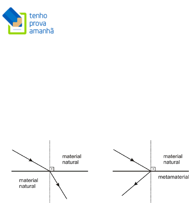 Provas ENEM Física www.tenhoprovaamanha.com.br 110 www.tenhoprovaamanha.com.br Ao olhar para trás, por visão direta, ele percebe que não estava tão próximo assim da parede. Resposta da questão 97: [D] Nos materiais naturais, quando ocorre incidência oblíqua da luz, os raios incidente e refratado estão em meios diferentes e em quadrantes opostos, definidos pela superfície e pela normal a essa superfície. No metamaterial, esses raios estão em meios diferentes, mas em quadrantes adjacentes. Resposta da questão 98: [B] O campo elétrico gerado pelos corpos eletrizados faz com que partículas existentes no interior das lâmpadas movam-se, chocando-se umas com as outras, emitindo luz. Resposta da questão 99: [B] No interior de um condutor (caixa metálica) em equilíbrio eletrostático, as cargas distribuem- se na superfície externa do condutor, anulando o campo elétrico no seu interior. Esse fenômeno é conhecido como blindagem eletrostática. Resposta da questão 100: [E] Dispositivos que armazenam carga elétrica são chamados capacitores ou condensadores. A carga armazenada é descarregada num momento oportuno, como por exemplo, através do filamento de uma lâmpada de máquina fotográfica, emitindo um flash. Resposta da questão 101: [B] A despolarização ocorre na fase em que o potencial sobe, que é a fase 0. A repolarização ocorre quando o potencial está voltando ao potencial de repouso, o que ocorre na fase 3. Provas ENEM Física www.tenhoprovaamanha.com.br 111 www.tenhoprovaamanha.com.br Resposta da questão 102: [E] Aplicando a 2ª lei de Ohm: Resposta da questão 103: [E] Os três dispositivos estão ligados em paralelo, submetidos à ddp Calculando a corrente total máxima (I): Resposta da questão 104: [C] O brilho de uma lâmpada depende da sua potência. A lâmpada de maior potência apresenta brilho mais intenso. Com a chave na posição A, as lâmpadas 1 e 3 ficam ligadas em paralelo e a lâmpada 2 não acende; sendo R a resistência de cada lâmpada, a resistência equivalente é A potência dissipada na lâmpada 1 é metade da potência dissipada na associação Se a tensão fornecida pelo gerador é U, temos: Com a chave na posição B, as lâmpadas 1 e 3 continuam em paralelo e em série com a lâmpada 2. A resistência equivalente a corrente total a corrente na lâmpada 1 e a potência dissipada na lâmpada 1 são: Provas ENEM Física www.tenhoprovaamanha.com.br 112 www.tenhoprovaamanha.com.br Assim: Assim, a lâmpada 1 brilhará mais quando a chave estiver em A. Resposta da questão 105: [B] Quando usamos um “Tê” para ligar dois ou mais aparelhos, estamos fazendo ligações em paralelo. Isso aumenta a corrente fornecida pela fonte (no caso, a tomada) e essa sobrecarga de corrente provoca sobreaquecimento na fiação, aumentando o risco de incêndio. Resposta da questão 106: [E] Das expressões da potência elétrica e da segunda lei de Ohm: Nas opções mostradas, somente há a hipótese (II). Resposta da questão 107: [D] O circuito está representado abaixo. Provas ENEM Física www.tenhoprovaamanha.com.br 113 www.tenhoprovaamanha.com.br Considerando o voltímetro ideal, temos: Resposta da questão 108: [D] Quando se fecha a chave, surge um campo elétrico ao longo de todo o fio, fazendo com que as cargas comecem a se deslocar, formando a corrente elétrica. Resposta da questão 109: [E] O voltímetro deve ser ligado em paralelo com o trecho de circuito onde se quer medir a tensăo elétrica, ou seja, entre os terminais fase e neutro. O amperímetro para medir a corrente total deve ser instalado no terminal fase ou no terminal neutro. O outro amperímetro para medir a corrente na lâmpada deve ser ligado em série com ela. Resposta da questão 110: [A] Como as lâmpadas são idênticas, se ligadas em série, dividirão igualmente a tensão da fonte, ficando corretamente ligadas, 110 V em cada uma. Para que a perda seja a menor possível, o fios devem ser os de maior espessura, pois têm menor resistência. Provas ENEM Física www.tenhoprovaamanha.com.br 114 www.tenhoprovaamanha.com.br Resposta da questão 111: [A] Esse é o símbolo para fio terra. O fio terra é um dispositivo para evitar choques elétricos quando se toca no aparelho. Resposta da questão 112: [E] O único circuito que fecha tanto para a posição I como para a posição II é o circuito da alternativa [E]. Resposta da questão 113: [C] O amperímetro deve ser ligado em série com a lâmpada e o voltímetro em paralelo. Resposta da questão 114: [D] Observemos a figura: Ela mostra que, para uma lâmpada incandescente acender, um terminal da pilha deve estar em contato com a rosca e, o outro, com o pino (base), como ocorre em (1), (3) e (7). Resposta da questão 115: [A] Dados: P = 4.400 W; = 127 V; = 220 V; = 50 A; = 30 A. Provas ENEM Física www.tenhoprovaamanha.com.br 115 www.tenhoprovaamanha.com.br Como a potência é a mesma nos dois casos, temos: OBS: sabe-se da eletrodinâmica e do eletromagnetismo que Isso simplifica bastante os cálculos envolvendo tensões de 220 V e 127 V, como no caso dessa questão, conforme ilustrado abaixo: Resposta da questão 116: [E] O fio que apresenta menor resistência é aquele que apresenta maior condutividade. Pela tabela, vemos que é aquele feito de prata. Resposta da questão 117: [C] Dados: P = 55 W; U = 36 V. Calculando a corrente em cada farol: P = U i ⇒ i = A. Quando eles são ligados a um mesmo fusível, a corrente é o dobro. I = 2 i = 2 ⇒ I = 3,05 A. Para aguentar essa corrente, o menor valor de fusível deve ser 5 A, ou seja, o laranja. Resposta da questão 118: [B] A corrente é máxima quando a potência máxima. Assim: A. Portanto, deve ser utilizado um disjuntor de valor mínimo de 30 A.