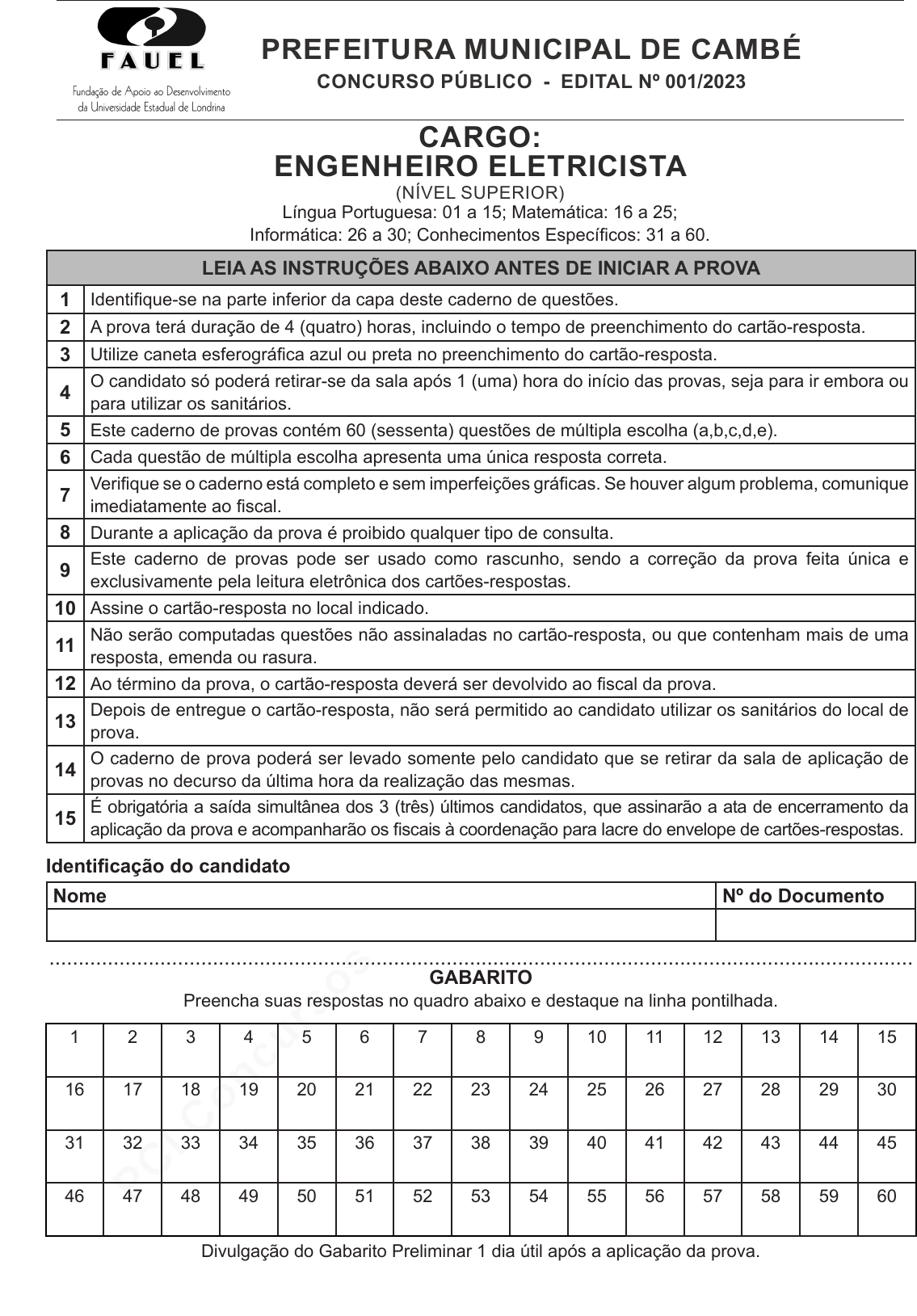 pcimarkpci MDAwMDowMDAwOjAwMDA6MDAwMDowMDAwOmZmZmY6YmFmOTpiNDVi:VGh1LCAyMyBKYW4gMjAyNSAxNjoxNTo1NSAtMDMwMA== www.pciconcursos.com.br PREFEITURA MUNICIPAL DE CAMBÉ CONCURSO PÚBLICO - EDITAL Nº 001/2023 CARGO: ENGENHEIRO ELETRICISTA (NÍVEL SUPERIOR) Língua Portuguesa: 01 a 15; Matemática: 16 a 25; Informática: 26 a 30; Conhecimentos Específicos: 31 a 60. LEIA AS INSTRUÇÕES ABAIXO ANTES DE INICIAR A PROVA 1 Identifique-se na parte inferior da capa deste caderno de questões. 2 A prova terá duração de 4 (quatro) horas, incluindo o tempo de preenchimento do cartão-resposta. 3 Utilize caneta esferográfica azul ou preta no preenchimento do cartão-resposta. 4 O candidato só poderá retirar-se da sala após 1 (uma) hora do início das provas, seja para ir embora ou para utilizar os sanitários. 5 Este caderno de provas contém 60 (sessenta) questões de múltipla escolha (a,b,c,d,e). 6 Cada questão de múltipla escolha apresenta uma única resposta correta. 7 Verifique se o caderno está completo e sem imperfeições gráficas. Se houver algum problema, comunique imediatamente ao fiscal. 8 Durante a aplicação da prova é proibido qualquer tipo de consulta. 9 Este caderno de provas pode ser usado como rascunho, sendo a correção da prova feita única e exclusivamente pela leitura eletrônica dos cartões-respostas. 10 Assine o cartão-resposta no local indicado. 11 Não serão computadas questões não assinaladas no cartão-resposta, ou que contenham mais de uma resposta, emenda ou rasura. 12 Ao término da prova, o cartão-resposta deverá ser devolvido ao fiscal da prova. 13 Depois de entregue o cartão-resposta, não será permitido ao candidato utilizar os sanitários do local de prova. 14 O caderno de prova poderá ser levado somente pelo candidato que se retirar da sala de aplicação de provas no decurso da última hora da realização das mesmas. 15 É obrigatória a saída simultânea dos 3 (três) últimos candidatos, que assinarão a ata de encerramento da aplicação da prova e acompanharão os fiscais à coordenação para lacre do envelope de cartões-respostas. Identificação do candidato Nome Nº do Documento .................................................................................................................................................... GABARITO Preencha suas respostas no quadro abaixo e destaque na linha pontilhada. 1 2 3 4 5 6 7 8 9 10 11 12 13 14 15 16 17 18 19 20 21 22 23 24 25 26 27 28 29 30 31 32 33 34 35 36 37 38 39 40 41 42 43 44 45 46 47 48 49 50 51 52 53 54 55 56 57 58 59 60 Divulgação do Gabarito Preliminar 1 dia útil após a aplicação da prova. pcimarkpci MDAwMDowMDAwOjAwMDA6MDAwMDowMDAwOmZmZmY6YmFmOTpiNDVi:VGh1LCAyMyBKYW4gMjAyNSAxNjoxNTo1NSAtMDMwMA== www.pciconcursos.com.br pcimarkpci MDAwMDowMDAwOjAwMDA6MDAwMDowMDAwOmZmZmY6YmFmOTpiNDVi:VGh1LCAyMyBKYW4gMjAyNSAxNjoxNTo1NSAtMDMwMA== www.pciconcursos.com.br 1 QUESTÕES DE 01 A 15 - LÍNGUA PORTUGUESA Leia o texto para responder as questões 01 a 08. “Educação Brasileira: Cara e falha? É inegável o avanço no acesso da população à educação nas últimas duas décadas: a média de anos de es- tudos aumentou em 55% nos últimos 20 anos e pesquisas recentes mostram que 93% das crianças entre 6 e 14 anos estão matriculadas no ensino fundamental. Todavia, quando a questão é qualidade do ensino, o Brasil continua, ano após ano, amargando as últimas colocações em rankings internacionais como o PISA, onde ran- queia 59.º em leitura, 73.º em matemática e 67.º em ciências humanas dentro dos 79 países analisados. No tocante ao orçamento, dados do Banco Mundial de 2010 demonstram que as despesas com educação no Brasil representam 21% do PIB per capita, muito similar a média da OCDE de 22%, semelhança essa que se mantém até os dias atuais. Chame de investimento; chame de gasto, a verdade é que a quantidade de dinhei- ro que se coloca na educação brasileira é proporcionalmente semelhante à de países desenvolvidos. Assim, se há evidências que a área da educação não sofre subfinanciamento orçamentário, qual é o real impacto do aumento ou diminuição da alocação orçamentária na qualidade da educação pública? Será que existe algum fator que contribui mais significativamente para a melhora no ensino público brasileiro do que o financiamento? Um estudo da FGV/IBRE, publicado por Joana Monteiro, busca responder essa questão. Nele foram analisa- dos a qualidade dos serviços educacionais de municípios produtores e não produtores de petróleo: graças aos royalties, as cidades petrolíferas gastam consideravelmente mais do que as não petrolíferas. Após analisar o censo escolar de 239 dos 256 municípios localizados na costa brasileira, nenhum dentre os quatro indicadores estudados indicaram associação entre maiores despesas e melhores rendimentos. As notas dos alunos na Ava- liação Nacional do Rendimento Escolar confirmam essa ausência de associação: “gastos extras em educação gerados pelos recursos de royalties dos municípios produtores da costa não causaram nenhuma melhora nas notas gerais”. A ausência de melhora no desempenho escolar pode ser explicada por alguns pontos. O principal é o mal ge- renciamento dos recursos direcionados ao financiamento da educação. Muitas perdas acabam ocorrendo por corrupção na alocação de recursos, que ainda persiste como um problema no Brasil, ou até mesmo por conta do método de reajuste e aumento salarial de funcionários da área. Um estudo da University College London demonstrou que quando aumentos salariais de docentes não estão diretamente relacionados a uma melhora no desempenho dos professores, situação frequentemente observada no Brasil, eles falham em melhorar a qualidade do ensino como um todo. A melhor forma, portanto, de causar um impacto na educação é com uma melhor gestão escolar." (Texto adaptado: Gustavo Arienzo. Disponível em: https://jpfgv.com.br/artig