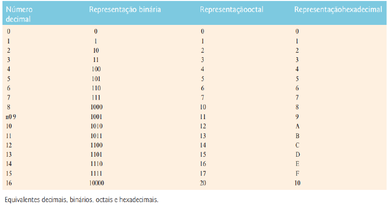 Cálculo Numérico Computacional Sistema de Numeração Material Complementar Conversão entre os sistemas de numeração Cada um desses sistemas de numeração (decimal, binário, octal e hexadecimal) utiliza notação posicional — cada posição na qual um dígito é escrito tem um valor posicional diferente. Por exemplo, no número decimal 937 (o 9, o 3 e o 7 são referidos como valores de símbolo), dizemos que o 7 é escrito na posição das unidades, o 3 é escrito na posição das dezenas e o 9 é escrito na posição das centenas. Observe que cada uma dessas posições é uma potência da base (base 10) e que essas potências iniciam em 0 e aumentam por 1 à medida que nos movemos para a esquerda no número. A figura abaixo ilustra a representação e relação entre alguns números entre estes sistemas. Vamos as conversões: 1. Escrevendo um número binário em octal e hexadecimal Uma relação importante que tanto o sistema de numeração octal como o hexadecimal têm com o binário é que as bases octal (8 = 23)) e hexadecimal (16 = 24)) (8 e 16, respectivamente) são potências da base do sistema de numeração binário (base 2). Para converter o número binário em octal, divida o número binário em grupos de três bits consecutivos cada e escreva esses grupos sobre os dígitos correspondentes do número octal. Como 8 = 23, basta dividir o binário, da direita para esquerda em grupos de 3 bits. Para cada grupo de 3 bits, determina-se o octal equivalente. Exemplo: 110101112 011 010 111 (foi acrescentado 0 no último grupo porque zero à esquerda não conta) . Da tabela que relação os equivalentes em cada sistema de numeraççao temos: 011 = 3 ; 010 = 2 ; 111 = 7 Ou fazemos da seguinte forma, utilizando a notação posicional: 011 = 0.22 + 1.21 +1.20 = 3 010 = 0.22 + 1.21 +0.20 = 2 111 = 1.22 + 1.21 +1.20 = 7 Assim 0110101112 = 3278 Para o processo inverso, converter um octal para binário, basta converter cada algarismo, da direita para esquerda, com a fórmula da notação posicional. Exemplo: 6738 6738 = 110 111 011 Pois 6 = 110 ; 7 = 111 ; 3 011 O mesmo pode ser feito para converter o binário para hexadecimal. Divida o número binário em grupos de quatro bits consecutivos cada e escreva esses grupos sobre os dígitos correspondentes do número hexadecimal. Como 16 = 24, basta dividir o binário, da direita para esquerda, em grupos de 4 bits. Para cada grupo, acha-se o algarismo hexadecimal equivalente. Exemplo: 10110110112 0010 1101 1011 (foi acrescentado 00 no último grupo porque zero à esquerda não conta). Da tabela que relação os equivalentes em cada sistema de numeração temos: 0010 = 2 ; 1101 = D ; 1011 = Ou fazemos da seguinte forma, utilizando a notação posicional: 0010 = 0.23 + 0.22 + 1.21 + 0.20 = 2 1101 = 1.23 + 1.22 + 0.21 + 1.20 = 13 (D) 1011 = 1.23 + 0.22 + 1.21 + 1.20 = 11 (B) Assim 0010110110112 = 2DB16 Para o processo inverso, converter um hexadecimal para binário, basta converter cada algarismo, da direita para esquerda, com a fórmula da notação posicional. Exemplo:C916 C916 = 1100 1001 Pois C = 12 = 1100 ; 9 = 1001 2. Convertendo binário, octal ou hexadecimal para decimal Binário para decimal: Para converter um binário em decimal, multiplique o equivalente decimal de cada dígito por seu valor posicional e some esses produtos. Exemplo: 1101012 = 5310 Pois 1101012 = 1.25 + 1.24 + 0.23 + 1.22 + 0.21 + 1.20 = 32 + 16 + 4 + 1 = 5310 Octal para decimal Para converter um octal em decimal, usa-se a mesma técnica, mas utilizamos os valores posicionais octais apropriados. Exemplo: 76148 = 398010 Pois: 76148 = 7.83 = 6.82 + 1.81 = 4.20 = 3584 + 384 + 8 + 4 = 398010 Hexadecimal para decimal Para converter um hexadecimal em decimal, usa-se a mesma técnica, mas utilizamos os valores posicionais hexadecimais apropriados. Exemplo: AD3B16 = 4434710 Pois: AD3B16 = 10.163 + 13.162 + 3.161 + 11.160 = 40960 + 3328 + 48 + 11 = 4434710 3. Convertendo um decimal para binário, octal ou hexadecimal. Realizamos sucessivas divisões do número decimal pelo valor da base desejada. As divisões devem ser feitas enquanto o quociente for diferente de zero, até chegar no quociente zero. Quando não for mais possível fazer a divisão, acrescenta-se um zero e para. Cada resto encontrado é um algarismo da base desejada. O número na base desejada será obtido tomando-se o último quociente e todos os restos das divisões anteriores. O primeiro resto encontrado é o valor do algarismo mais à direita Exemplo: Conversão de 6 na base decimal (610) para binária (2): Conversão de 86 na base decimal (8610) para octal (8): Conversão de 847 na base decimal (84710) para hexadecimal (16):