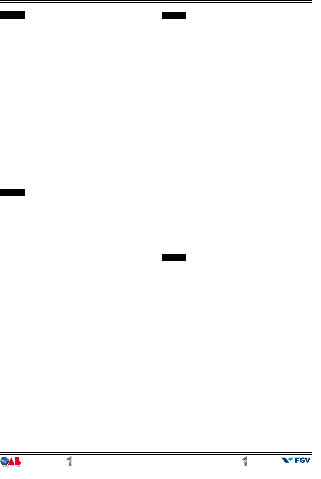 2 XXII EXAME DE ORDEM UNIFICADO – TIPO 01 – BRANCA PROVA APLICADA EM 02/04/2017 Questão 1 Marcelo, renomado advogado, foi convidado para participar de matéria veiculada pela Internet, por meio de portal de notícias, com a finalidade de informar os leitores sobre direitos do consumidor. Ao final da matéria, mediante sua autorização, foi divulgado o e-mail de Marcelo, bem como o número de telefone do seu escritório. Sobre essa situação, de acordo com o Código de Ética e Disciplina da OAB, assinale a afirmativa correta. A) Marcelo não pode participar de matéria veiculada pela Internet, pois esse fato, por si só, configura captação de clientela. B) Marcelo pode participar de matéria veiculada pela Internet, mas são vedadas a referência ao e-mail e ao número de telefone do seu escritório ao final da matéria. C) Marcelo pode participar de matéria veiculada pela Internet e são permitidas a referência ao e-mail e ao número de telefone do seu escritório ao final da matéria. D) Marcelo pode participar de matéria veiculada pela Internet, mas é vedada a referência ao número de telefone do seu escritório ao final da matéria, sendo permitida a referência ao seu e-mail. Questão 2 Cláudio, advogado inscrito na Seccional da OAB do Estado do Rio de Janeiro, praticou infração disciplinar em território abrangido pela Seccional da OAB do Estado da São Paulo. Após representação do interessado, o Conselho de Ética e Disciplina da Seccional da OAB do Estado do Rio de Janeiro instaurou processo disciplinar para apuração da infração. Sobre o caso, de acordo com o Estatuto da OAB, o Conselho de Ética e Disciplina da Seccional da OAB do Estado do Rio de Janeiro A) não tem competência para punir disciplinarmente Cláudio, pois a competência é exclusivamente do Conselho Seccional em cuja base territorial tenha ocorrido a infração, salvo se a falta for cometida perante o Conselho Federal. B) tem competência para punir disciplinarmente Cláudio, pois a competência é exclusivamente do Conselho Seccional em que o advogado se encontra inscrito, salvo se a falta for cometida perante o Conselho Federal. C) tem competência para punir disciplinarmente Cláudio, pois a competência é concorrente entre o Conselho Seccional em que o advogado se encontra inscrito e o Conselho Seccional em cuja base territorial tenha ocorrido a infração, salvo se a falta for cometida perante o Conselho Federal. D) não tem competência para punir disciplinarmente Cláudio, pois a competência é exclusivamente do Conselho Federal, ainda que a falta não tenha sido cometida perante este, quando o advogado for inscrito em uma Seccional e a infração tiver ocorrido na base territorial de outra. Questão 3 Juliana, advogada, foi empregada da sociedade empresária OPQ Cosméticos e, em razão da sua atuação na área tributária, tomou conhecimento de informações estratégicas da empresa. Muitos anos depois de ter deixado de trabalhar na empresa, foi procurada por Cristina, consumidora que pretendia ajuizar ação cível em face da OPQ Cosméticos por danos causados pelo uso de um de seus produtos. Juliana, aceitando a causa, utiliza-se das informações estratégicas que adquirira como argumento de reforço, com a finalidade de aumentar a probabilidade de êxito da demanda. Considerando essa situação, segundo o Estatuto da OAB e o Código de Ética e Disciplina da OAB, assinale a afirmativa correta. A) Juliana não pode advogar contra a sociedade empresária OPQ Cosméticos, tampouco se utilizar das informações estratégicas a que teve acesso quando foi empregada da empresa. B) Juliana pode advogar contra a sociedade empresária OPQ Cosméticos, mas não pode se utilizar das informações estratégicas a que teve acesso quando foi empregada da empresa. C) Juliana pode advogar contra a sociedade empresária OPQ Cosméticos e pode se utilizar das informações estratégicas a que teve acesso quando foi empregada da empresa. D) Juliana não pode advogar contra a sociedade empresária OPQ Cosméticos, mas pode repassar as informações estratégicas a que teve acesso quando foi empregada da empresa, a fim de que sejam utilizadas por terceiro que patrocine a causa de Cristina. Questão 4 Em determinada subseção da OAB, constatou-se grave violação à disciplina prevista na Lei nº 8.906/94, no que diz respeito ao exercício de suas atribuições de representar a OAB perante os poderes constituídos e de fazer valer as prerrogativas do advogado. Considerando a situação hipotética narrada, assinale a afirmativa correta. A) Compete ao Conselho Federal da OAB intervir na aludida subseção mediante voto de dois terços de seus membros. B) Compete ao Conselho Federal da OAB intervir na aludida subseção mediante decisão por maioria do Órgão Especial do Conselho Pleno. C) Compete ao Conselho Seccional respectivo da OAB intervir na aludida subseção mediante decisão unânime de sua diretoria. D) Compete ao Conselho Seccional respectivo da OAB intervir na aludida subseção mediante voto de dois terços de seus membros.