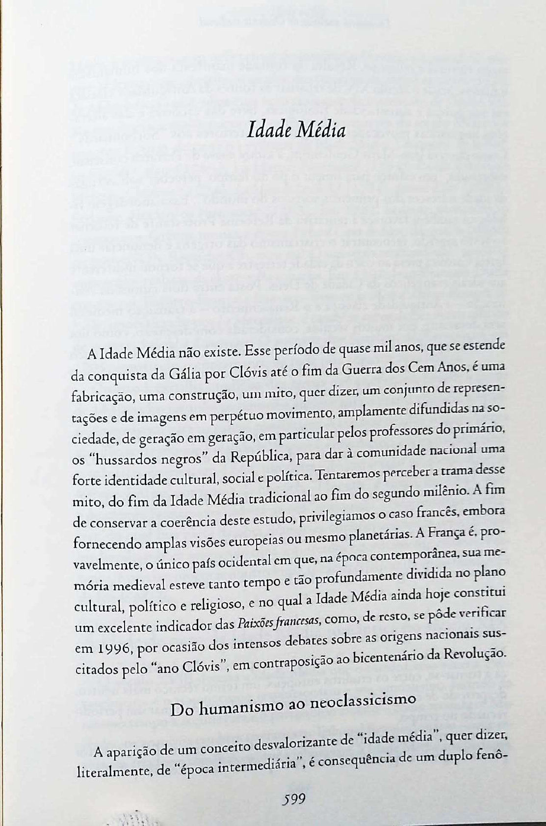 Idade Média A Idade Média não existe. Esse período de quase mil anos, que se estende da conquista da Gália por Clóvis até o fim da Guerra dos Cem Anos, é uma fabricação, uma construção, um mito, quer dizer, um conjunto de represen- tações e de imagens em perpétuo movimento, amplamente difundidas na so- ciedade, de geração em geração, em particular pelos professores do primário, os "hussardos negros" da República, para dar à comunidade nacional uma forte identidade cultural, social e política. Tentaremos perceber a trama desse mito, do fim da Idade Média tradicional ao fim do segundo milênio. A fim de conservar a coerência deste estudo, privilegiamos o caso francês, embora fornecendo amplas visões europeias ou mesmo planetárias. A França é, pro- vavelmente, o único país ocidental em que, na época contemporânea, sua me- mória medieval esteve tanto tempo e tão profundamente dividida no plano cultural, político e religioso, e no qual a Idade Média ainda hoje constitui um excelente indicador das Paixões francesas, como, de resto, se pôde verificar em 1996, por ocasião dos intensos debates sobre as origens nacionais sus- citados pelo "ano Clóvis", em contraposição ao bicentenário da Revolução. Do humanismo ao neoclassicismo A aparição de um conceito desvalorizante de "idade média", quer dizer, literalmente, de "época intermediária", é consequência de um duplo fenô- 599Dicionário analítico do Ocidente medieval meno cultural e religioso. Resulta da vontade manifesta dos humanistas italianos, desde o século XIV, de retornar às fontes da Antiguidade clássica em sua pureza e autenticidade filológicas, livre das escórias e das altera- ções linguísticas provocadas pelas glosas posteriores aos Como observa Jean-Marie Goulemont, a scienza nuova de Petrarca constitui, sobretudo, "um esforço para limpar o pó do tempo, perceber sob as rugas da idade o frescor dos primeiros sorrisos do mundo". Essa abordagem fi- lológica também favorece a tentativa da Reforma Protestante de retornar ao texto sagrado, reencontrar o cristianismo das origens e denunciar uma Igreja Católica presa ao visco da cidade terrestre e que se tornou indiferente aos ideais evangélicos da Cidade de Deus. Posta entre dois cumes da civi- lização a Antiguidade clássica e o Renascimento a transição medieval será doravante, por muitos séculos, considerada com desprezo, como um período de profunda decadência no domínio cultural, intelectual e artístico (a arte denegrida por Michelângelo), e como uma interminável noite que os raios de sol do século XVI enfim dissiparam. A terminologia inventada por Petrarca e os humanistas italianos do século XIV medium tempus ou media tempora desenvolve-se na segunda metade do século XVII entre os eruditos alemães e franceses. Em 1676, Christophe Cellarius (ou Keller), professor em Halle, publica em Iena a primeira verdadeira história medieval em latim. Em Charles du Cange edita seu famoso Glossarium ad scriptores mediae et infimae latinitatis (Glos- sário da latinidade medieval e O século XVIII assume e aperfeiçoa com as principais línguas europeias substituindo o latim essa divisão ternária da história (Antiguidade, Idade Média, tempos modernos) para melhor celebrar, como o faz Voltaire nos Ensaios sobre os costumes (1756), a vitória das Luzes sobre o obscurantismo clerical e o triunfo de uma civilização refinada sobre a grosseria e a barbárie desses longínquos séculos de ferro. No entanto, às vésperas da Revolução, a expressão "Idade Média" come- ça a tornar-se, entre os eruditos europeus, um termo técnico mais neutro, desprovido de conotação pejorativa, confortável para designar um período recuado no tempo. Por outro lado, ao contrário do que se costuma pensar, na França não foi preciso esperar a época romântica para que houvesse interesse pela Idade 600Idade média Média e se buscassem nela temas de inspiração literária e musical. pró- prio Voltaire, esse cáustico acusador das trevas medievais, é autor, em 1734, de Adélaide Duguesclin, obra cuja ação se desenrola no reinado de Carlos VII. Na sequência, a maior parte dos grandes dramaturgos do século XVIII pôs em cena figuras de proa ou eventos da Idade Média: Dormont de Belloy, La de Calais (1765) La Harpe, Pharamond (1765); Louis Sébastien Mercier, Childéric (1774), La Mort de Louis XI (1784), Jeanne d'Arc Sedaine, Maillard ou Paris sauvé (1782). Em 1782, Sedaine, associado ao compositor Grétry, monta a ópera Richard Caur de Lion, da qual o famoso recitativo "Oh, Ricardo! Oh, meu rei! universo te abandona!" torna-se uma senha realista durante a Revolução. Em Jean-François Ducis encena no Jean-sans-Terre, ou la Mort d'Artbur. Rouget de Lisle, imortalizado por La Marseillaise, é também autor de um outro cântico de guerra: Roland à Roncevaux. sucesso dos Templiers, de Raynouard, em 1805, constituiu o coroamento de toda essa corrente neoclássica. Quanto à partilha implícita dos temas que se costuma propor a partir de na literatura os ouropéis antigos para o drama clássico, a inspi- ração medieval para os palcos românticos trata-se de uma visão redutora que não corresponde à realidade. Ponsard, encarniçado adversário do teatro de encena, em um drama de inspiração medieval, Agnès Méranie. Enfim, por ironia da história, "Hugoth" é eleito, em 1841, para a Academia Francesa na cadeira de um "antiquado", Népomucène Lemer- cier, do qual boa parte da obra dramática também apresenta uma fachada Por- medieval, embora mantendo uma arquitetura rigorosamente clássica. tanto, é preciso procurar noutro lugar as características da visão romântica da Idade Média.. A idade de ouro da Idade Média romântica no século XIX O século XVIII detesta a Idade Média que o romantismo venera. Pro- vavelmente é o traumatismo revolucionário e seu vandalismo, reconhece ferindo Mi- ao a arquitetura e o patrimôni