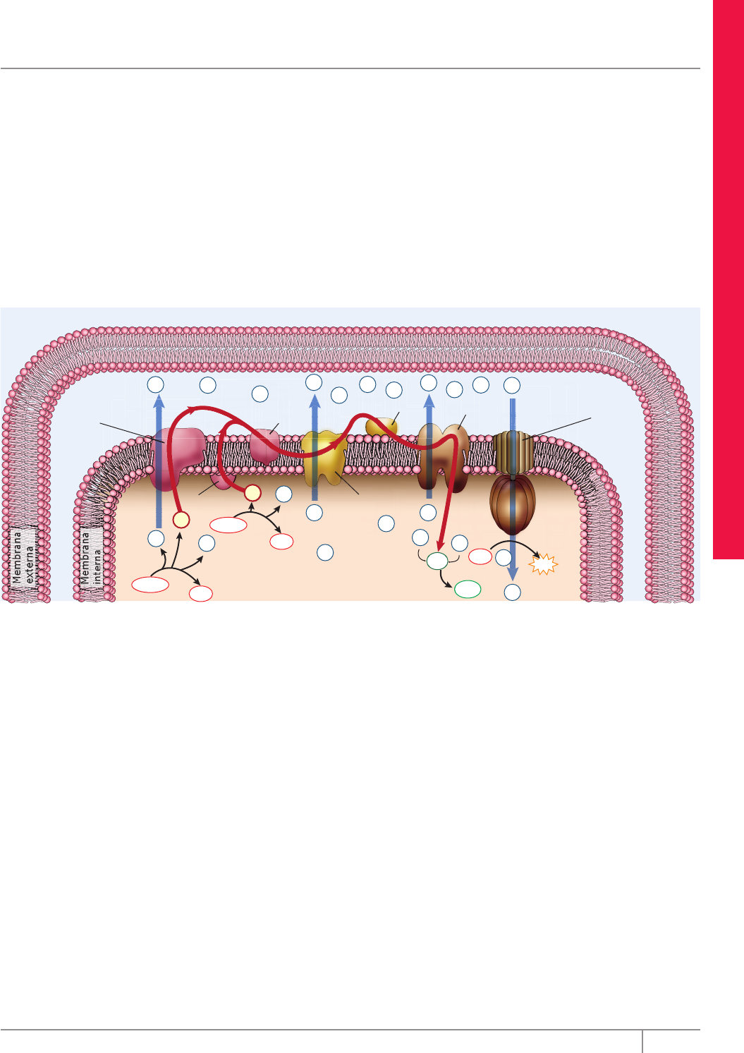 Respiração celular e fermentação 17Editora Bernoulli B IO LO G IA Cadeia respiratória A cadeia respiratória, que nas células eucariotas é realizada na membrana interna da mitocôndria, tem início a partir dos NADH2 e dos FADH2 produzidos nas etapas anteriores da respiração celular. Nela, ocorre síntese de água, transporte de elétrons através de uma cadeia de substâncias (cadeia transportadora de elétrons) e bomba de prótons (H+) com consequente síntese de ATP. A cadeia transportadora de elétrons é um conjunto de reações de oxirredução que envolve a participação de quatro complexos proteicos (I, II, III e IV) e de duas moléculas conectoras móveis: a ubiquinona (coenzima Q) e o citocromo C. A bomba de prótons é um mecanismo de transporte ativo que transfere íons H+ da matriz mitocondrial para o espaço intermembrana (espaço existente entre a membrana externa e a membrana interna da mitocôndria). A ilustração a seguir mostra de forma simplificada os principais fenômenos da cadeia respiratória. e– H+ H+ H+ H+ H+ H+ H+ H+ H+ H+ H+ H+ H+ H+ H+ H+ H+ H+ H+ H+ H+ MATRIZ MITOCONDRIALNADH2 NAD FAD E sp aç o in te rm em b ra n a M em b ra n a in te rn a Complexo I Complexo II Complexo III Complexo IV ATP½O2 H2O Ubiquinona Citocromo C ATP-Sintase CITOSOL FADH2 ADP + Pi e– M em b ra n a ex te rn a A cadeia respiratória – A oxidação dos NADH2 (NADH2 → NAD + 2H+ + 2e–) e a dos FADH2 (FADH2 → FAD + 2H+ + 2e–) liberam elétrons e prótons. Os elétrons provenientes da oxidação dos NADH2 são recebidos pelo complexo I no começo da cadeia respiratória, enquanto aqueles provenientes dos FADH2 são recebidos pelo complexo II. Desses receptores (I e II), os elétrons são transferidos para a ubiquinona, de onde são repassados para o complexo III e daí para o citocromo C. Do citocromo C, eles são enviados para o complexo IV, que, então, os entrega ao O2, que se combina com íons H+, formando água (H2O). O oxigênio, portanto, é o receptor final dos elétrons na cadeia transportadora. Nesse processo de transferência de elétrons dos NADH2 e dos FADH2 até o O2, há, gradativamente, liberação de energia. Parte dessa energia é dissipada sob a forma de calor e parte é utilizada para bombear prótons (H+) da matriz mitocondrial para o espaço existente entre as membranas mitocondriais. Portanto, à medida que os elétrons passam pela cadeia transportadora, os prótons são bombeados para o espaço intermembrana. O acúmulo de íons H+ nesse espaço cria um gradiente de concentração de prótons: concentração alta de H+ no espaço intermembrana e concentração baixa de H+ na matriz mitocondrial. Devido à carga positiva nos prótons (H+), estabelece-se também uma diferença na carga elétrica: a matriz mitocondrial torna-se mais negativa que o espaço intermembrana. Juntos, o gradiente de concentração de prótons e a diferença de carga constituem uma fonte de energia potencial denominada força motora de prótons. Essa força aciona o retorno de prótons para a matriz mitocondrial, através de um canal específico de prótons formado por um complexo proteico denominado ATP-sintase (ATP-sintetase). Ao passar por esse complexo proteico, ocorre liberação de energia, que é, então, utilizada para fosforilar o ADP, ou seja, acrescentar um fosfato ao ADP, transformando-o em ATP. O complexo ATP-sintase “extrai” energia química dos íons H+ para sintetizar ATP. Essa fosforilação que ocorre na cadeia respiratória é conhecida por fosforilação oxidativa. As reações da cadeia respiratória são de oxirredução, isto é, reações que envolvem perda e ganho de hidrogênios e de elétrons. Para os químicos, uma substância que perde elétrons ou hidrogênios fica oxidada. Quando ganha elétrons ou hidrogênios, fica reduzida. A glicose e seus subprodutos, por exemplo, ao perderem hidrogênios para os NAD, estão sofrendo oxidação. Por isso, fala-se que durante a respiração ocorre oxidação da glicose. Por outro lado, os NAD, ao receberem hidrogênios transformando-se em NADH2, estão sofrendo redução. Todos os componentes da cadeia respiratória, ao receberem elétrons, reduzem-se e, ao cedê-los para a substância seguinte, tornam a se oxidar. Assim, na respiração celular, a todo momento ocorrem reações de oxidação e de redução. 18 Coleção Estudo Frente A Módulo 08 O objetivo da respiração celular é a produção de ATP. A produção líquida ou saldo energético (em moléculas de ATP) por glicose pode chegar a 32 ATP, dependendo do tipo de célula. Veja o quadro a seguir: Saldo energético da respiração aeróbica / glicose Glicólise São produzidos 4 ATP, mas, como são gastos 2 ATP, há saldo positivo de 2 ATP. Ciclo de Krebs Cada ciclo produz 1 ATP. Como são 2 ciclos por glicose, o saldo é de 2 ATP. Cadeia respiratória Cada NADH2 proporciona a síntese de 2,5 ATP. Como são 10 NADH2 por glicose, a partir deles são produzidos 25 ATP. Cada FADH2 proporciona a síntese de 1,5 ATP. Como são 2 FADH2 por glicose, a partir deles são produzidos 3 ATP. Saldo total → 2 ATP + 2 ATP + 25 ATP + 3 ATP = 32 ATP Existem células em que a membrana interna da mitocôndria é impermeável ao NADH2. Nessas células, a passagem para o interior da mitocôndria dos hidrogênios transportados pelos 2NADH2, produzidos no citosol durante a glicólise, requer gasto de energia, sendo gasto 1 ATP para cada um desses NADH2. Nessas células, portanto, o saldo energético / glicose é de 30 ATP (32 – 2 = 30 ATP). Para realizar a respiração aeróbica, a glicose é o “combustível” preferido pela célula. Mas não é o único. Na falta de glicose, a célula lança mão dos lipídios e, caso haja necessidade, até das proteínas. Isso é possível porque a substância acetil CoA, formada na respiração aeróbica, também pode ser produzida a partir de outros compostos orgânicos, como ácidos graxos, glicerol e aminoácidos.