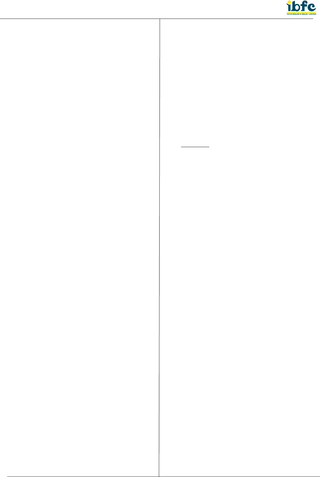IBFC_01 7 38) Analise as afirmativas abaixo. I. É um paradigma de programação que organiza o código em unidades autônomas chamadas objetos, encapsulando dados e comportamentos relacionados, promovendo reutilização, modularidade e facilitando a compreensão e manutenção do sistema. II. É um paradigma de programação que enfatiza o uso de estruturas de controle, como sequência, seleção e repetição, para criar algoritmos organizados e eficientes, promovendo uma abordagem procedural e modular que facilita a compreensão, manutenção e depuração do código-fonte. Assinale a alternativa que apresenta quais são os paradigmas de programação citados. a) I. Programação Orientada a Depuração - II.Programação Orientada a Testes b) I.Programação Orientada a Testes – II.Programação Orientada a Depuração c) I.Programação Orientada a Objetos – II.Programação Estruturada d) I.Programação Estruturada – II.Programação Orientada a Objetos 39) Sobre Programação Orientada a Objetos, analise as afirmativas abaixo e dê valores Verdadeiro (V) ou Falso (F). ( ) A herança em POO permite que uma classe herde atributos e métodos de outra classe, promovendo a reutilização de código. ( ) Objetos em POO não podem ser considerados entidades do mundo real, mas apenas representações abstratas no código-fonte. ( ) Em POO, o conceito de encapsulamento protege os detalhes internos de uma classe, permitindo que somente métodos específicos acessem seus atributos. Assinale a alternativa que apresenta a sequência correta de cima para baixo. a) F - F - F b) F - V - F c) V - F - V d) V - V - V 40) Leia a afirmativa abaixo. Os quatro pilares da Orientação a Objetos, ______, ______, ______, e ______, formam a base conceitual que guia o design de sistemas, permitindo a criação de código modular, reutilizável e flexível, promovendo a eficiência e manutenção em ambientes de programação orientada a objetos. Assinale a alternativa que preencha correta e respectivamente as lacunas. a) Abstração / Encapsulamento / Herança / Polimorfismo b) Abstração / Generalização / Especialização / Herança c) Abstração / Encapsulamento / Herança / Generalização d) Abstração / Criação / Geração / Especialização 41) Leia a afirmativa abaixo. A ______, enquanto princípio fundamental da Programação Orientada a Objetos, possibilita a criação de classes que adquirem atributos e comportamentos de outras, promovendo a reutilização de código, estruturação hierárquica e facilitando a manutenção e extensibilidade dos sistemas. Assinale a alternativa que preencha corretamente a lacuna. a) mutação b) criação c) abstração d) herança 42) A programação orientada a objetos é sustentada por 4 pilares fundamentais, em que abstração é um destes pilares fundamentais. Desta forma, assinale a alternativa que apresenta o principal objetivo deste pilar. a) refere-se ao processo de modelar a estrutura da equipe de desenvolvimento b) refere-se ao processo de modelar o documento visão dos processos de engenharia de software c) refere-se ao processo de modelar as entidades que serão somente essenciais para o modelo de banco de dados d) refere-se ao processo de modelar objetos do mundo real como entidades simplificadas e relevantes para o sistema em desenvolvimento 43) Docker é uma plataforma de código aberto que automatiza a implantação, o dimensionamento e a gestão de aplicativos em contêineres. Contêineres são unidades leves e autossuficientes que encapsulam todo o software e suas dependências, permitindo a execução consistente em diferentes ambientes, sobre Docker. Assinale a alternativa que apresenta o comando utilizado para parar todos os containers em execução no sistema. a) docker stop $(docker ps -q) b) docker pause c) docker end-all d) docker break 44) Considerando a utilização de contêineres com Docker, em um projeto, assinale a alternativa que apresenta o comando utilizado para remover um contêiner. a) docker stop b) docker rt c) docker rg d) docker rm
