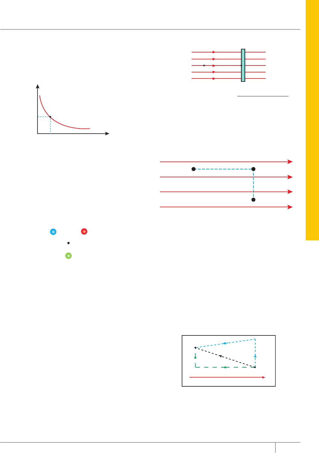 FÍ SI C A 77Editora Bernoulli 02. (UFLA-MG–2006) O diagrama potencial elétrico versus distância de uma carga elétrica puntiforme Q no vácuo é mostrado a seguir. Considere a constante eletrostática do vácuo K0 = 9,0 x 109 Nm2/C2. Pode-se afirmar que o valor de Q é r (cm) V (volt) 30 3 A) +3,0 x 10–12 C. B) +0,1 x 10–12 C. C) +3,0 x 10–9 C. D) +0,1 x 10–9 C. E) –3,0 x 10–12 C. 03. (FMTM-MG) Na figura, estão representadas três cargas elétricas pontuais, q1 > 0, q2 W2 > W3. C) W1 > W2 = W3. Trabalho e potencial elétrico 78 Coleção Estudo 02. (PUC Minas–2007) A figura mostra um campo elétrico uniforme e três superfícies equipotenciais, representadas por A, B e C. Considerando-se o módulo do campo elétrico como 4,0 x 102 V/m, então o trabalho necessário para se levar uma carga q = 1,0 x 10–6 C do ponto 2 até o ponto 6 pela trajetória retilínea 256 será de A B C E = 4,0 x 102 V/m 6 1 2 345 150 V100 V50 V A) W = 4,0 x 10–4 J. C) W = 6,0 x 10–5 J. B) W = 1,0 x 10–4 J. D) W = 8,0 x 10–5 J. 03. (Unimontes-MG) Quando uma partícula de carga q VA. 02. No cruzamento das diagonais do retângulo, o potencial é nulo. Porém, o campo elétrico é diferente de zero. 04. VA – VB = Kq/6 (em volts). 08. O trabalho necessário para deslocar uma terceira carga q’, em equilíbrio, de A até B, é igual à energia potencial do sistema formado pelas três cargas. 16. O campo elétrico resultante, no ponto A, é igual ao campo elétrico resultante, no ponto B. 32. (VA – VB) ≠ (VB – VA). Soma ( ) Frente D Módulo 04 FÍ SI C A 79Editora Bernoulli 07. (UFRGS–2007) A figura a seguir representa duas cargas elétricas puntiformes, mantidas fixas em suas posições, de valores +2q e –q, sendo q o módulo de uma carga de referência. I LJ K +2q –q Considerando-se zero o potencial elétrico no infinito, é CORRETO afirmar que o potencial elétrico criado pelas duas cargas será zero também nos pontos A) I e J. C) I e L. E) K e L. B) I e K. D) J e K. 08. (UEL-PR) Um elétron escapa da placa negativa de um capacitor, com velocidade inicial desprezível. Se a diferença de potencial entre as placas do capacitor é de 200 V e a carga elementar é de 1,6 x 10–19 C, a energia cinética com que o elétron atinge a placa positiva é, em joules, A) 3,2 x 10–23. C) 3,2 x 10–21. E) 3,2 x 10–17. B) 8,0 x 10–22. D) 8,0 x 10–18. 09. (PUC Minas / Adaptado) A energia potencial elétrica existente entre duas cargas puntiformes separadas por certa distância ficará inalterada se A) as cargas forem mantidas e a distância dividida por dois. B) cada carga for dobrada e a distância também. C) uma das cargas for dobrada e a distância multiplicada por quatro. D) cada carga for quadruplicada e a distância dividida por dois. E) cada carga for dobrada e a distância multiplicada por quatro. 10. (UNESP–2008) A figura é a interseção de um plano com o centro C de um condutor esférico e com três superfícies equipotenciais ao redor desse condutor. 2,5 V M N 10 V 5 V Uma carga de 1,6 x 10–19 C é levada do ponto M aoponto N. O trabalho realizado para deslocar essa carga foi de A) 3,2 x 10–20 J. D) 4,0 x 10–19 J. B) 16,0 x 10–19 J. E) 3,2 x 10–18 J. C) 8,0 x 10–19 J. 11. (Unimontes-MG–2007) Nos vértices de um triângulo equilátero de lado L, são colocadas três cargas puntiformes Q positivas e iguais. Sendo K a constante de Coulomb, a energia potencial eletrostática (EPe) do sistema é dada por A) Epe = 3KQ2/L. C) Epe = KQ2/2L. B) Epe = 2KQ2/L. D) Epe = KQ/L. 12. (Unimontes-MG–2010) Uma carga Q = 2 C está num ponto A do espaço onde existe um campo elétrico. O trabalho realizado pela força elétrica, para deslocar essa carga do inifinito até o ponto A, é igual a W. Se o potencial elétrico no ponto A é 30 V, o módulo do trabalho W vale A) 40 J. C) 60 J. B) 30 J. D) 50 J. 13. (Mackenzie-SP–2006) Uma unidade de medida de energia muito utilizada em Física Nuclear é o elétron-volt (eV), os múltiplos quilo elétron-volt (keV) e mega elétron-volt (MeV) são ainda mais usuais. Comparando o elétron-volt com a unidade de medida do Sistema Internacional, temos que 1 eV = 1,6 x 10–19 J. Durante uma experiência no laboratório, tem-se uma carga elétrica puntiforme fixa (Q) de 3,0 nC (3,0 x 10–9 C), praticamente no vácuo (K0 = 9 x 109 Nm2/C2), e, num determinado instante, um pósitron (q = +1,6 x 10–19 C) é abandonado do repouso num ponto A, distante 3,0 mm dessa carga Q. Ao passar por um ponto B, situado a 6,0 mm de A, sobre a mesma reta QA, o pósitron terá energia cinética de A) 4,5 keV. C) 9,0 keV. E) 6,0 MeV. B) 6,0 keV. D) 4,5 MeV. 14. (UFRRJ–2007) Uma carga elétrica q = 1,0 x 10–6 C se movimenta em uma região onde existe um campo eletrostático uniforme. Essa carga parte de um ponto A, cujo potencial elétrico é VA = 2 V, e caminha pelo percurso (I) até um ponto B, onde o potencial elétrico é VB = 4 V. B A I II A) CALCULE o trabalho realizado pela força elétrica que atua sobre a carga ao longo do deslocamento de A a B. B) Supondo que a carga retorne ao ponto A pelo caminho (II), DETERMINE o trabalho total realizado pela força elétrica ao longo do percurso de ida e volta, (I) + (II). 15. (UFPE–2008) Duas cargas elétricas puntiformes, de mesmo módulo Q e sinais opostos, acham-se fixas à distância de 3,0 cm entre si. DETERMINE o potencial elétrico no ponto A, em volts, considerando que o potencial no ponto B é de 60 volts. +QA B 1,0 cm 1,0 cm –Q Trabalho e potencial elétrico 80 Coleção Estudo SEÇÃO ENEM 01. Um raio ou relâmpago é uma descarga elétrica entre nuvens de chuva ou entre essas nuvens e a terra. A descarga é visível a olho nu e apresenta formas e ramificações sinuosas. Existem três tipos de raios: da nuvem para o solo, do solo para a nuvem e entre nuvens. Um raio principia quando o campo elétrico atinge 3,0 x 106 N/C, valor conhecido como rigidez dielétrica do ar. Nesse moment