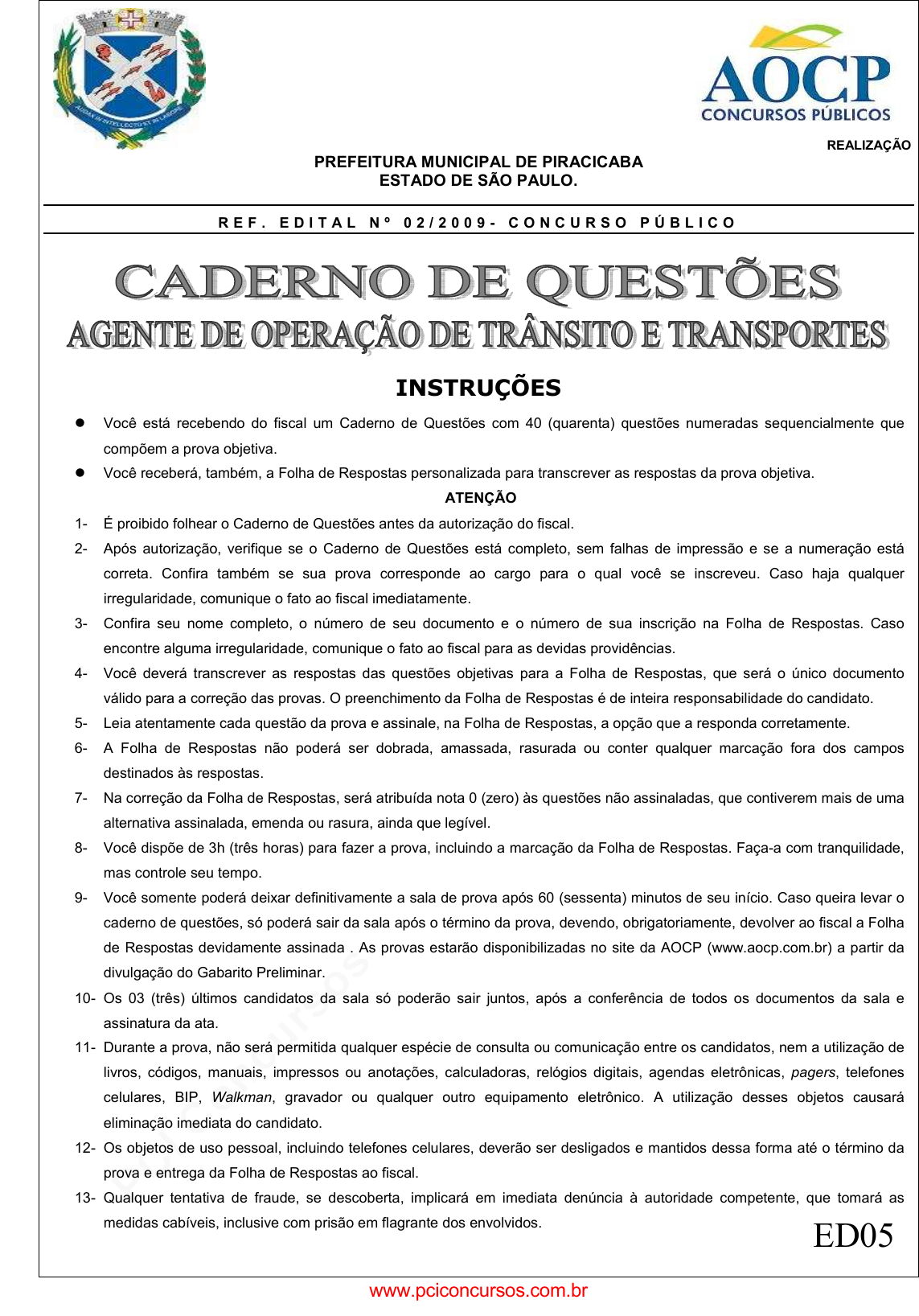 R E F . E D I T A L N º 0 2 / 2 0 0 9 - C O N C U R S O P Ú B L I C O