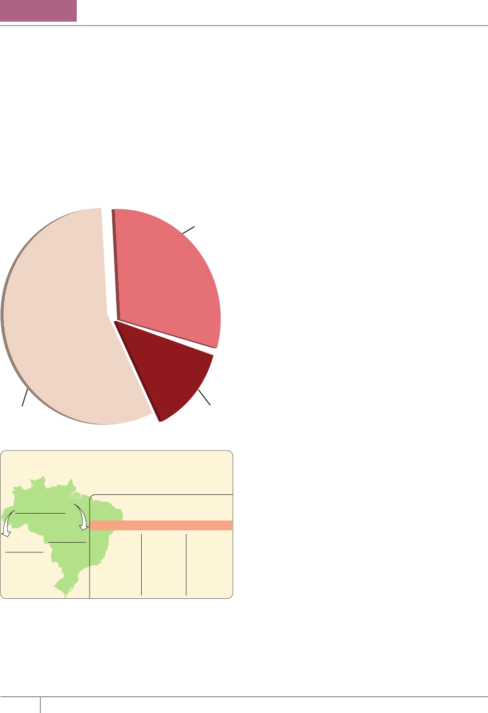 76 Coleção Estudo Há de se levar em conta que 463 milhões de hectares não podem ser utilizados para se produzir ou criar, pois abrangem áreas da Amazônia Legal, áreas de reservas legais ou áreas que são ocupadas por centros urbanos, rios, estradas, áreas de reflorestamento ou ainda áreas que foram alagadas por represas, entre outros. Restam, ainda, 106 milhões de hectares de terra onde se pode produzir (o que equivale aos territórios da França e da Espanha somados), correspondendo a uma das maiores reservas de terras agrícolas do planeta. Disponibilidade de terras no Brasil Amazônia Legal Reservas legais Centros urbanos Unidade de preservação fora da Amazônia Rios Áreas de reflorestamento Áreas alagadas por represas Estradas 282 milhões de hectares 851 milhões de hectares 106 milhões de hectares 463 milhões de hectares Área do Brasil onde não se pode produzir Área do Brasil onde se produz Área do Brasil onde ainda se pode produzir Fonte: Ministério da Agricultura Uso da terra e áreas disponíveis para agropecuária milhões de hectares 140 milhões de hectares 62Agricultura EUA BRASIL milhões de hectares 220milhões de hectares 320Pecuária milhões de hectares 1060Área ainda disponível para agropecuária hectares106milhões de Áreas disponíveis milhões16 Áreas que já produziram, mas estão improdutivas milhões90 Áreas que podem produzir, mas ainda não foram desbravadas O Brasil dispõe de 106 milhões de hectares de terra para incorporar ao mapa agrícola, área equivalente aos territórios da França e da Espanha somados. É uma das últimas grandes reservas de terras férteis do planeta. Comparativo de terras disponíveis no Brasil: O quadro compara como é usada a terra e as áreas ainda disponíveis para agropecuária no Brasil e nos Estados Unidos. Repare que o Brasil ainda tem uma área livre com quase o mesmo tamanho de toda a área cultivada pelos norte-americanos. Fonte: Ministério da Agricultura A atividade mais importante do setor primário brasileiro é a agropecuária. Tal importância intensificou-se nas últimas décadas, pois parte da produção tem sido destinada à agroindústria, como ocorre em diversos países do mundo. As produções agrícolas brasileiras, antes exportadas in natura, agora são beneficiadas no Brasil e, posteriormente, enviadas ao exterior. Isso vem acontecendo, por exemplo, com café solúvel, sucos de frutas, carnes enlatadas ou embutidas, frangos, cigarros, vinhos e artigos de couro. Nas últimas três décadas, a utilização de agrotóxicos e a comercialização de máquinas agrícolas têm contribuído para o aumento da produtividade, porém ainda existem no país milhões de pessoas que passam fome. A falta de alimentos e a falta de terras para produzir não são as únicas responsáveis pela fome que atinge milhões de brasileiros. Isso é motivado pelo injusto modelo agrícola e econômico, que exclui milhões de pessoas do processo produtivo por causa da má distribuição de terras e de dinheiro necessário para comprar alimentos para subsistência, devido aos baixos salários ou aos trabalhos informais mal pagos. Tudo isso é resultado de vários fatores que ocorreram ao longo da história brasileira: • A herança colonial de produção agrícola em grandes propriedades monocultoras com comercialização voltada para o exterior. • A desorganização do comércio com o aparecimento dos atravessadores, a falta de armazéns de estocagem e as péssimas condições das rodovias. • As propriedades não representam um bem social que tem a função de produzir, e sim um bem pessoal que tem a finalidade de valorização (venda e compra). • Os altos custos dos agrotóxicos, responsáveis pelos baixos índices de produção por hectare. • A ausência de uma reforma agrária capaz de alterar a injusta distribuição das terras. Para enfrentar todos esses problemas que envolvem terra, fome e produção, será necessária uma série de medidas, tais como: mudança na distribuição da renda nacional, oferecendo salários mais justos; criação de empregos no meio rural; realização de uma melhor distribuição de terras, com uma reforma agrária mais ampla; melhoria da produtividade agrícola; melhores preços para os implementos e os insumos agrícolas; energia elétrica mais barata para as áreas de irrigação artificial; eliminação dos atravessadores ou intermediários, etc. Frente B Módulo 12 G EO G R A FI A 77Editora Bernoulli Atividade rural O território brasileiro não apresenta áreas em que a agropecuária seja impraticável. É possível produzir algodão, sisal e criar gado, desde que haja irrigação, mesmo nas áreas mais secas do Nordeste. O Nordeste poderia alimentar sua população bem como exportar produtos tropicais e de áreas secas. Nos solos brasileiros mais férteis, as máquinas agrícolas e outros recursos técnicos são mais utilizados nas agriculturas de exportação e na agroindústria do que na produção de alimentos para o mercado interno. A produção de mandioca, de feijão e de outros produtos de subsistência, nos últimos tempos, perdeu em área de cultivo para a soja e para a laranja. As exportações de soja e de suco de laranja cresceram muito com a demanda do mercado internacional nas décadas de 1980 e 1990. Os incentivos às lavouras de exportação fazem parte da política econômica definida pelo governo, que determina que as exportações de produtos agrícolas devem produzir divisas que proporcionem um superávit da balança comercial e, assim, paguem a dívida externa. O aumento da mecanização e do uso de agrotóxicos ocorre, principalmente, nas lavouras de cana-de-açúcar, de café, de laranja e de soja. Isso significa que a modernização agrícola está concentrada nos cultivos de gêneros para a exportação e para as matérias-primas utilizadas na indústria. Sem utilizar máquinas ou recursos técnicos, a agricultura tradicional continua